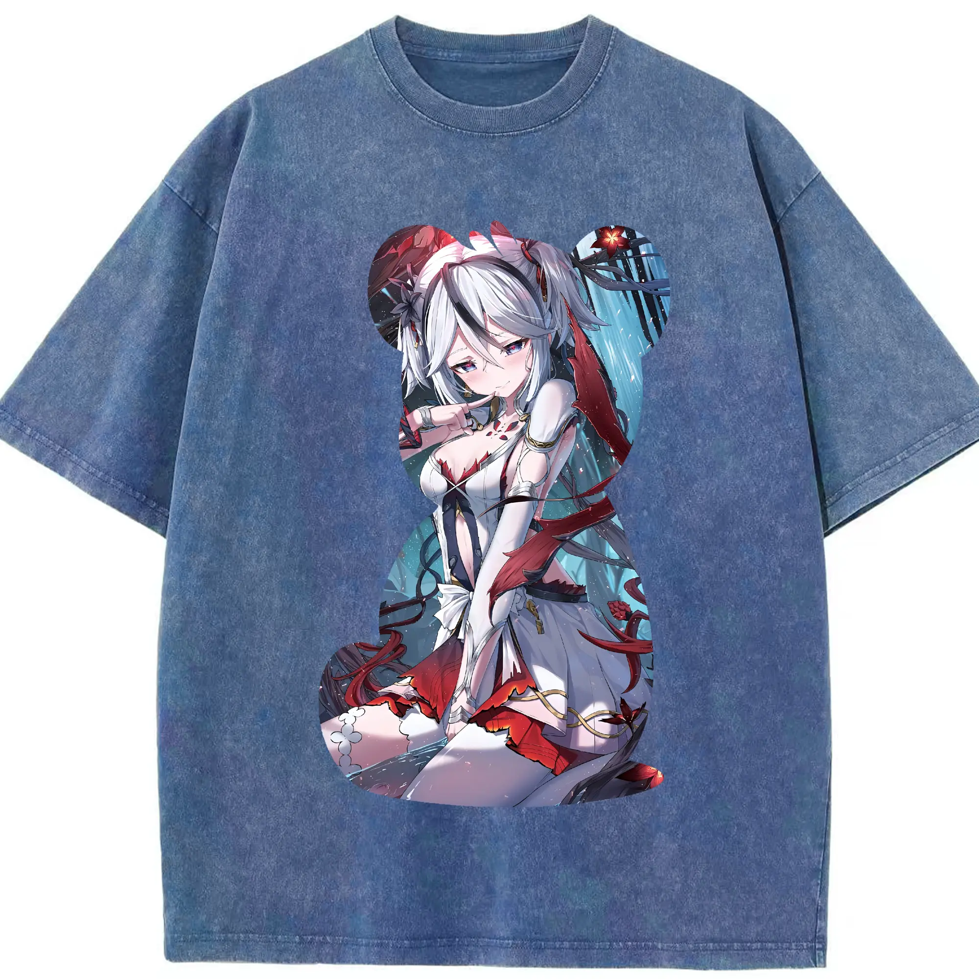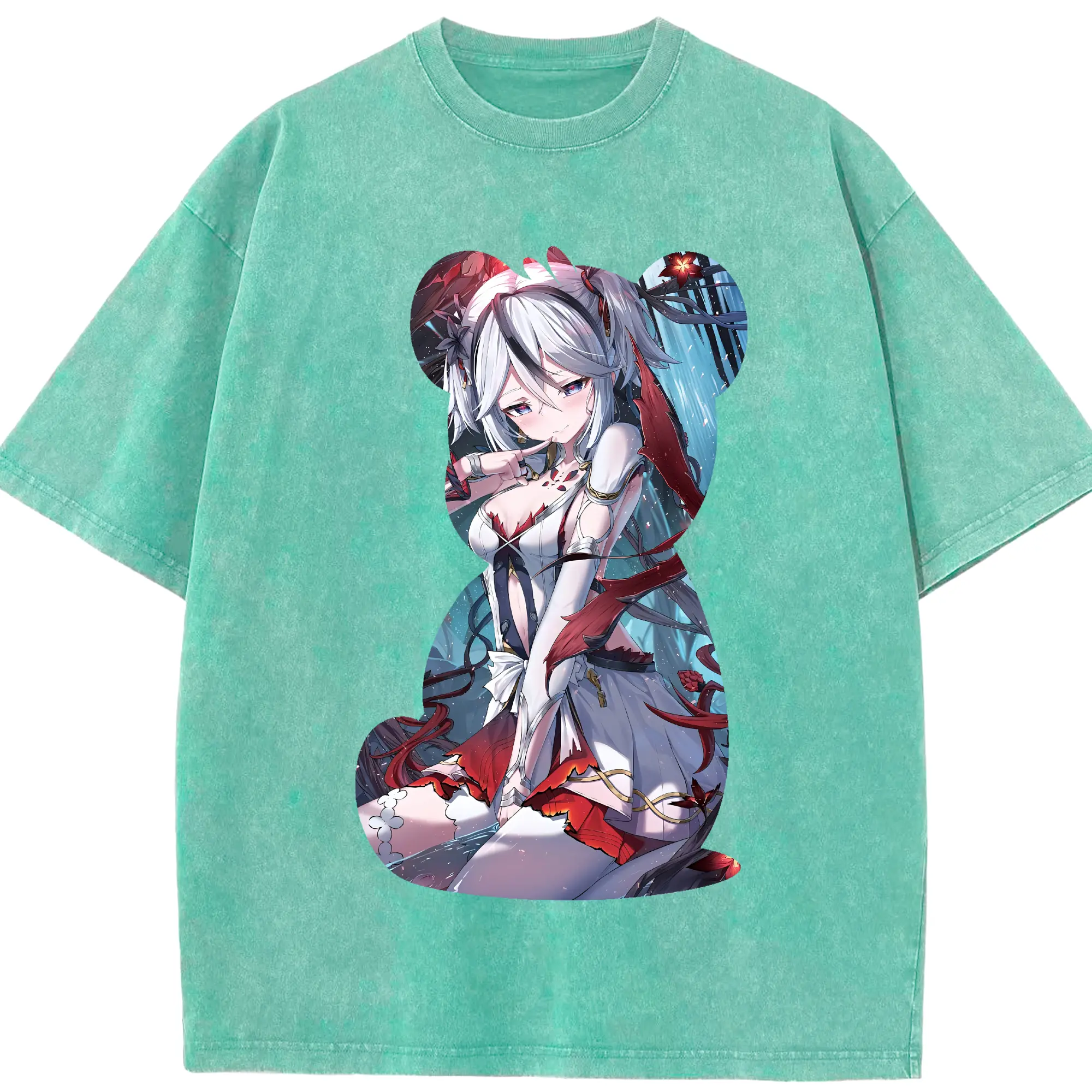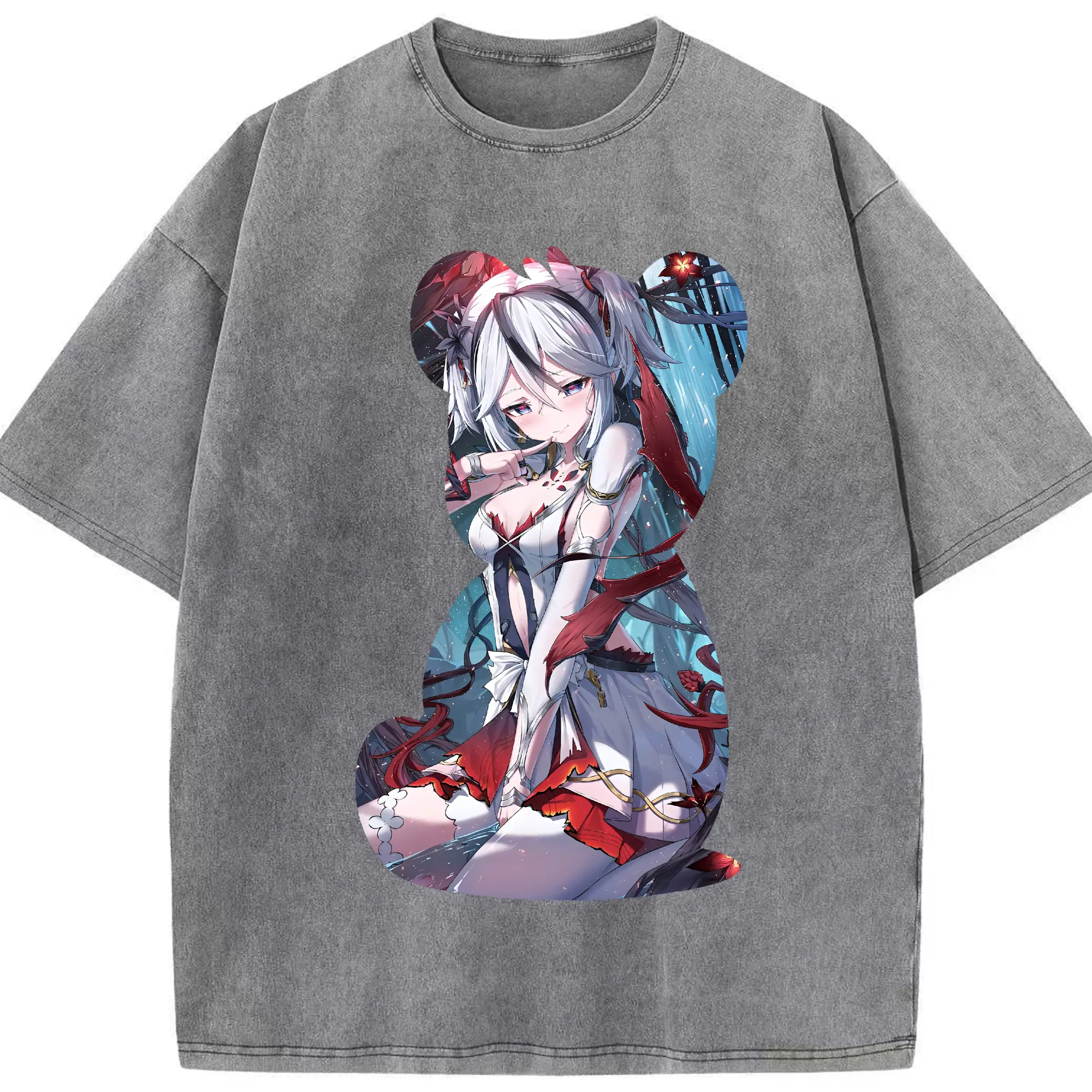 原 神 グッズ フリーナ - 綿100% ヴィンテージ風 半袖Tシャツ ・ フロントプリント ・ 柔らか肌触り ・ 通気性 快適 ・ スポーツ カジュアル 外出用