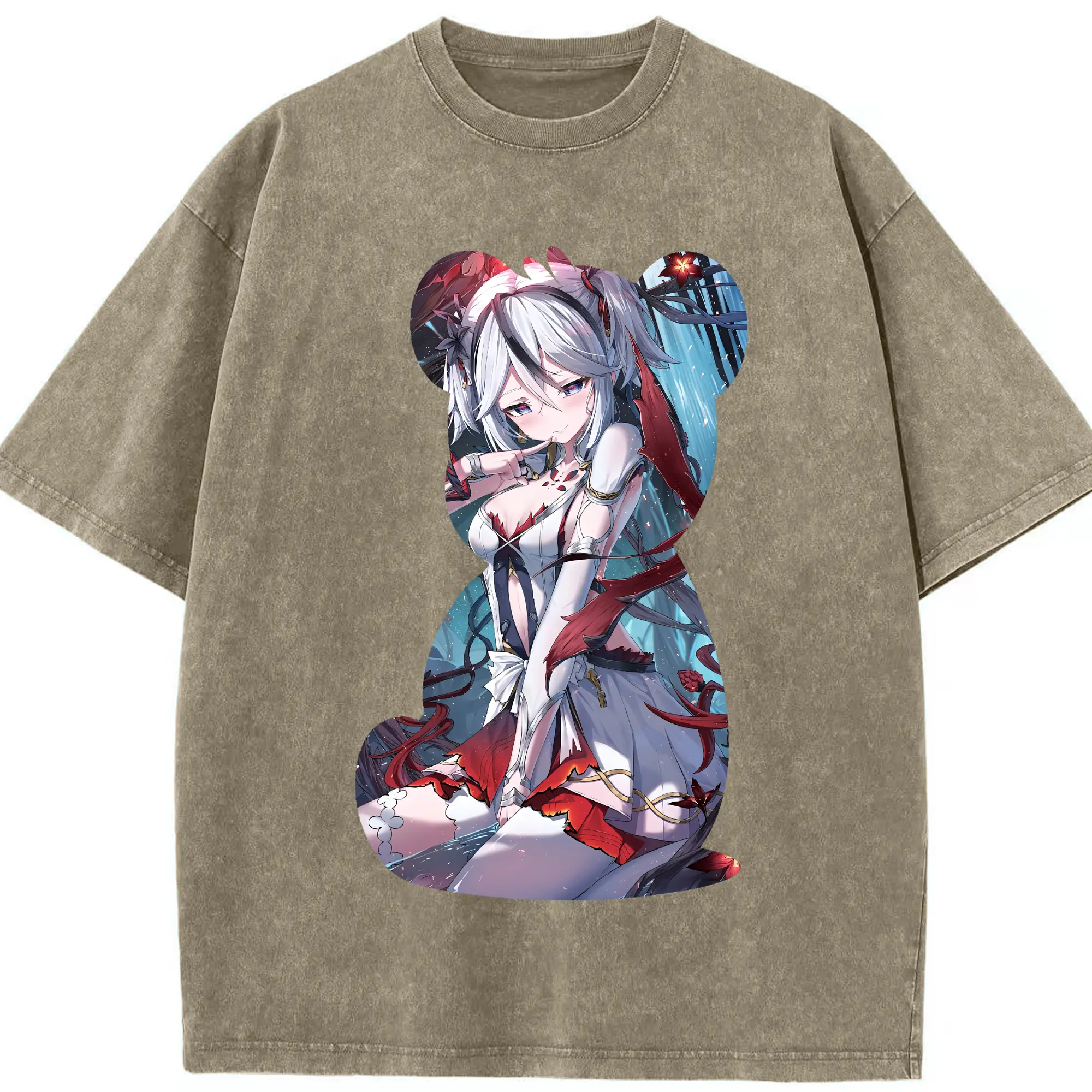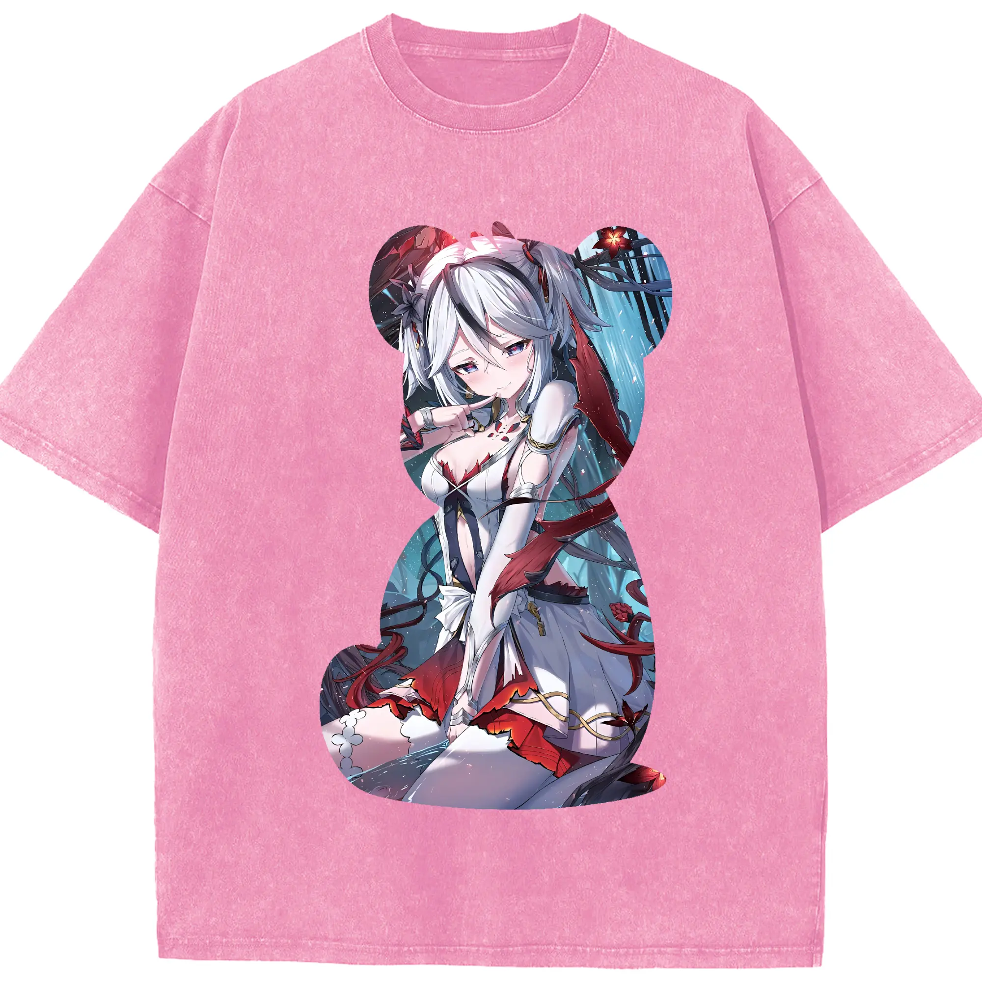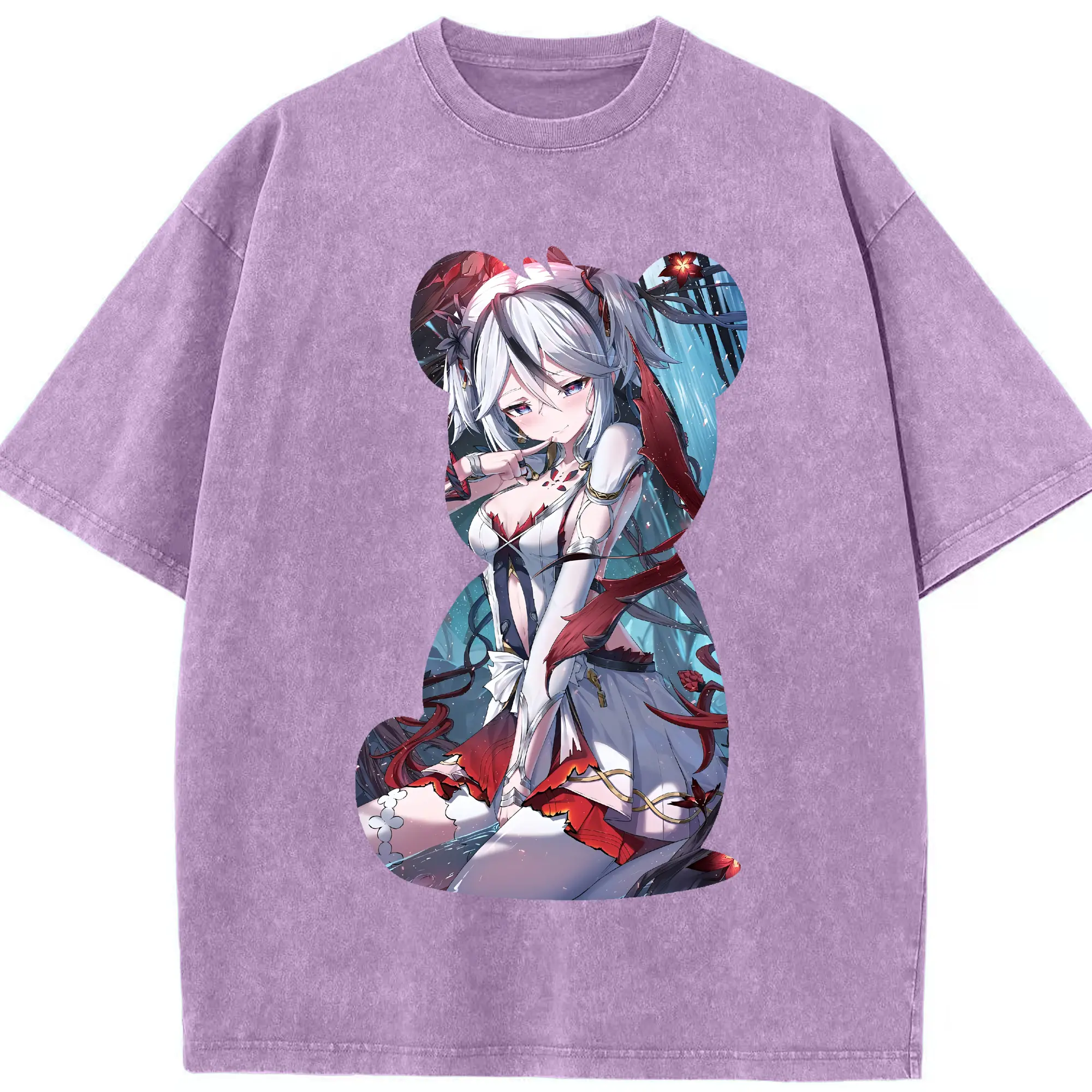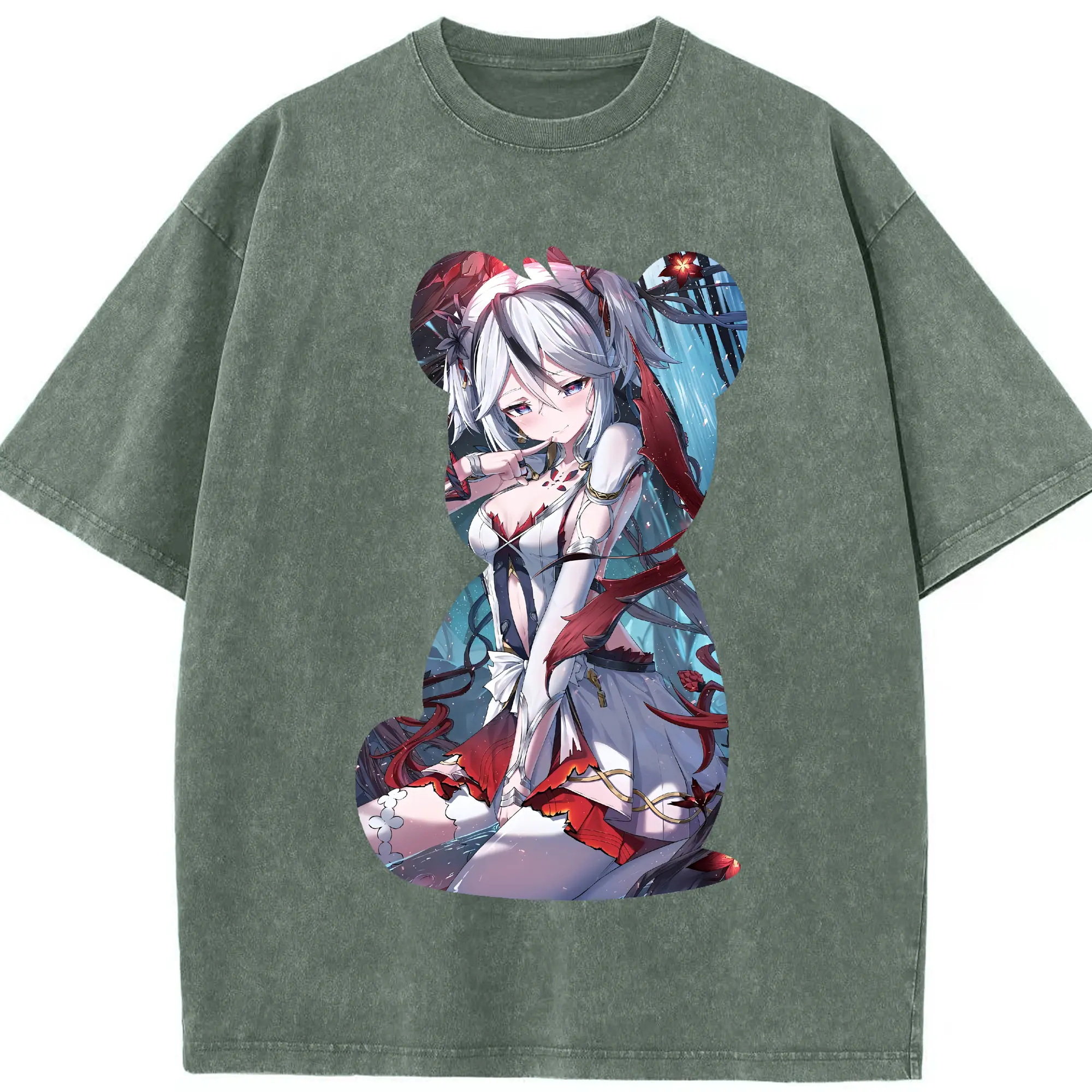 原 神 グッズ フリーナ - 綿100% ヴィンテージ風 半袖Tシャツ ・ フロントプリント ・ 柔らか肌触り ・ 通気性 快適 ・ スポーツ カジュアル 外出用