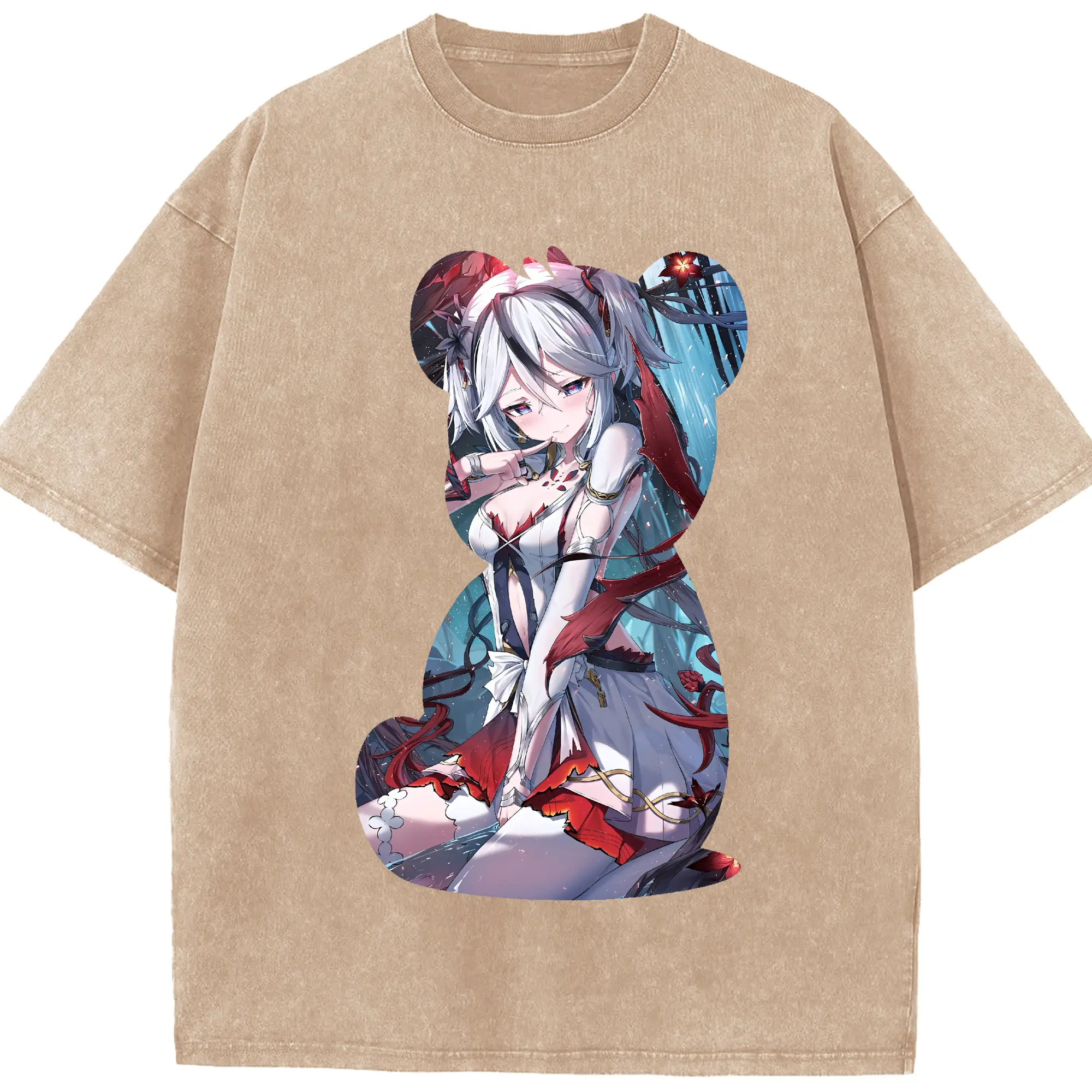 原 神 グッズ 神里綾華 - 綿100% ヴィンテージ風 半袖Tシャツ ・ フロントプリント ・ 柔らか肌触り ・ 通気性 快適 ・ スポーツ カジュアル 外出用