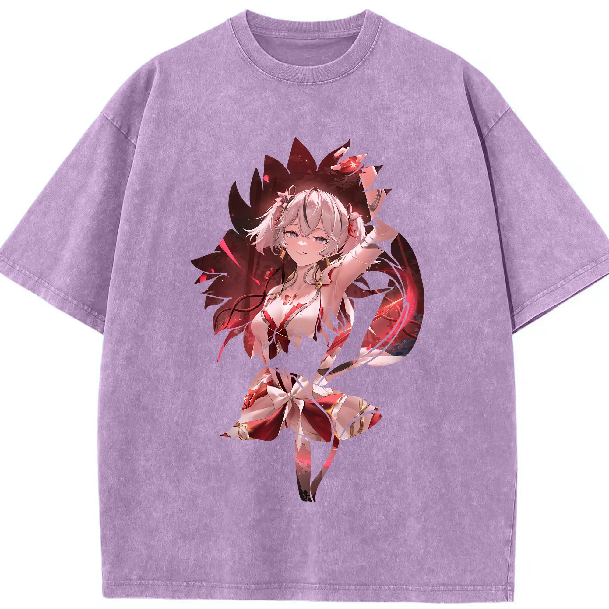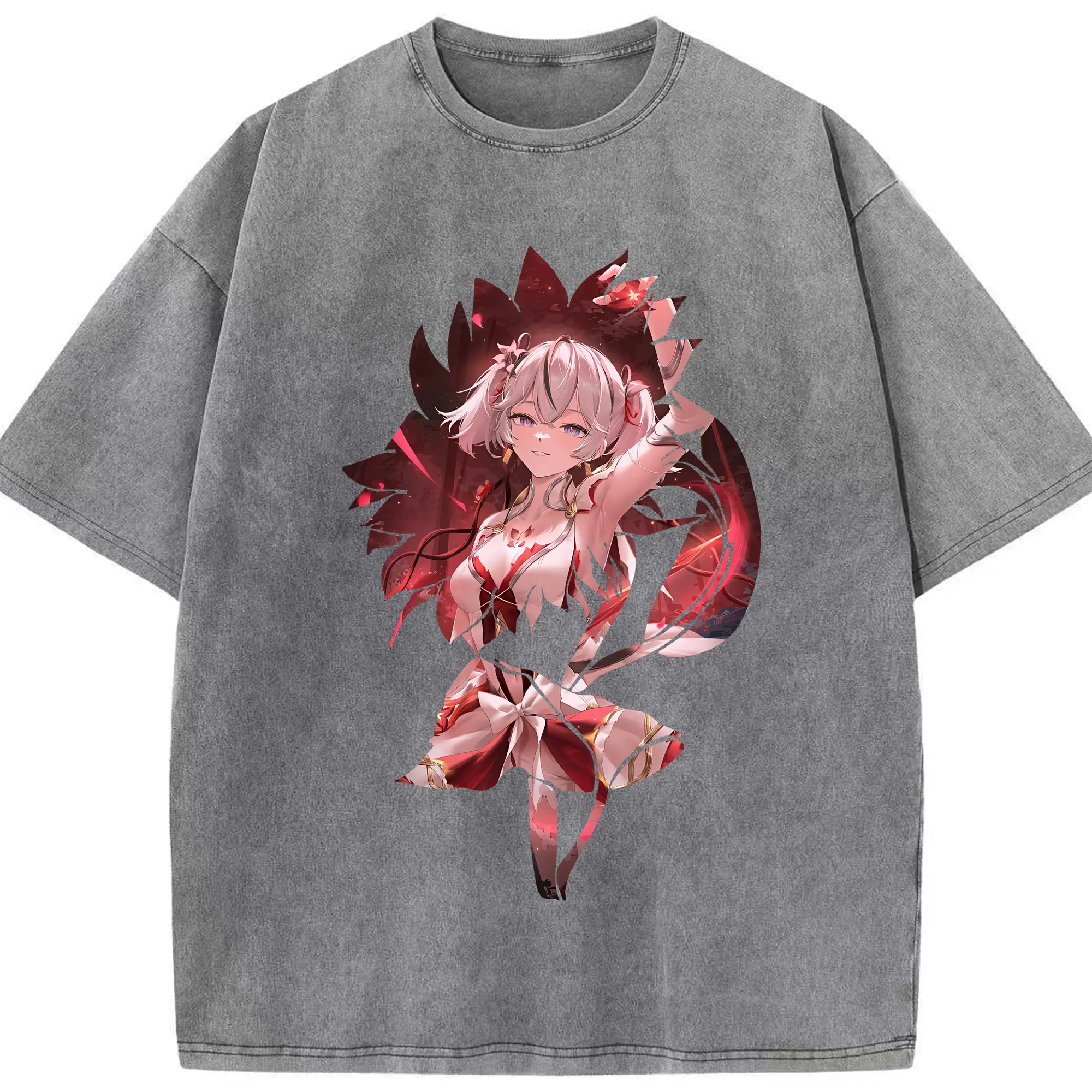 崩壊:スターレイル グッズ 銀狼 - 綿100% ヴィンテージ風 半袖Tシャツ ・ フロントプリント ・ 柔らか肌触り ・ 通気性 快適 ・ スポーツ カジュアル 外出用