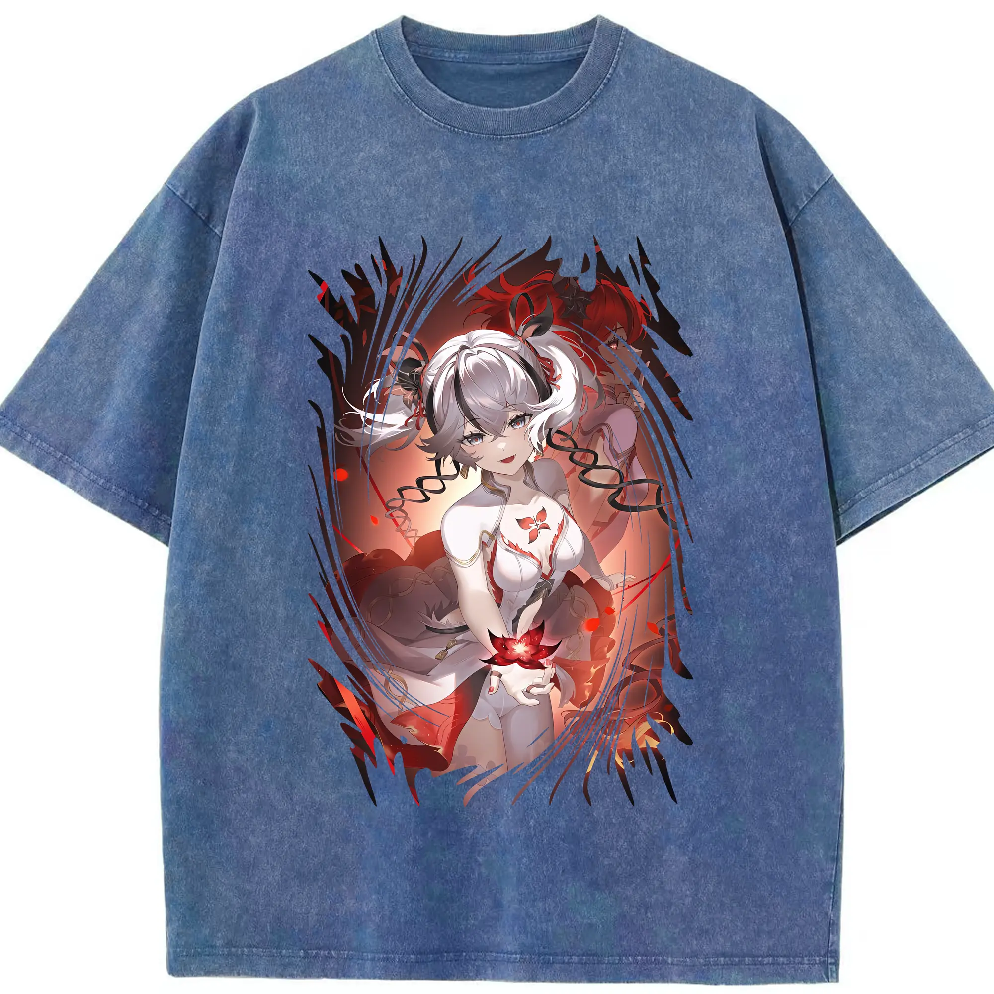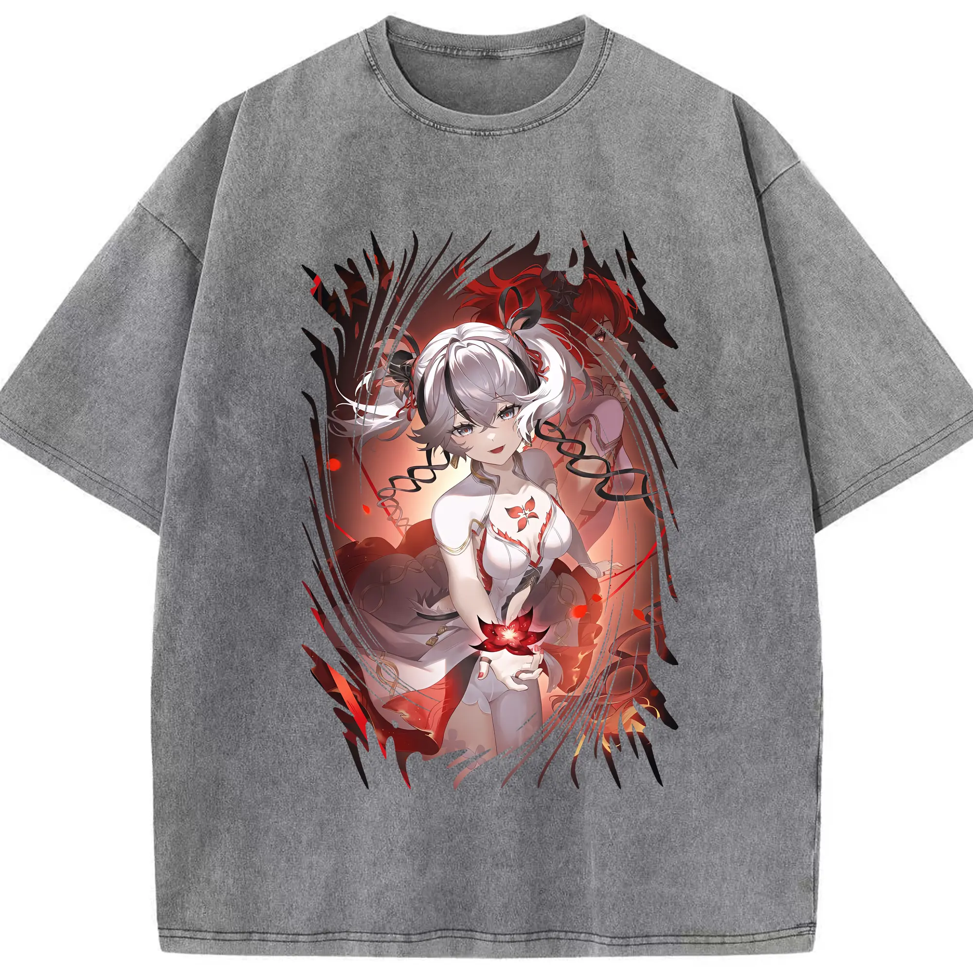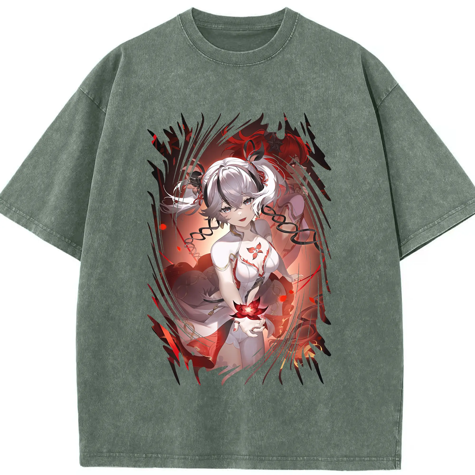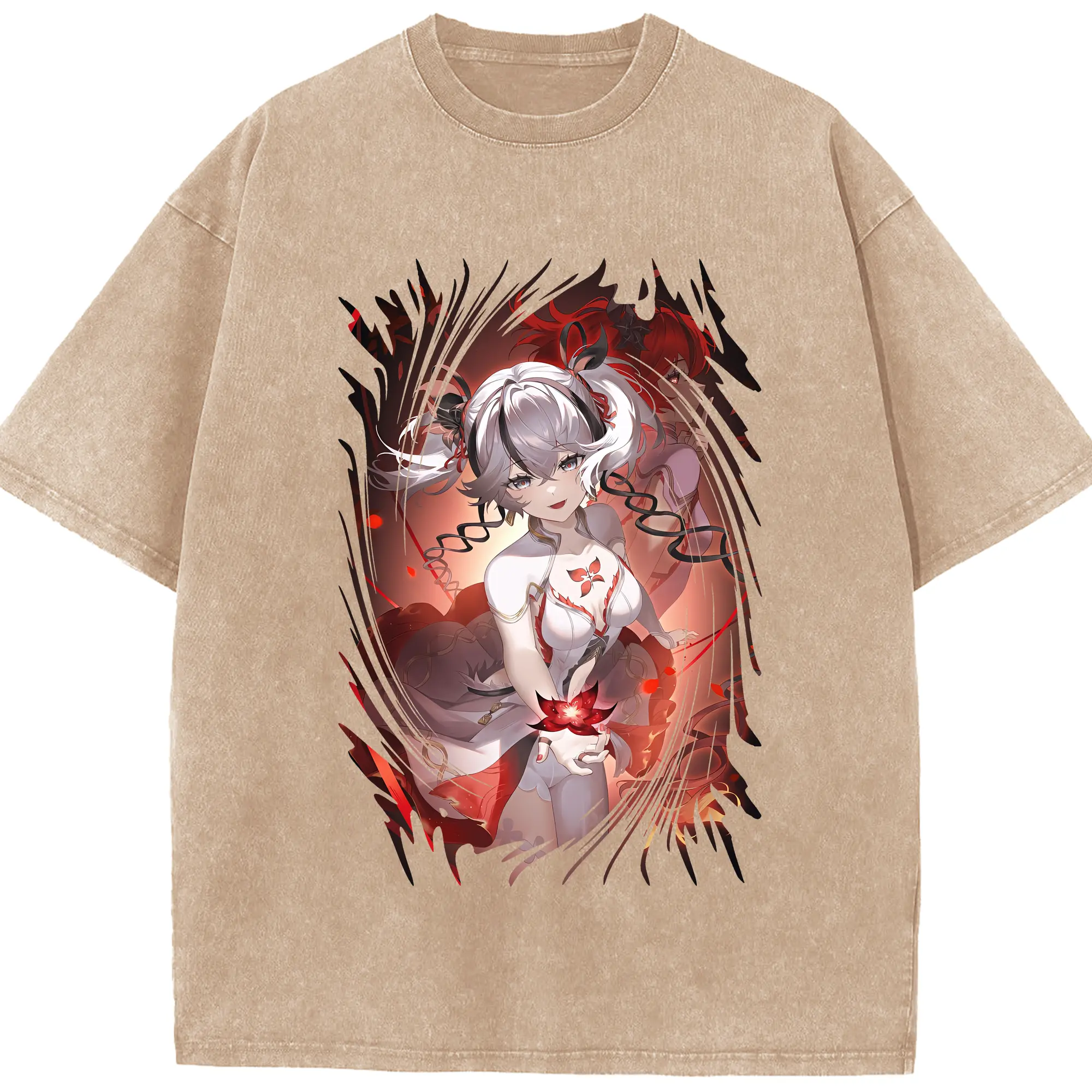 鳴潮 グッズ ツバキ - 綿100% ヴィンテージ風 半袖Tシャツ ・ フロントプリント ・ 柔らか肌触り ・ 通気性 快適 ・ スポーツ カジュアル 外出用