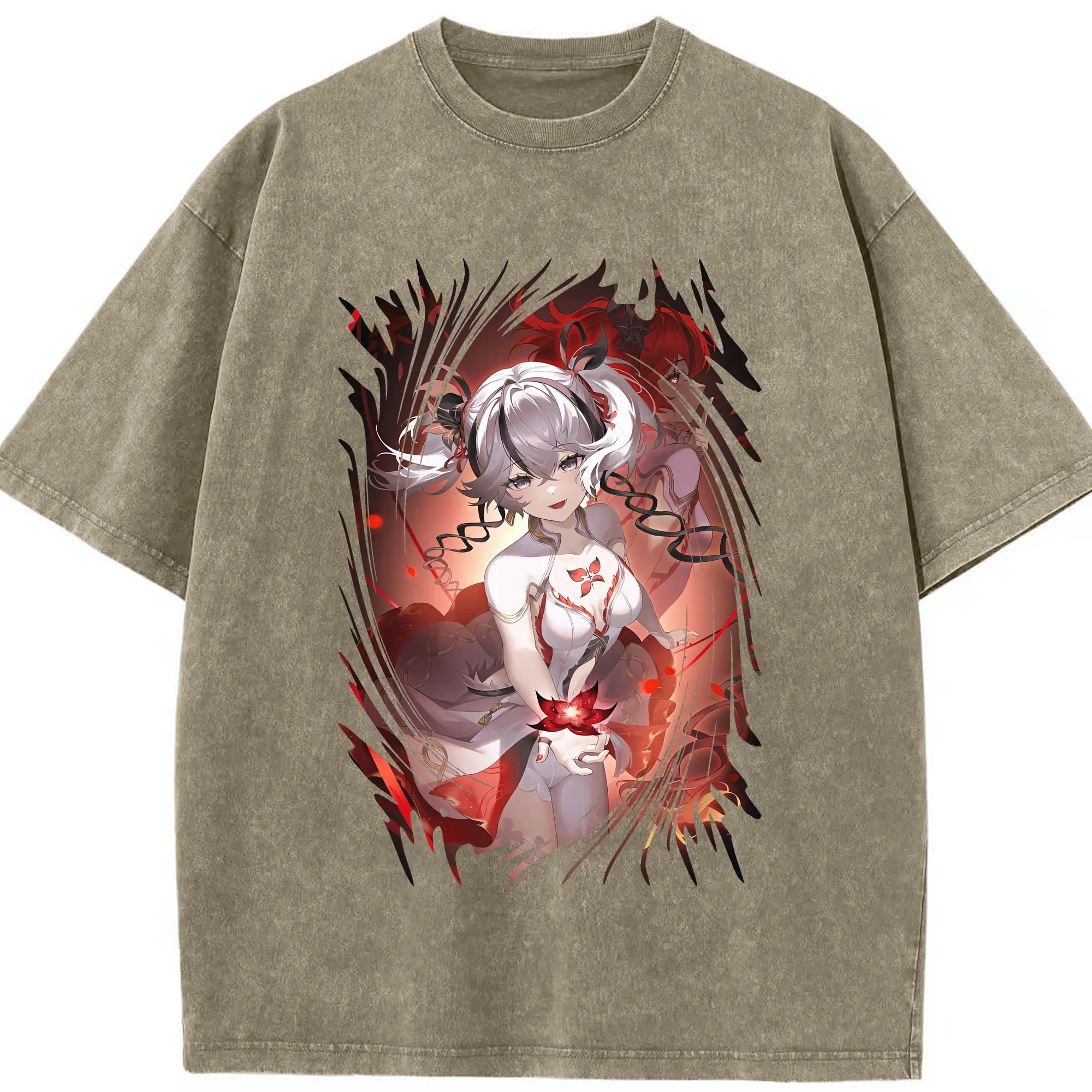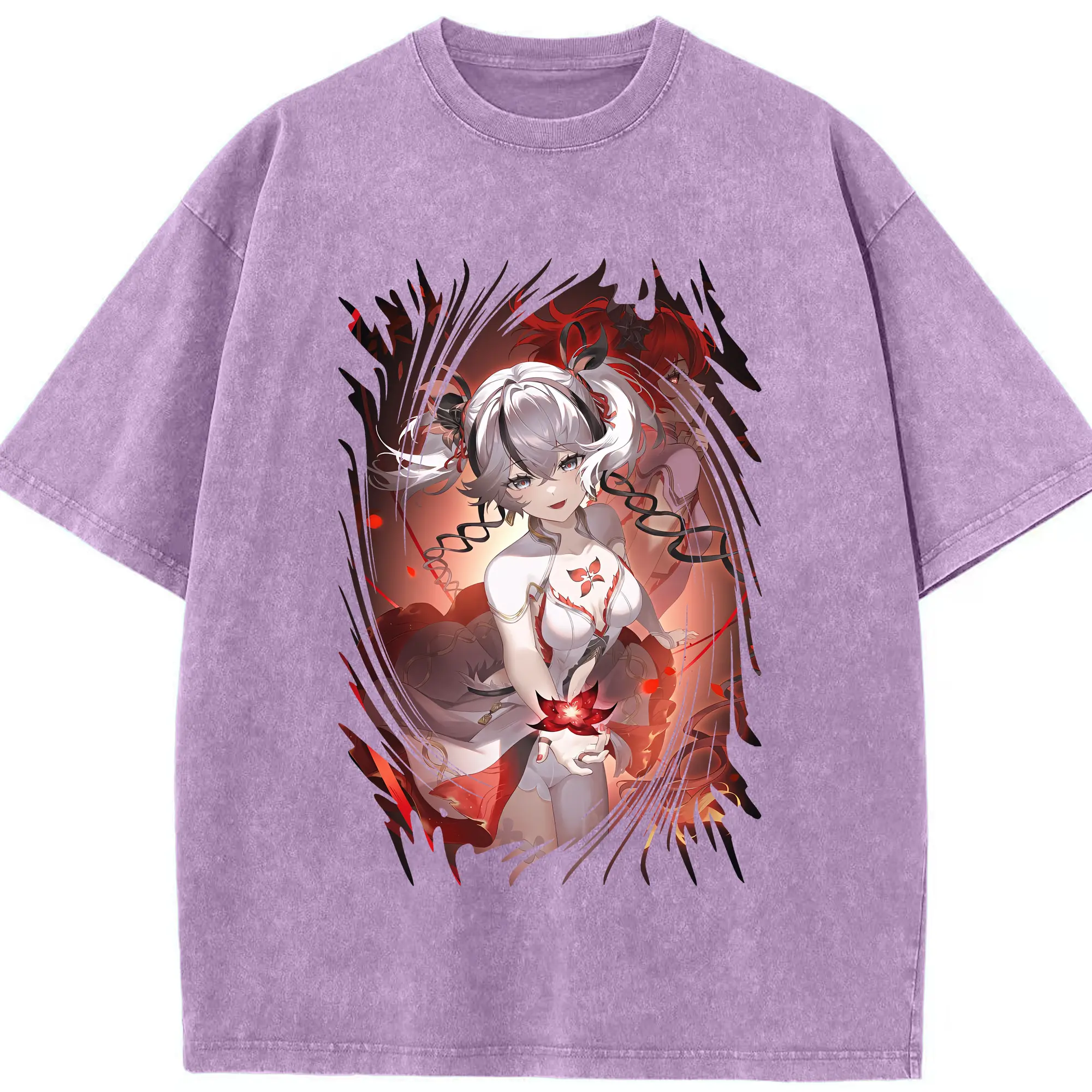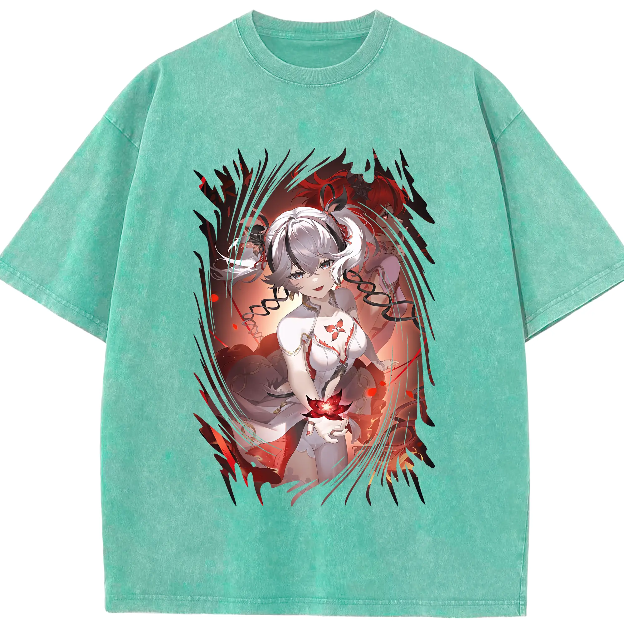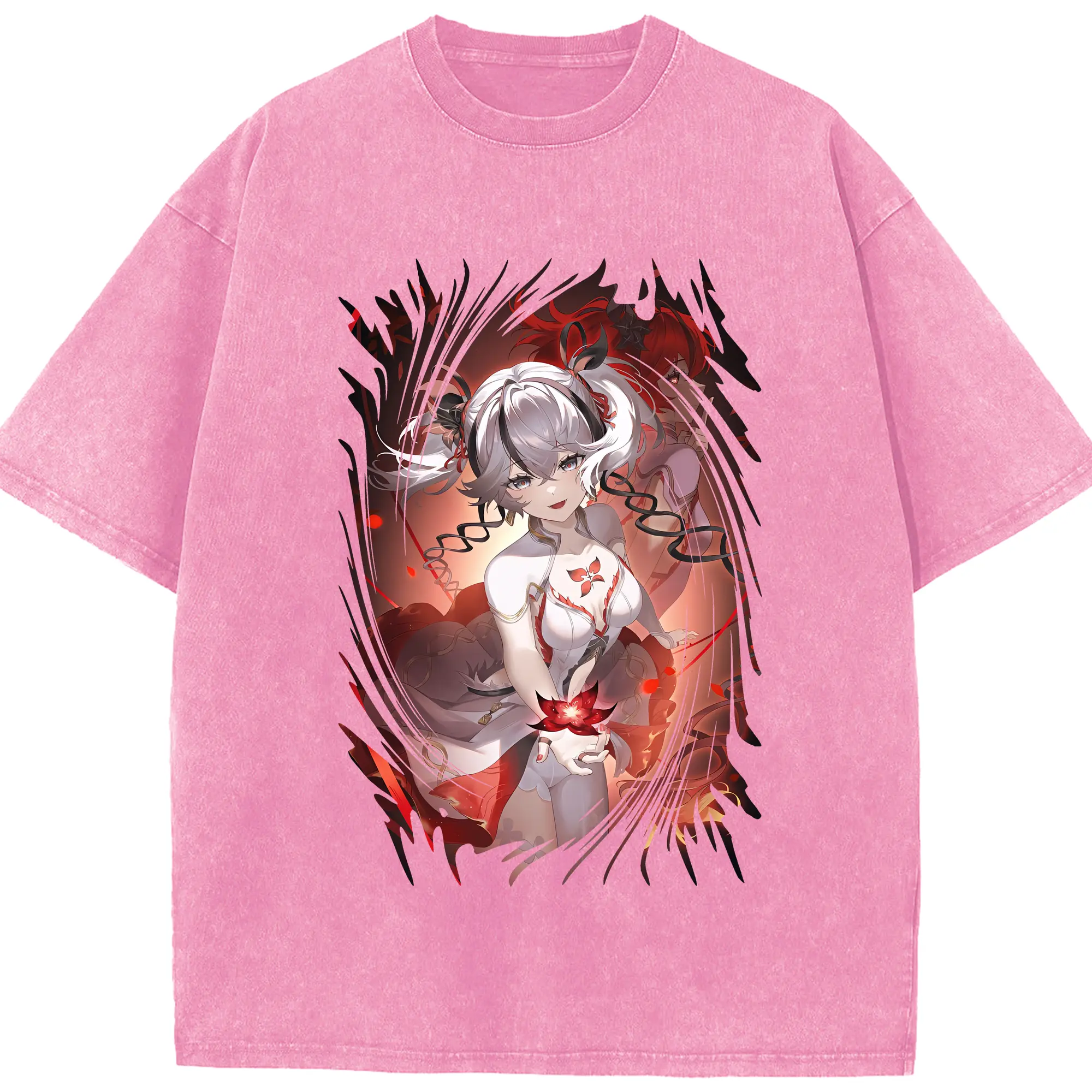 鳴潮 グッズ ツバキ - 綿100% ヴィンテージ風 半袖Tシャツ ・ フロントプリント ・ 柔らか肌触り ・ 通気性 快適 ・ スポーツ カジュアル 外出用