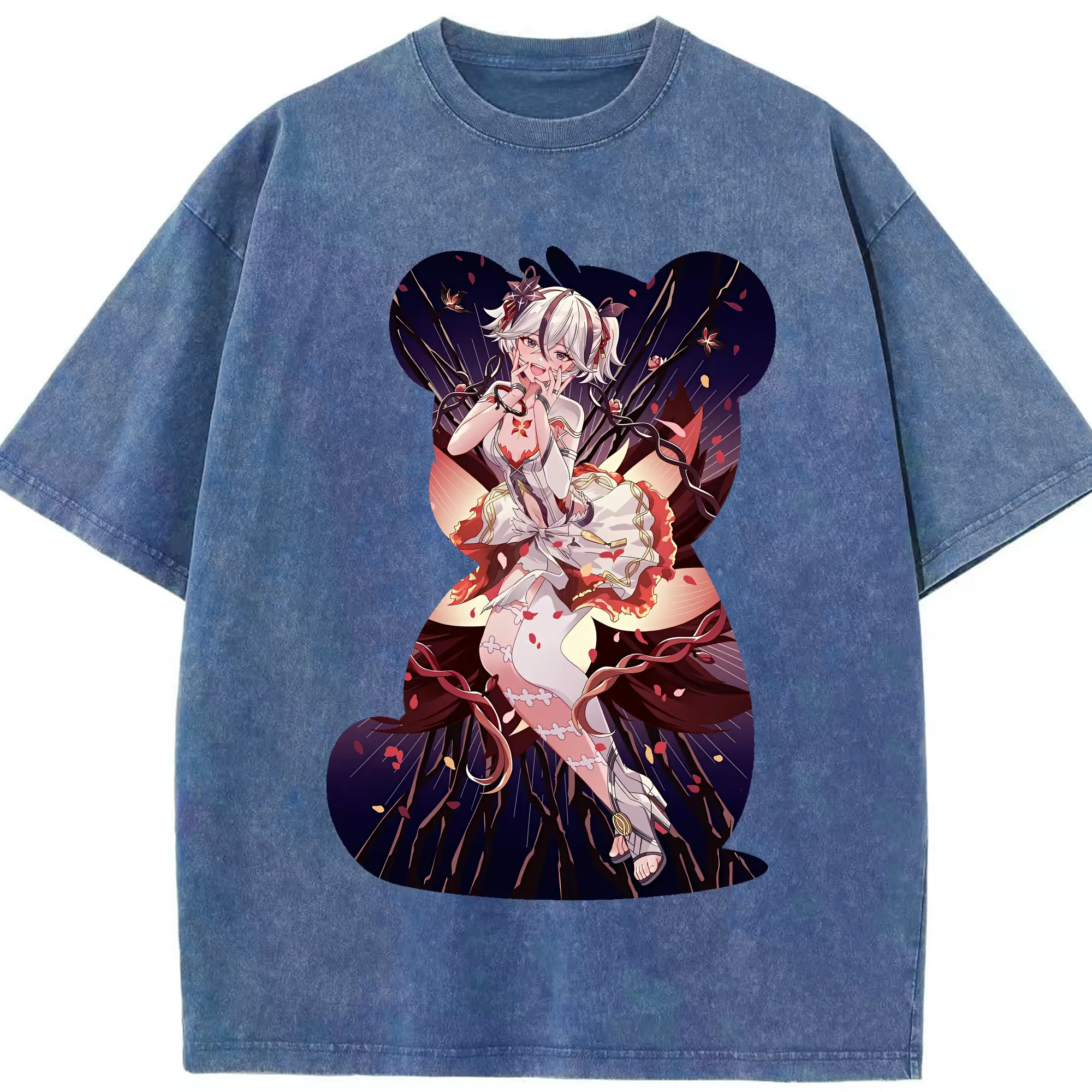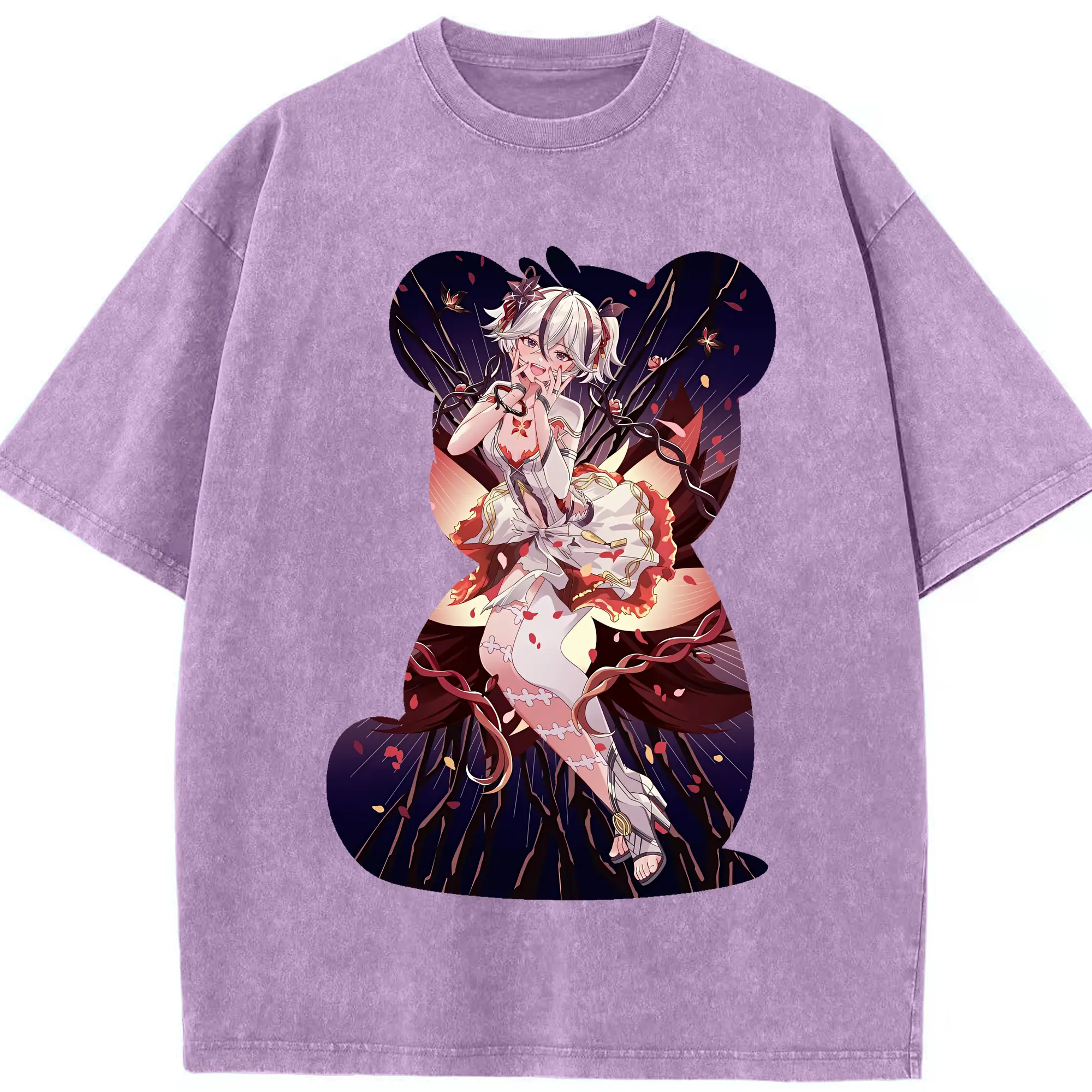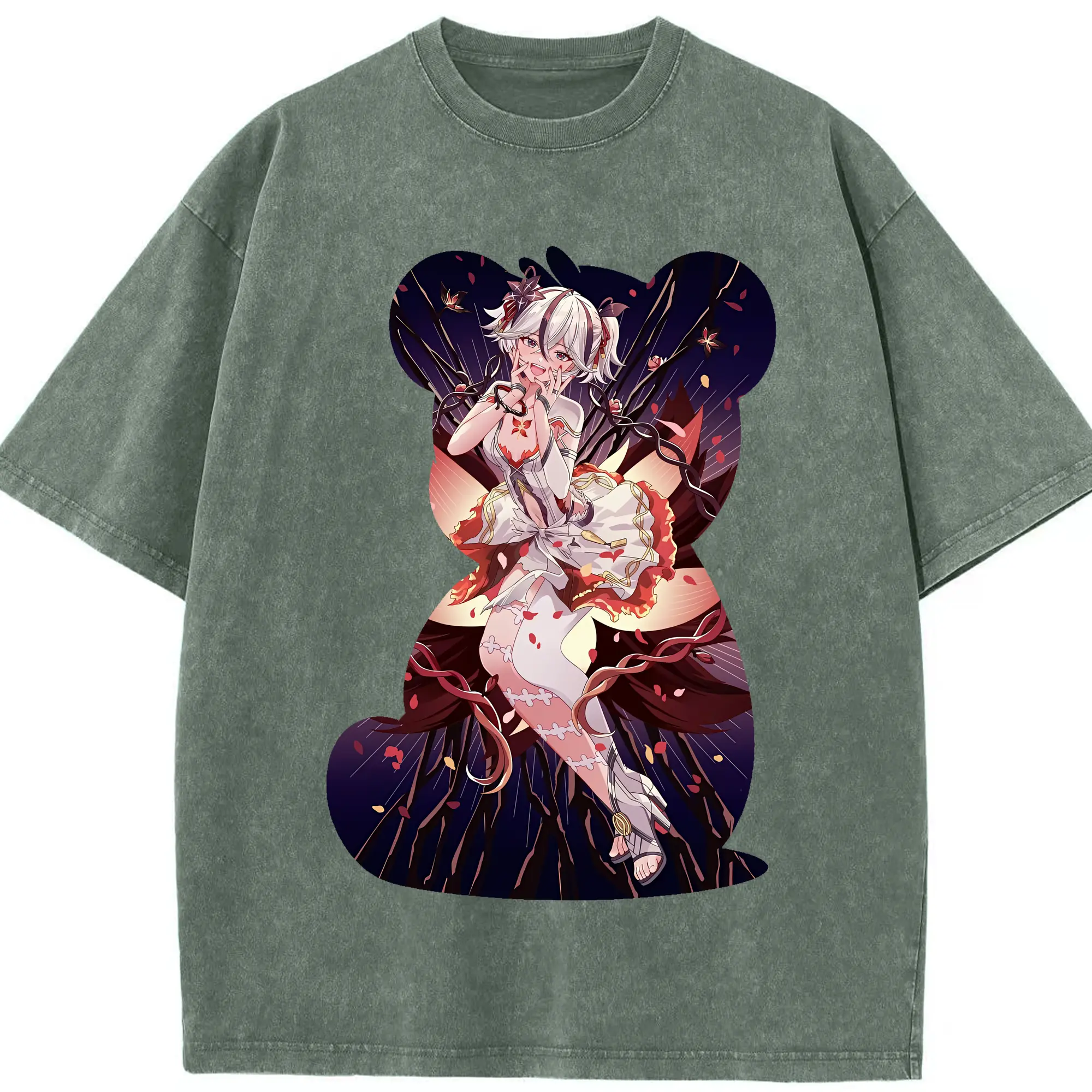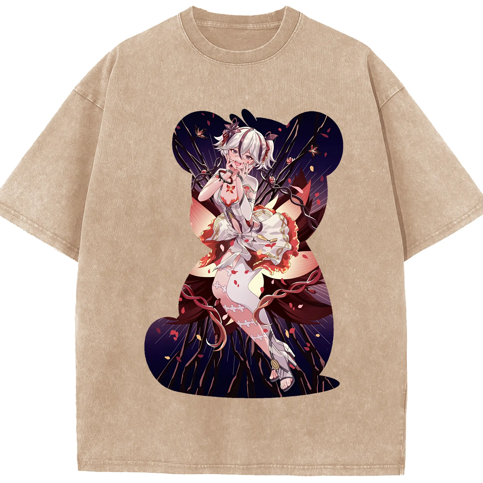 鳴潮 グッズ ツバキ - 綿100% ヴィンテージ風 半袖Tシャツ ・ 背面プリント ・ 柔らか肌触り ・ 通気性 快適 ・ スポーツ カジュアル 外出用