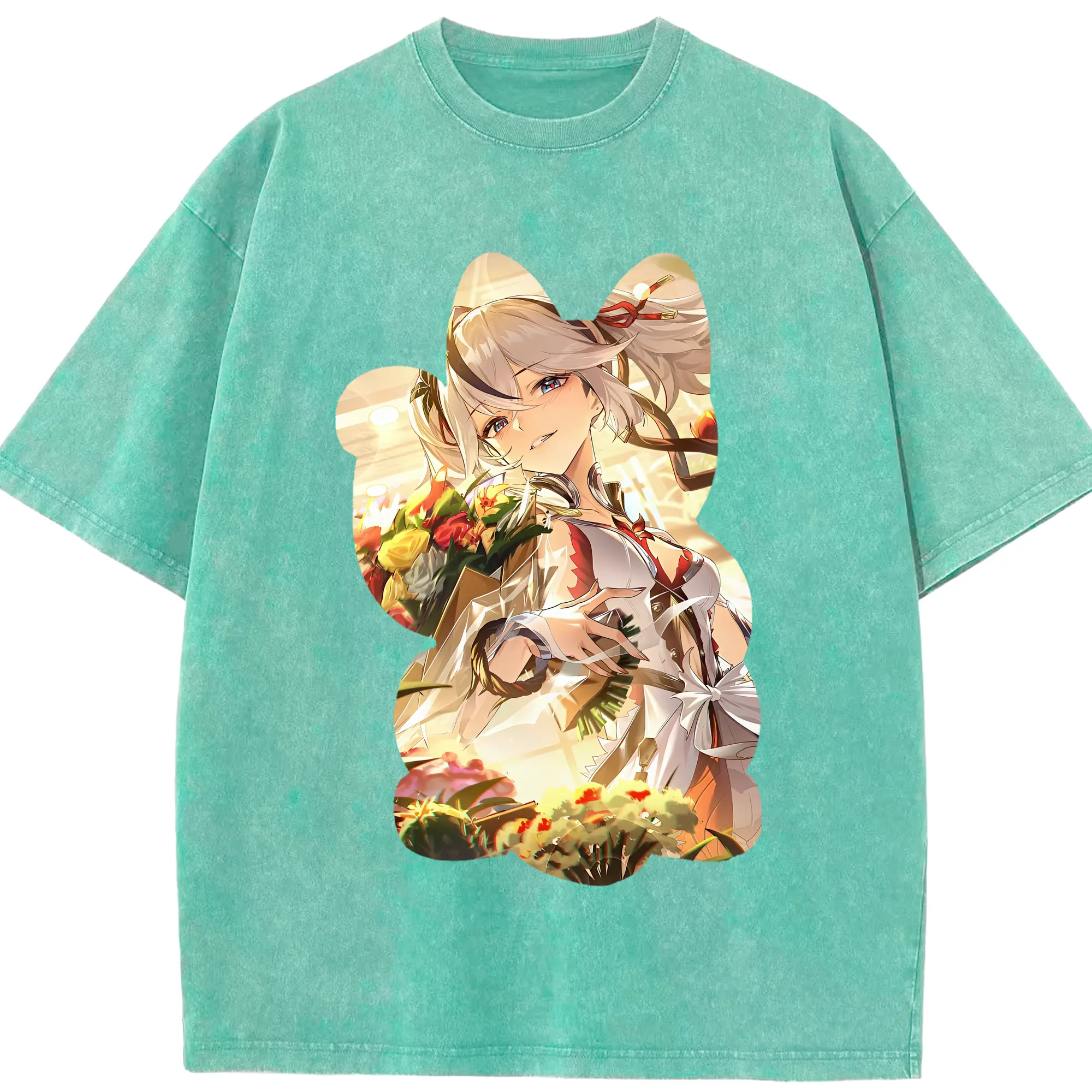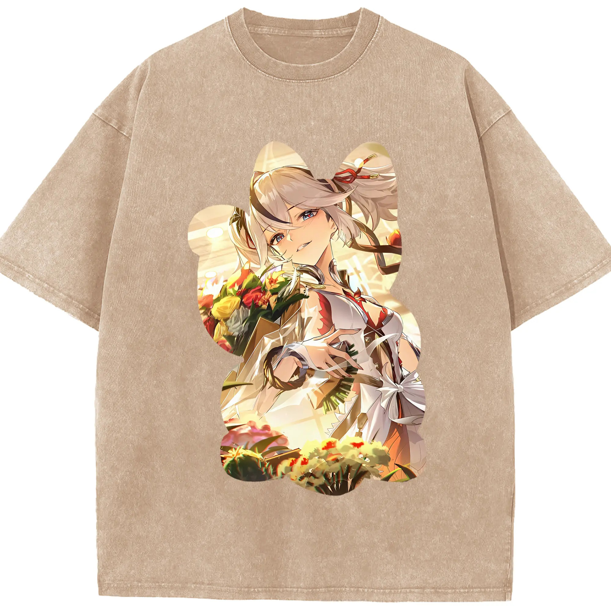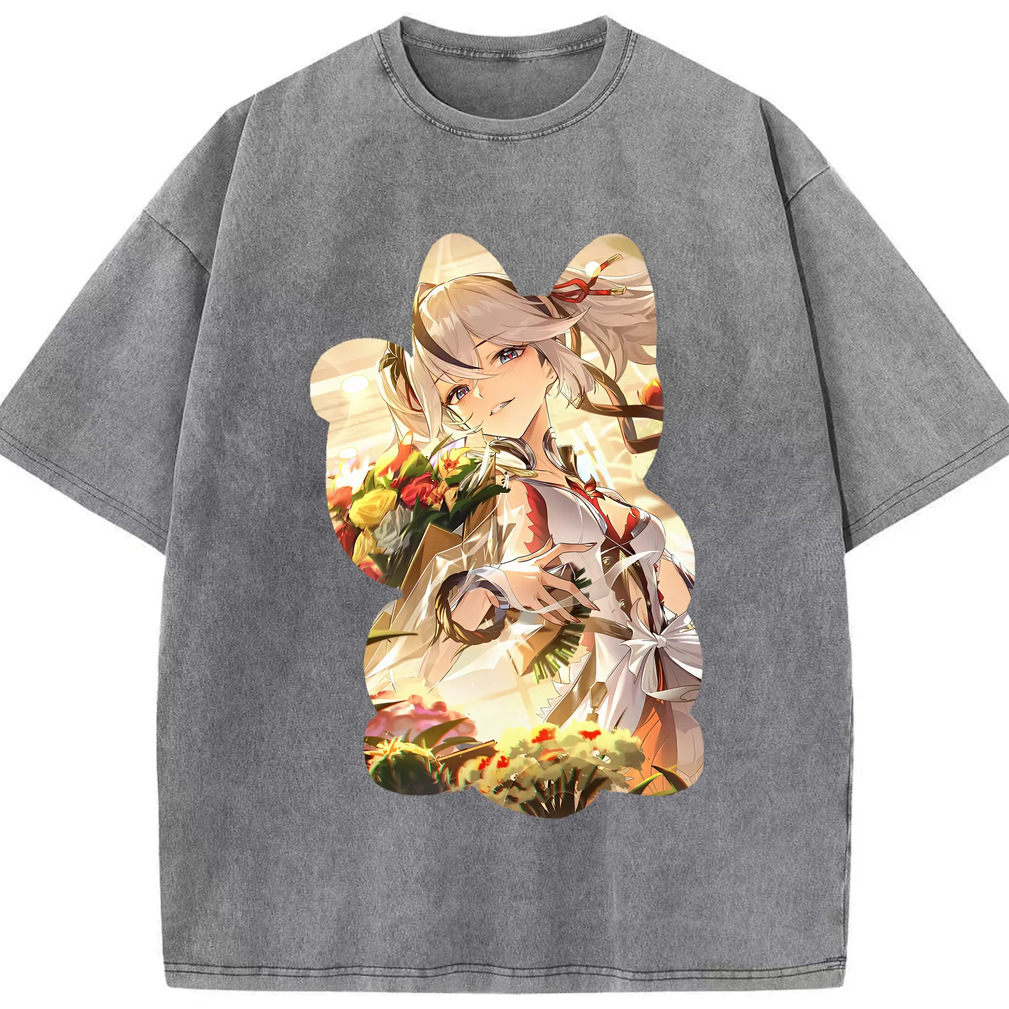 鳴潮 グッズ ツバキ - 綿100% ヴィンテージ風 半袖Tシャツ ・ 背面プリント ・ 柔らか肌触り ・ 通気性 快適 ・ スポーツ カジュアル 外出用