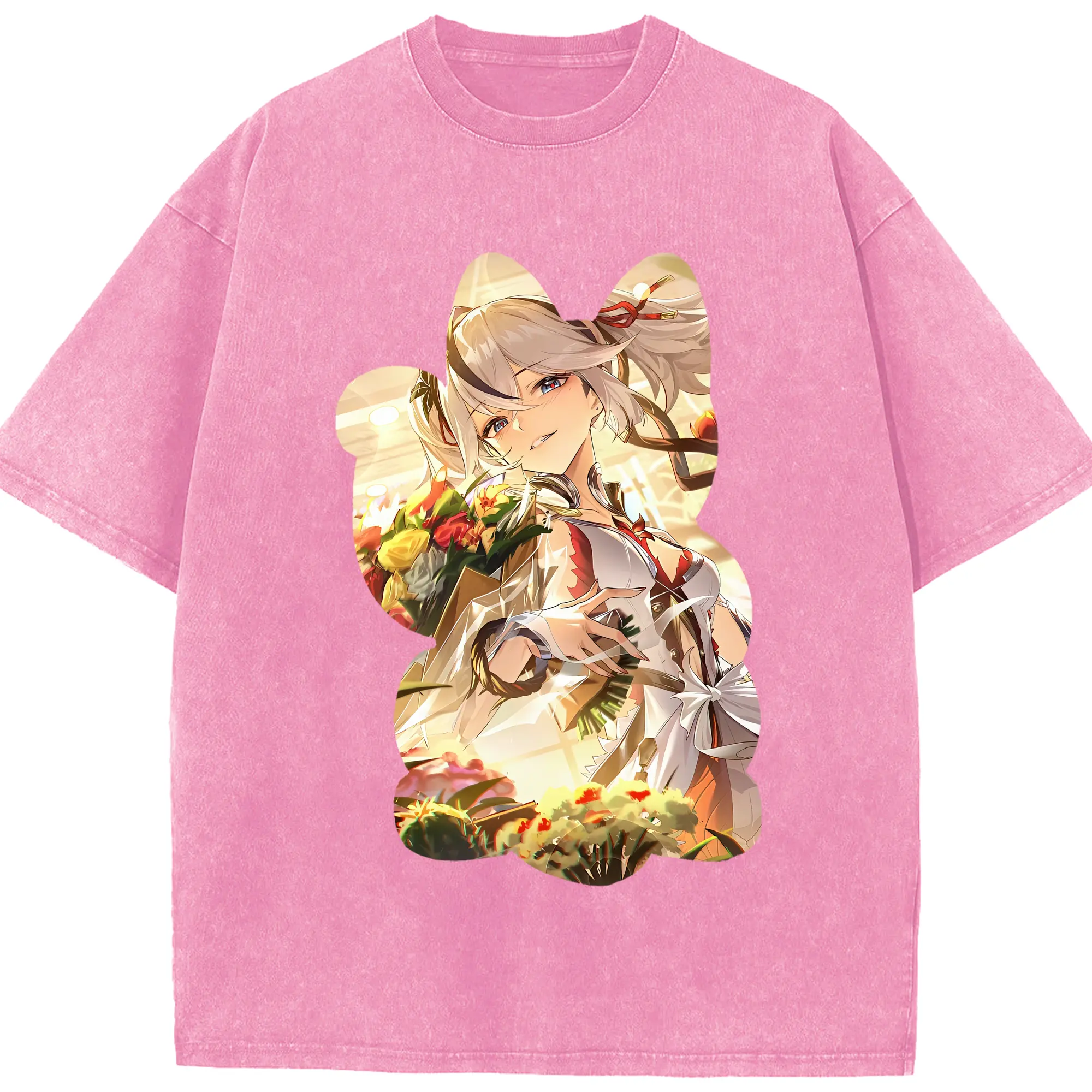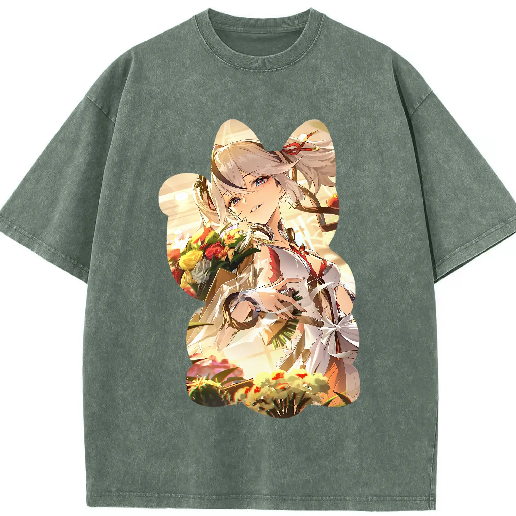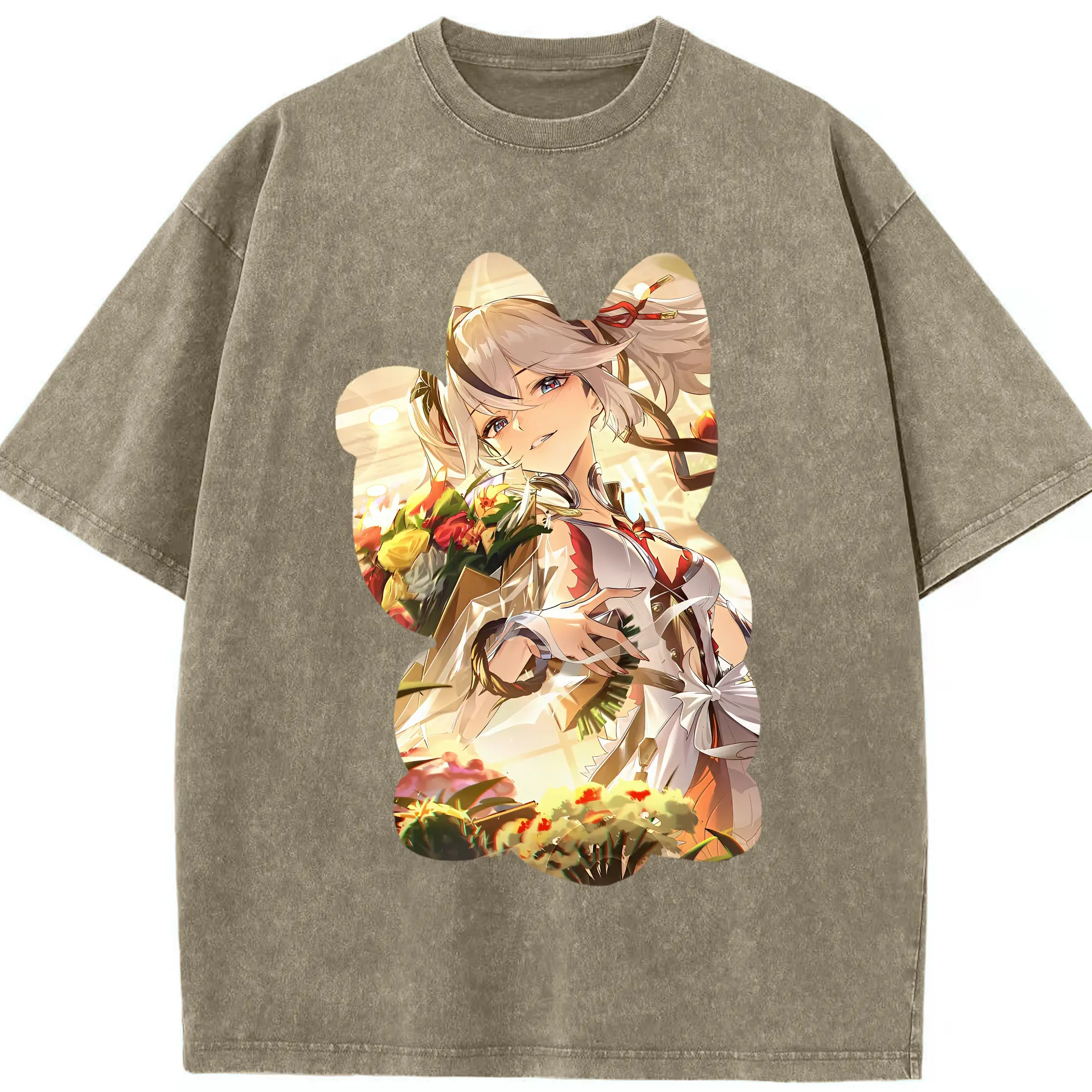 鳴潮 グッズ ツバキ - 綿100% ヴィンテージ風 半袖Tシャツ ・ 背面プリント ・ 柔らか肌触り ・ 通気性 快適 ・ スポーツ カジュアル 外出用
