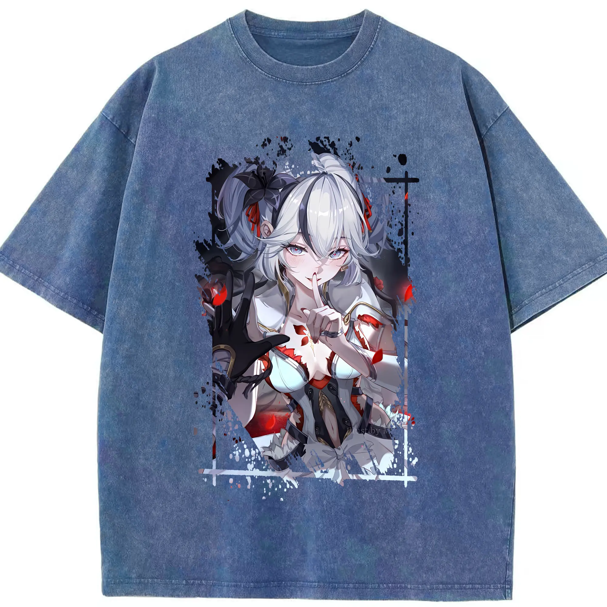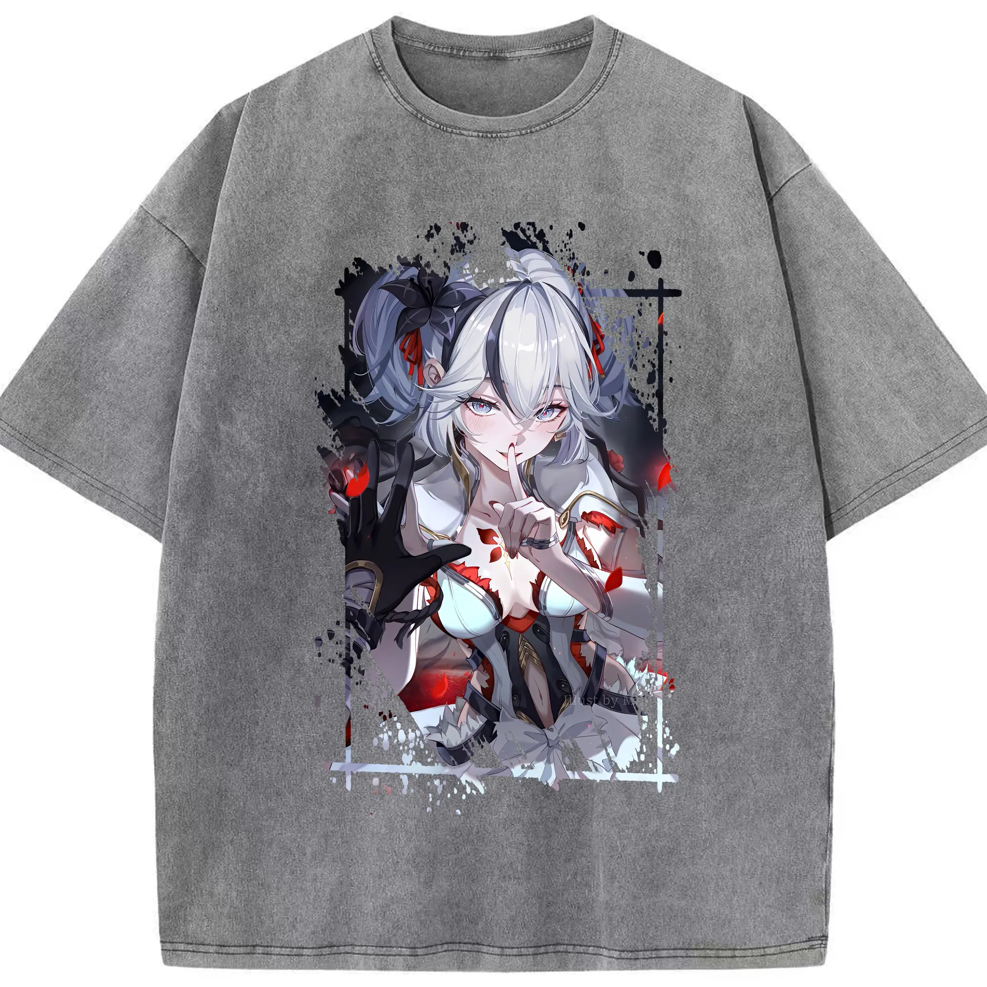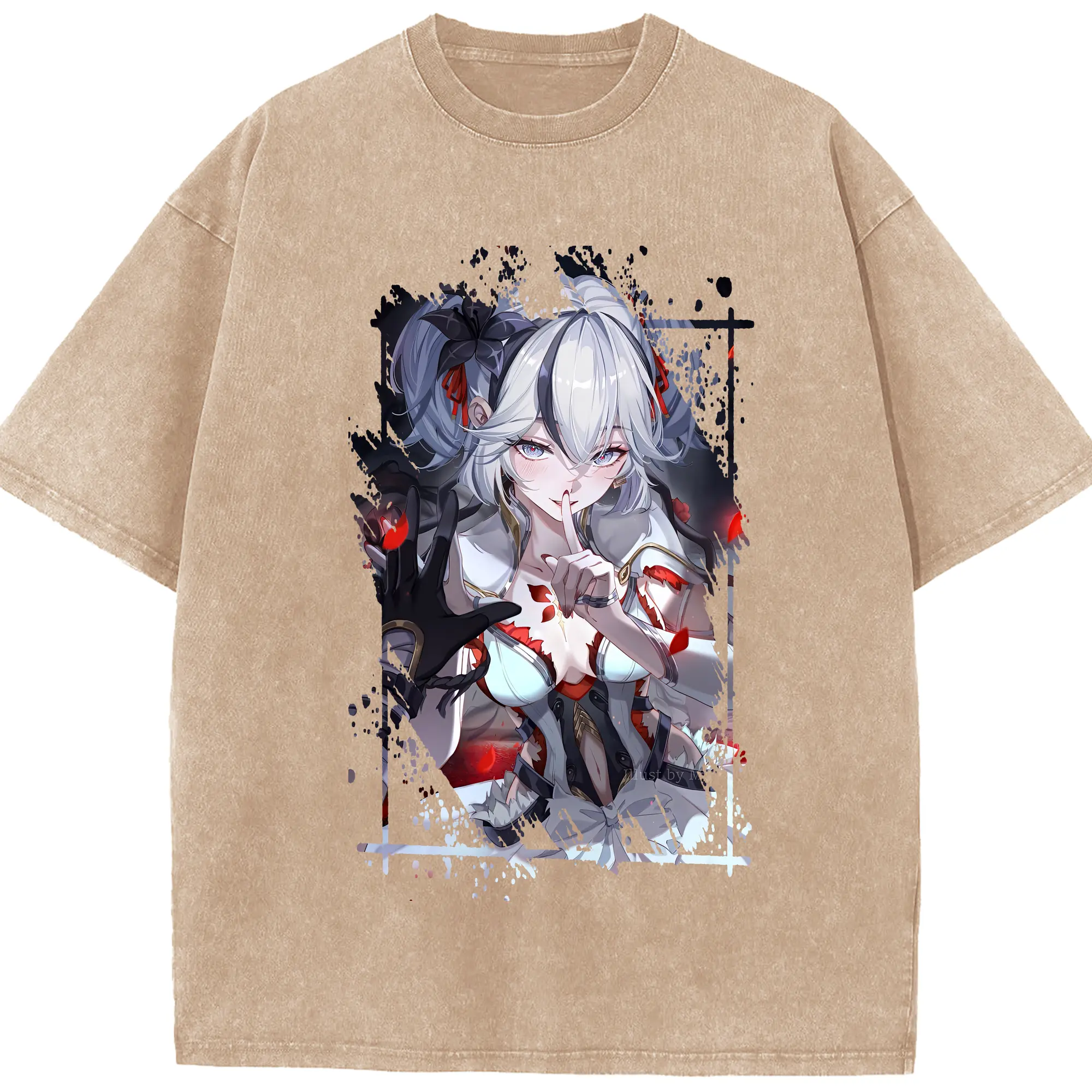 鳴潮 グッズ ツバキ - 綿100% ヴィンテージ風 半袖Tシャツ ・ 背面プリント ・ 柔らか肌触り ・ 通気性 快適 ・ スポーツ カジュアル 外出用
