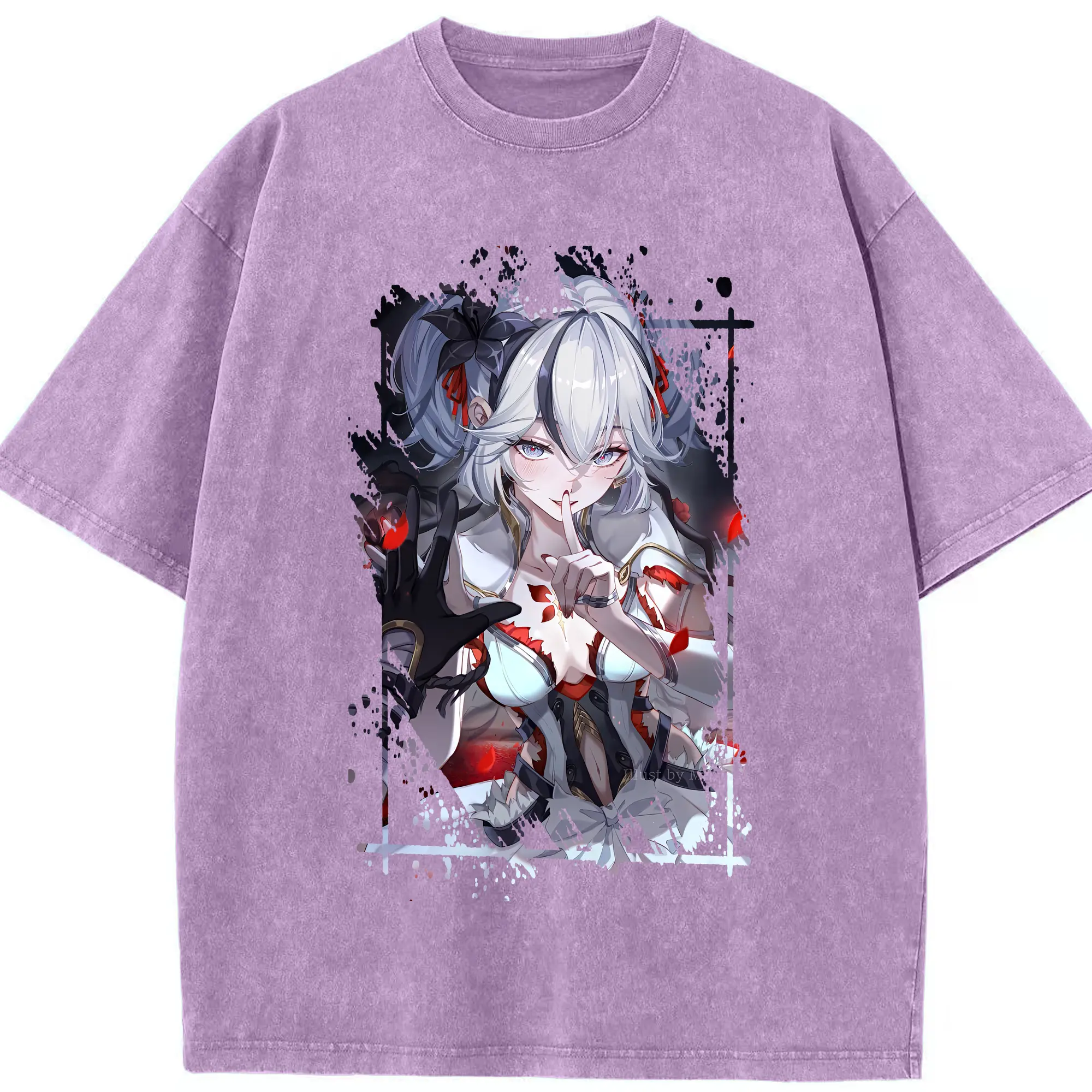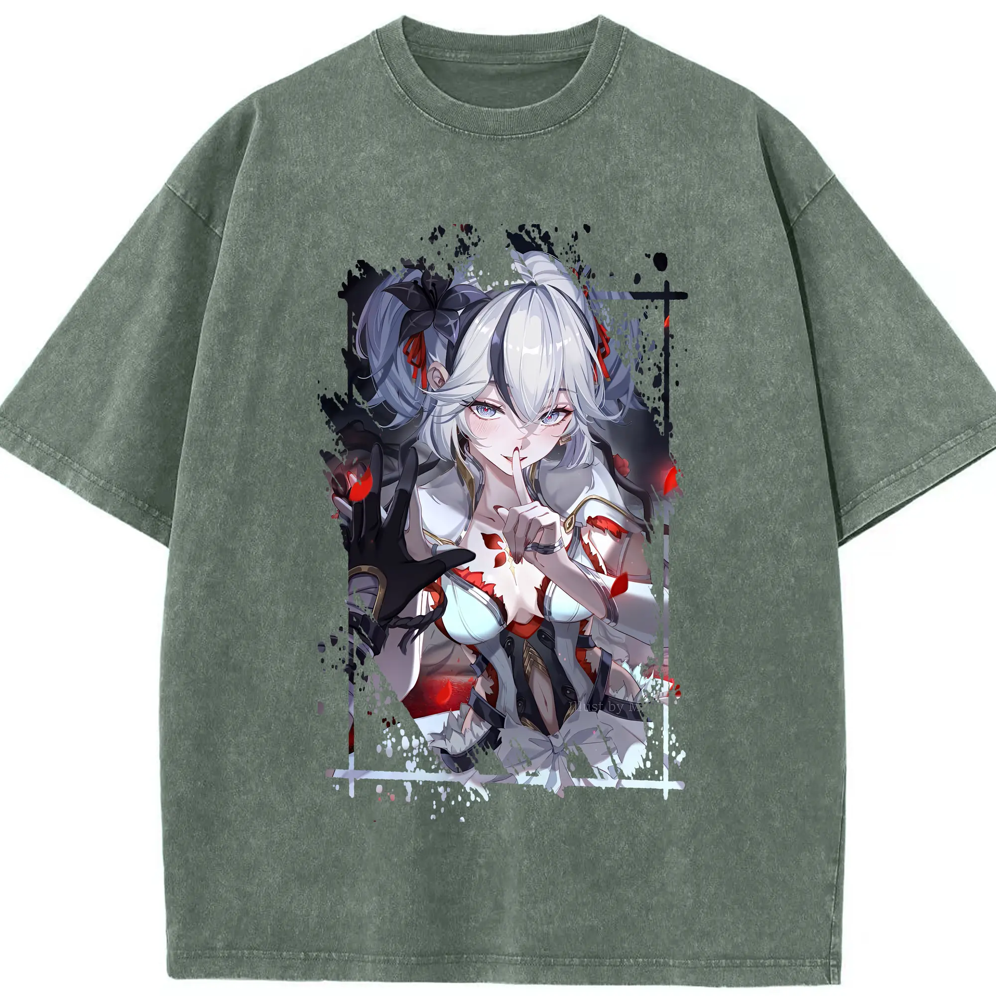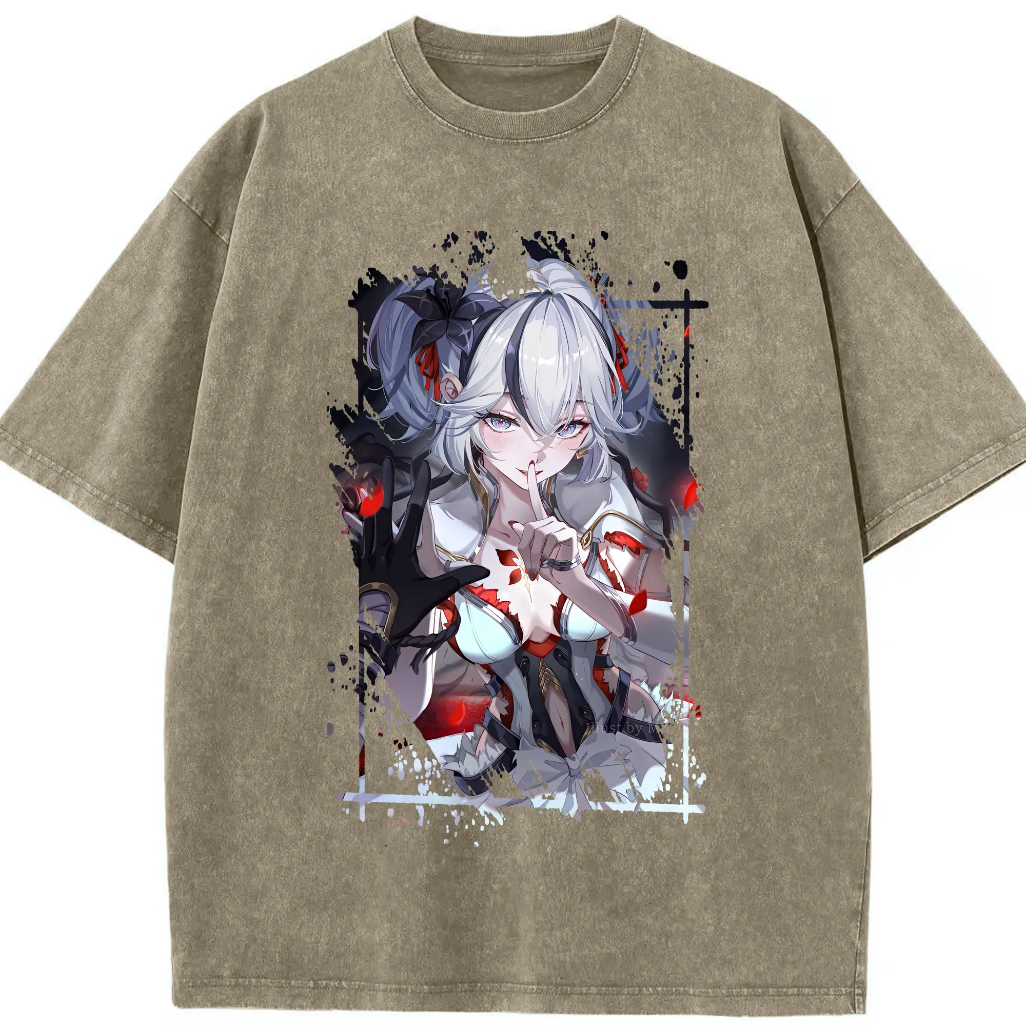 鳴潮 グッズ ツバキ - 綿100% ヴィンテージ風 半袖Tシャツ ・ 背面プリント ・ 柔らか肌触り ・ 通気性 快適 ・ スポーツ カジュアル 外出用