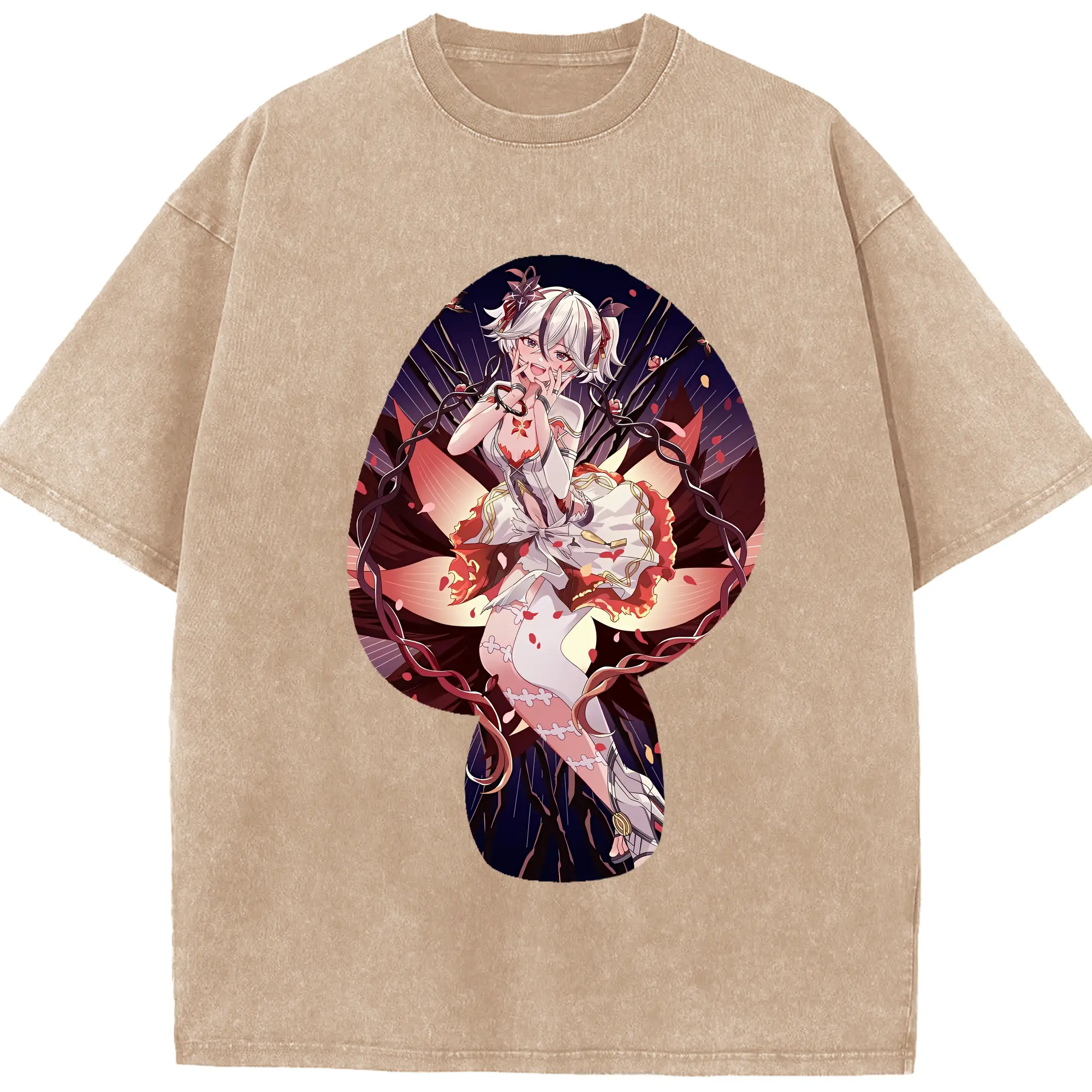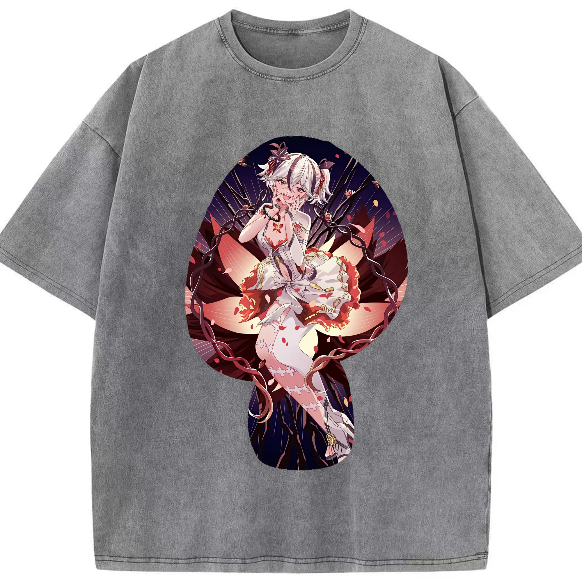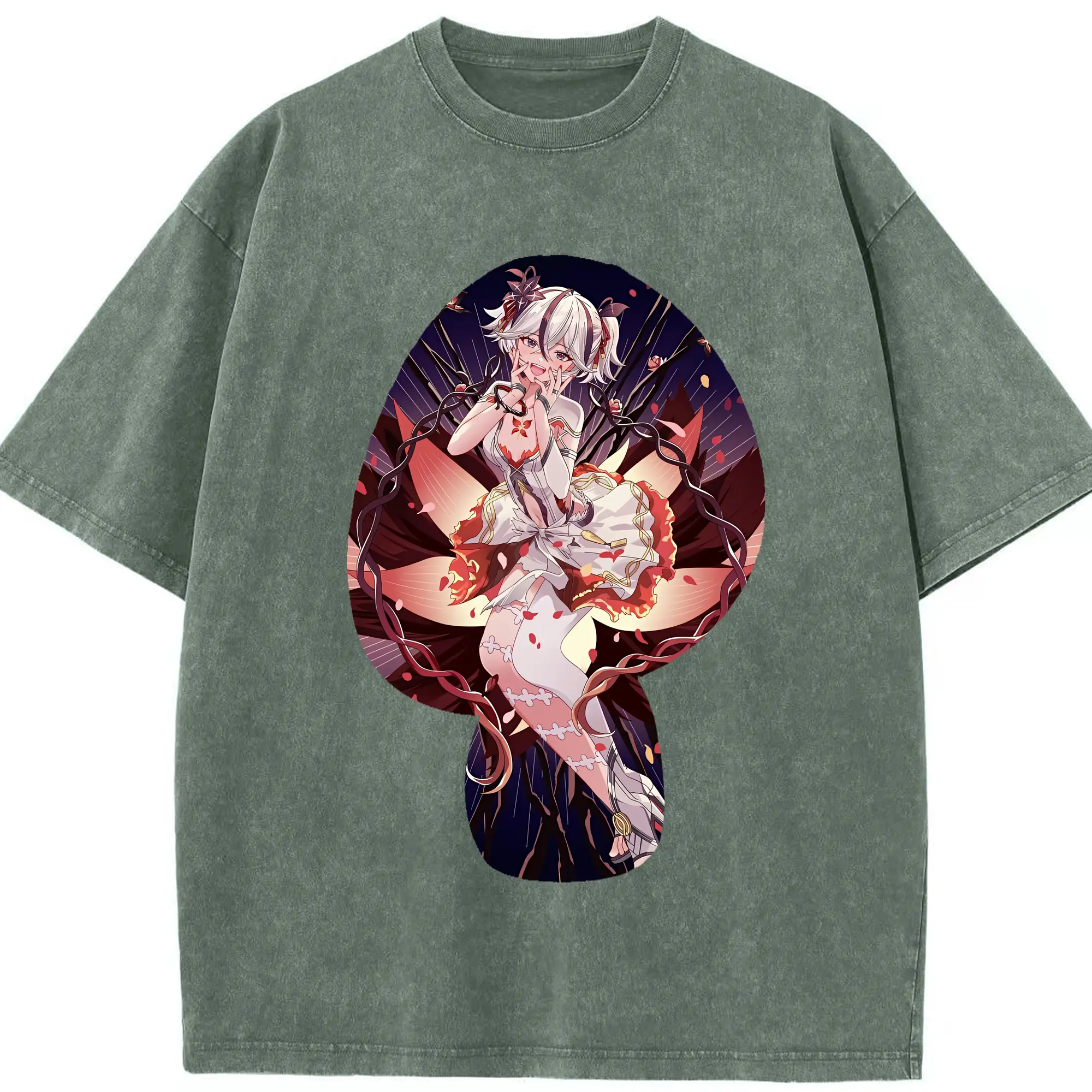 鳴潮 グッズ ツバキ - 綿100% ヴィンテージ風 半袖Tシャツ ・ 背面プリント ・ 柔らか肌触り ・ 通気性 快適 ・ スポーツ カジュアル 外出用