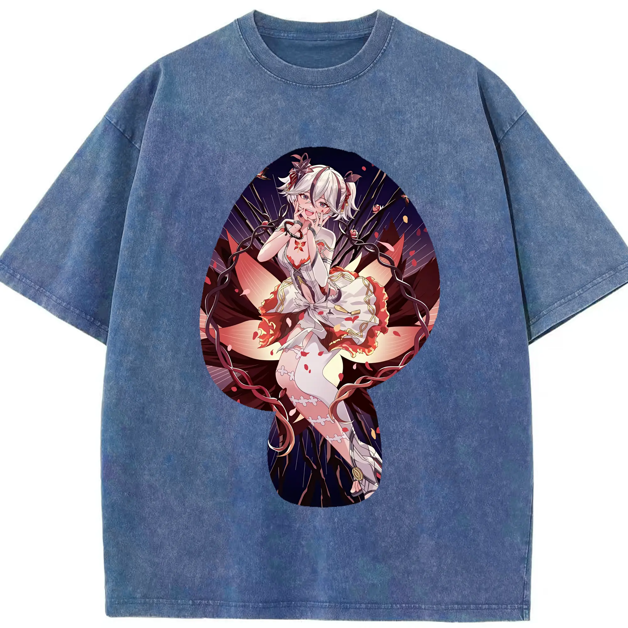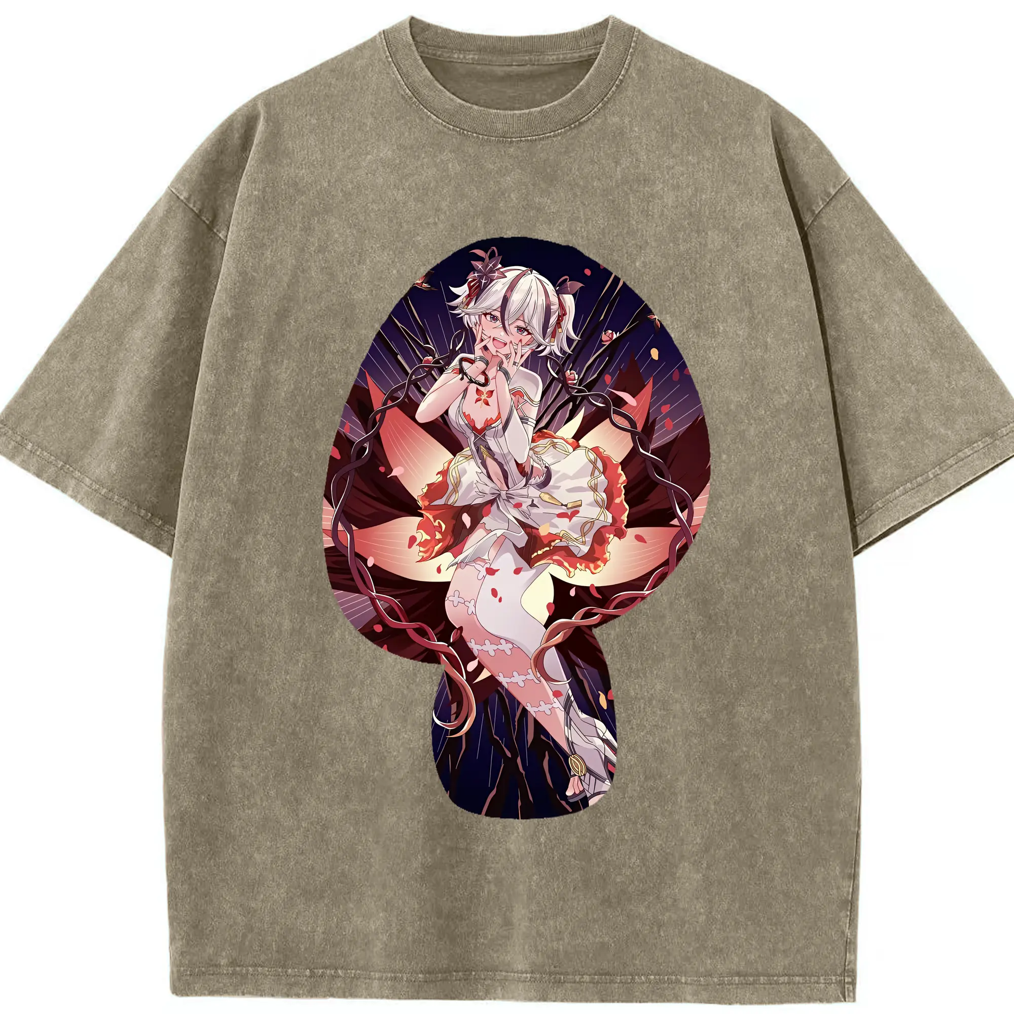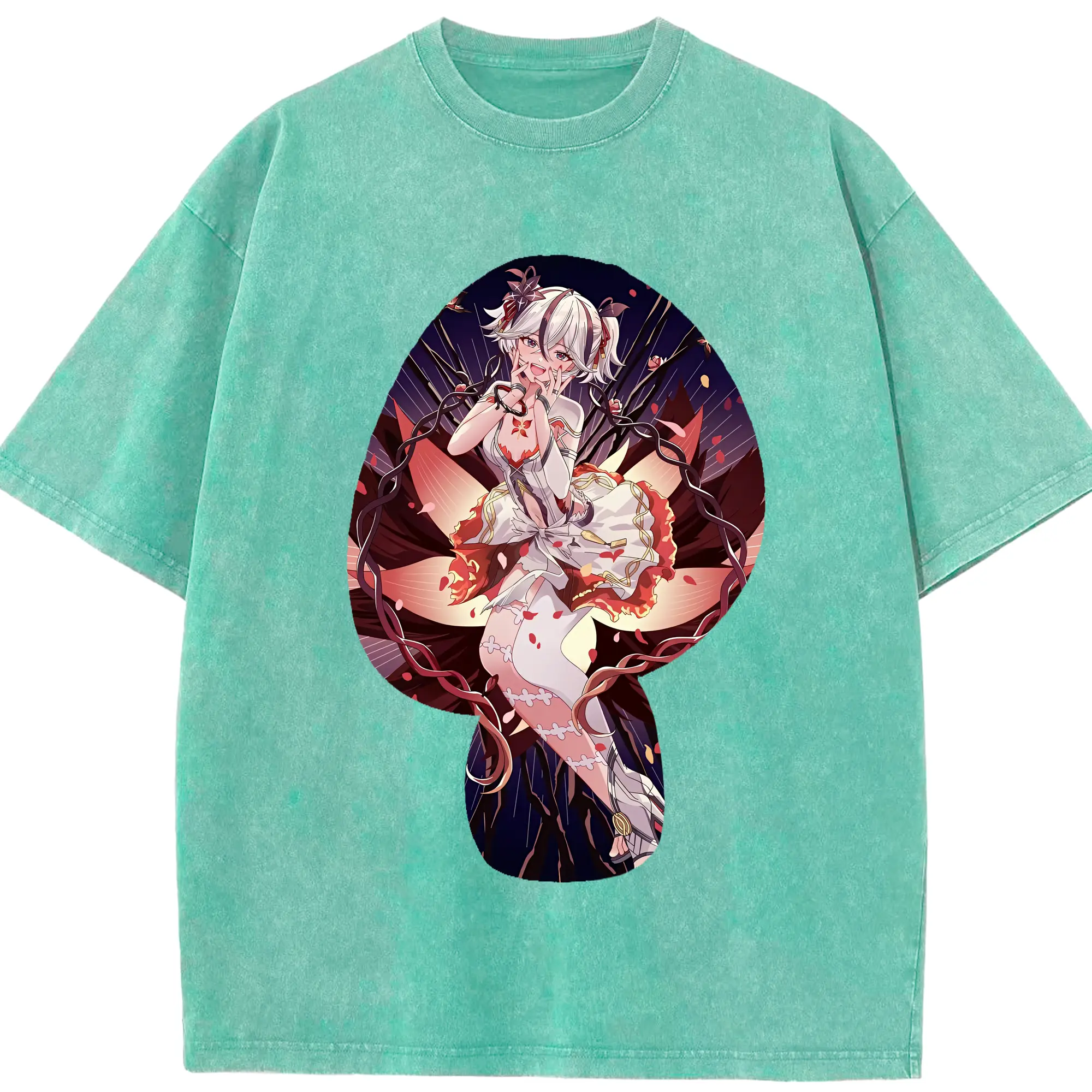 鳴潮 グッズ ツバキ - 綿100% ヴィンテージ風 半袖Tシャツ ・ 背面プリント ・ 柔らか肌触り ・ 通気性 快適 ・ スポーツ カジュアル 外出用
