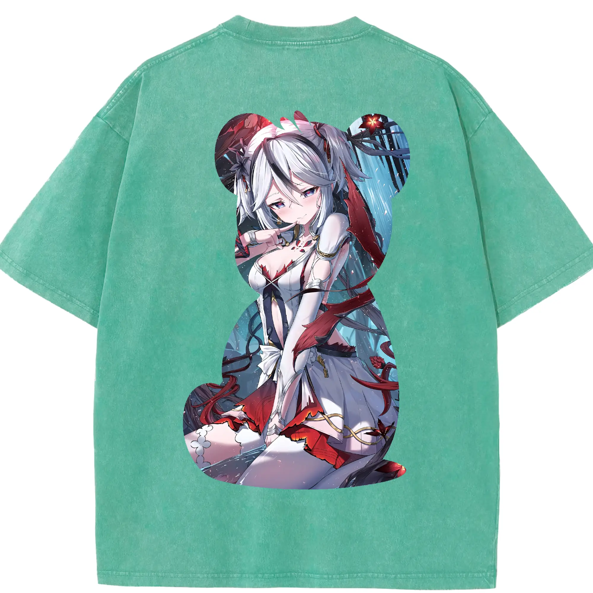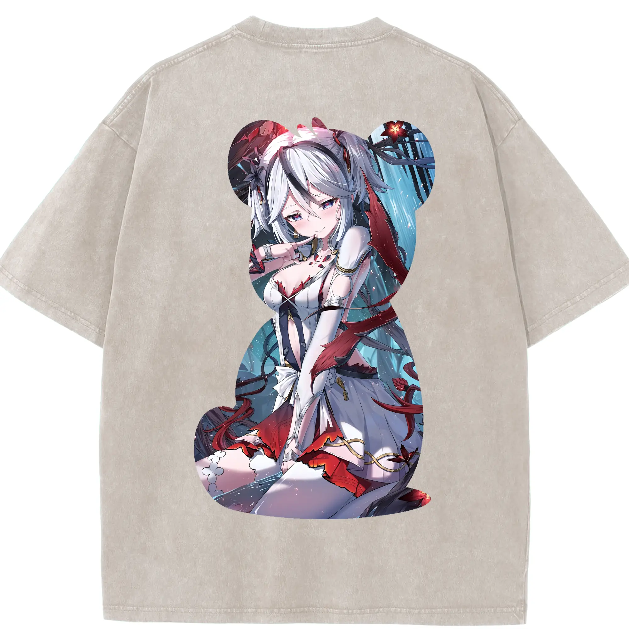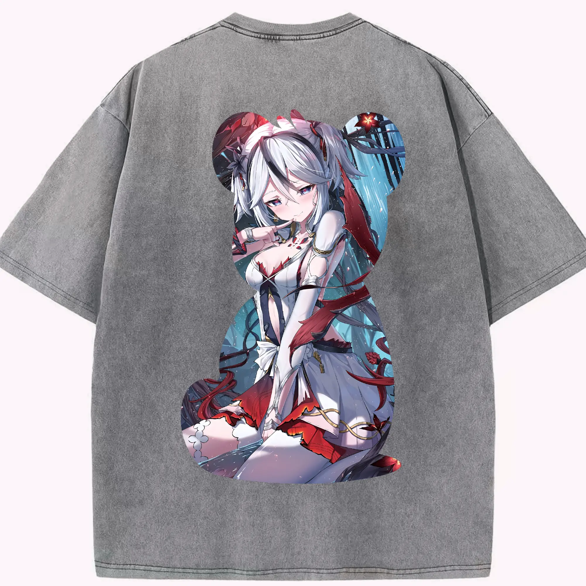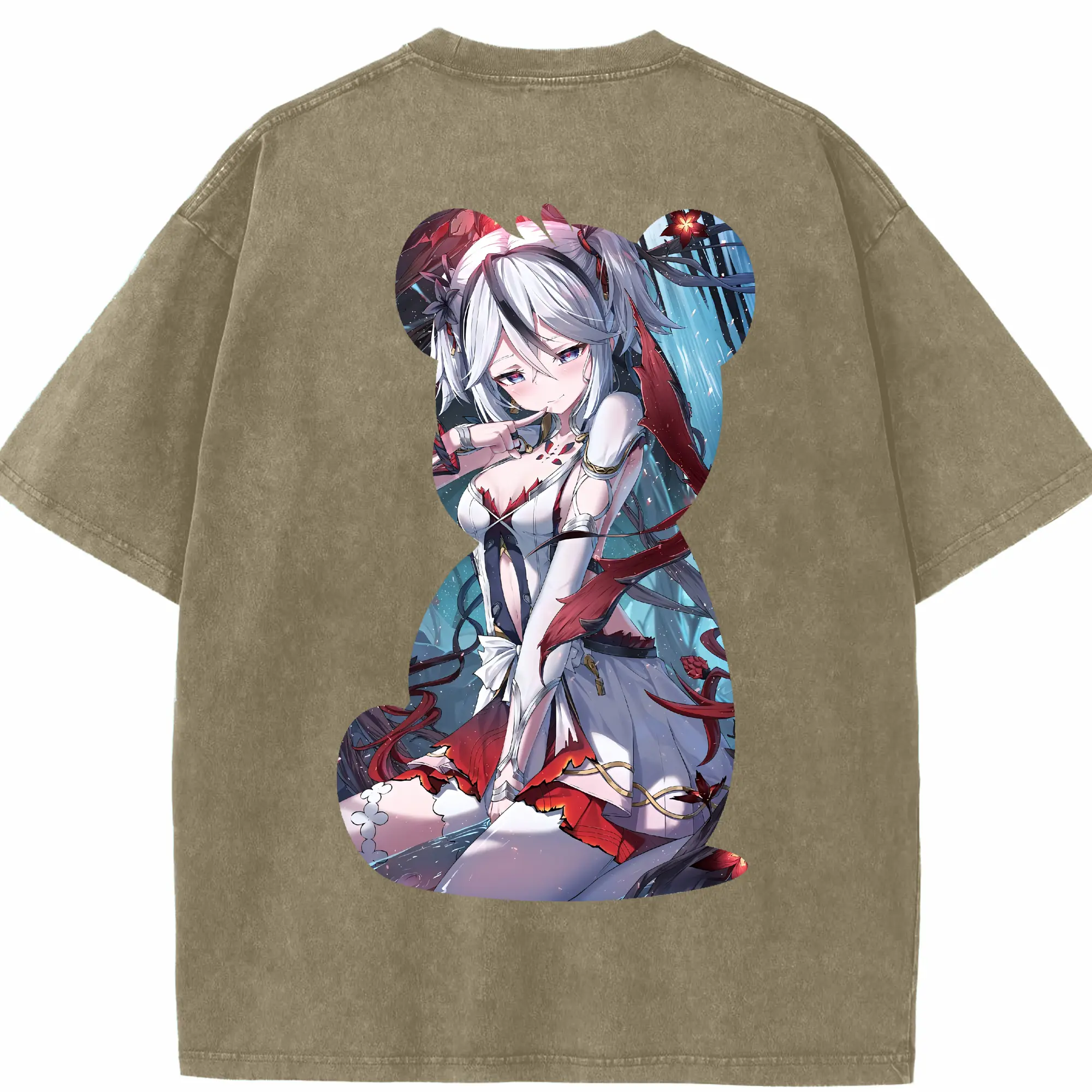 鳴潮 グッズ カンタレラ - 綿100% ヴィンテージ風 半袖Tシャツ ・ 背面プリント ・ 柔らか肌触り ・ 通気性 快適 ・ スポーツ カジュアル 外出用