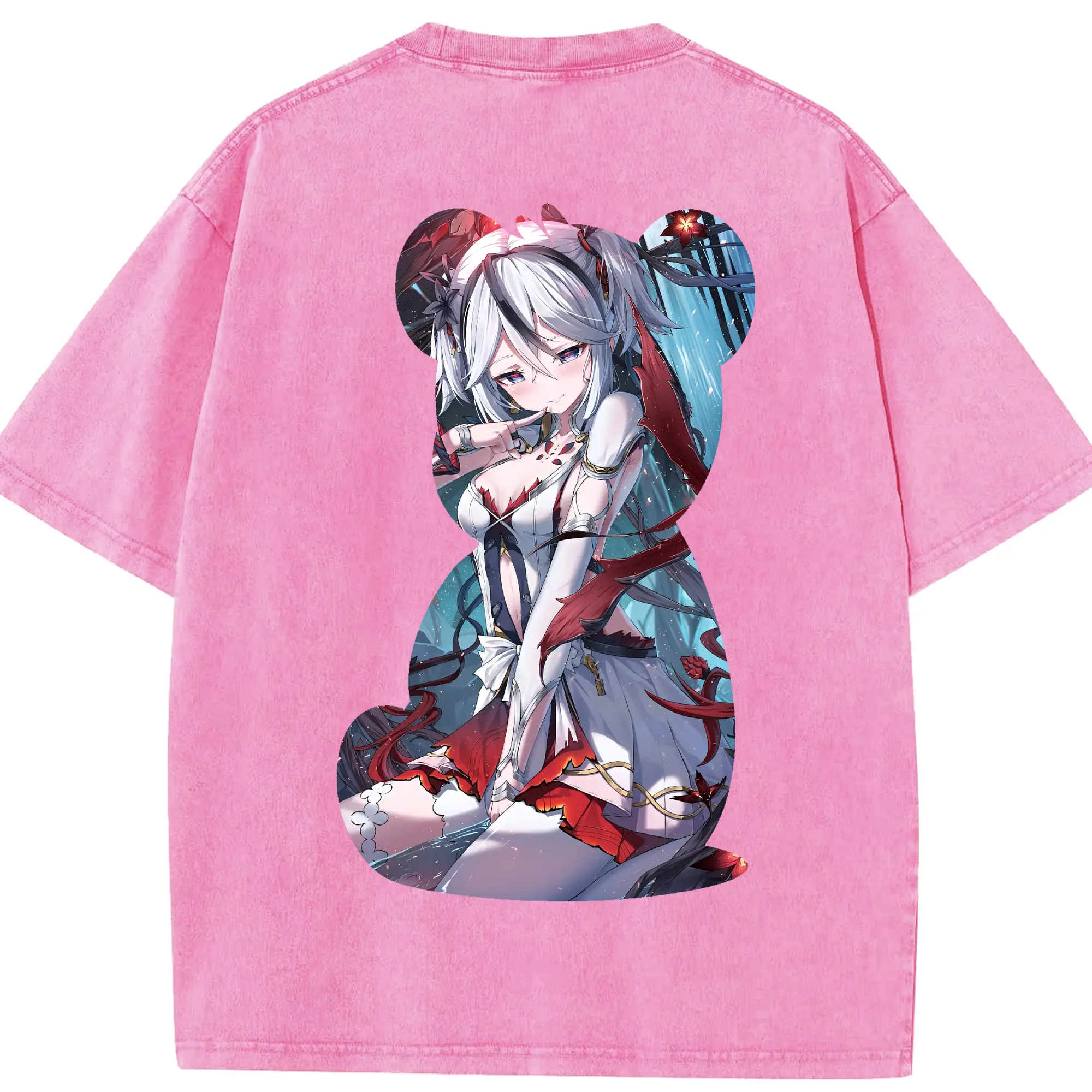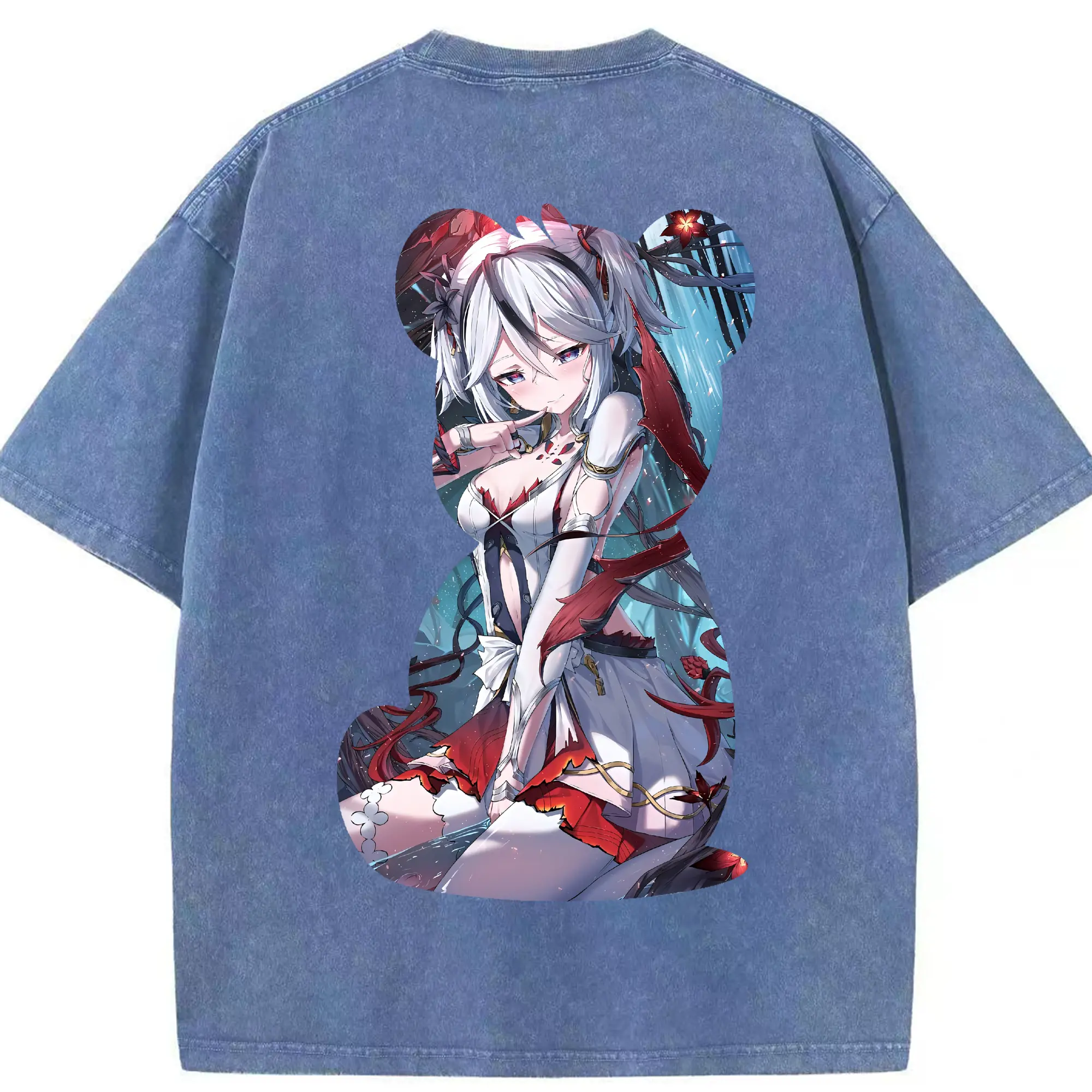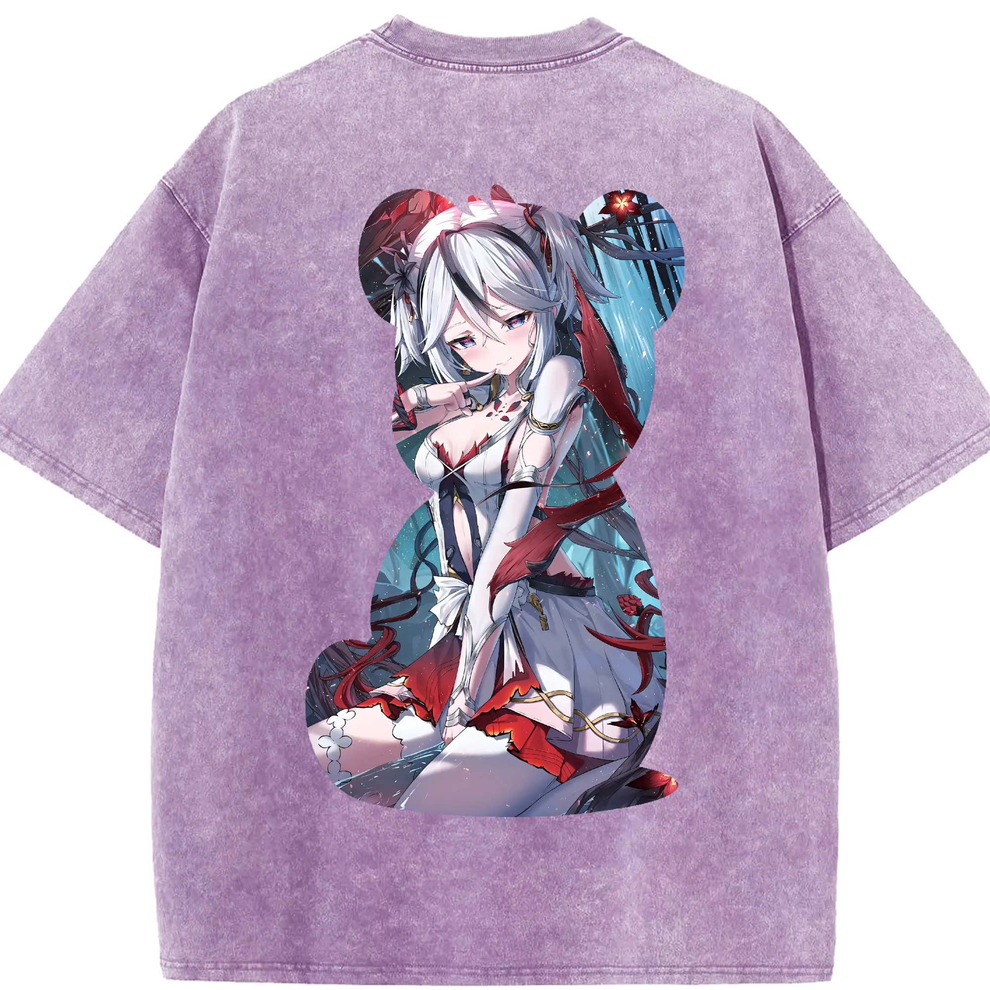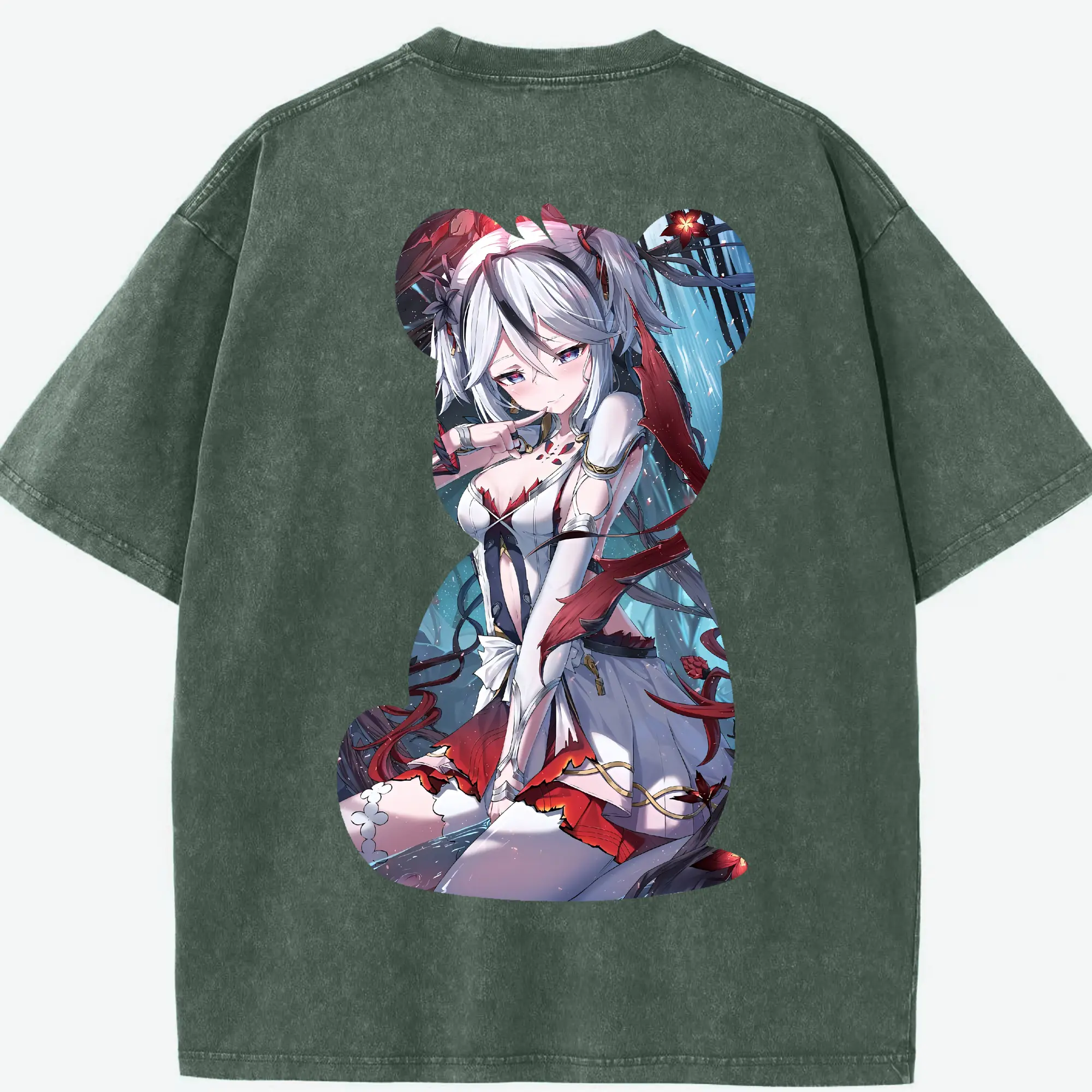 鳴潮 グッズ カンタレラ - 綿100% ヴィンテージ風 半袖Tシャツ ・ 背面プリント ・ 柔らか肌触り ・ 通気性 快適 ・ スポーツ カジュアル 外出用