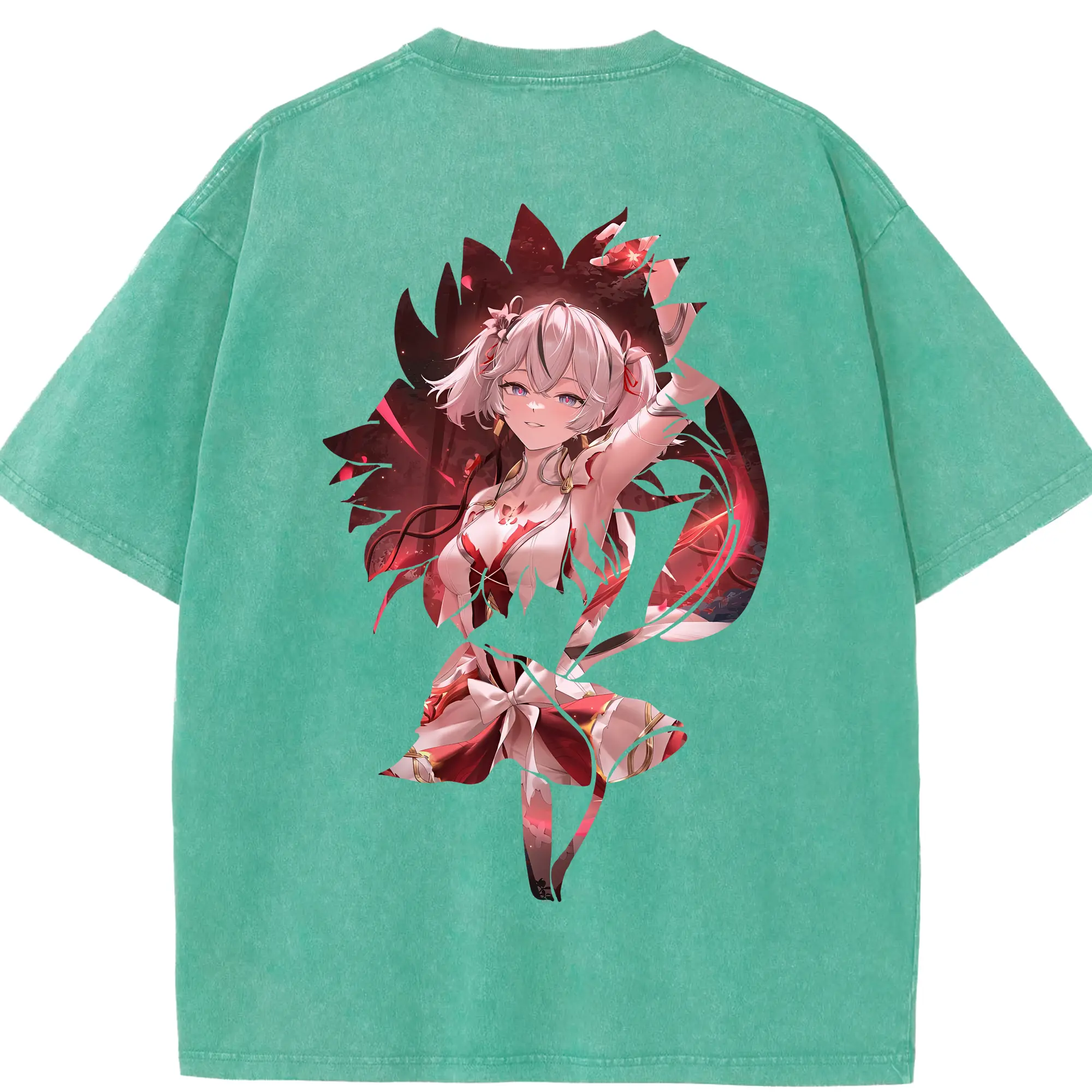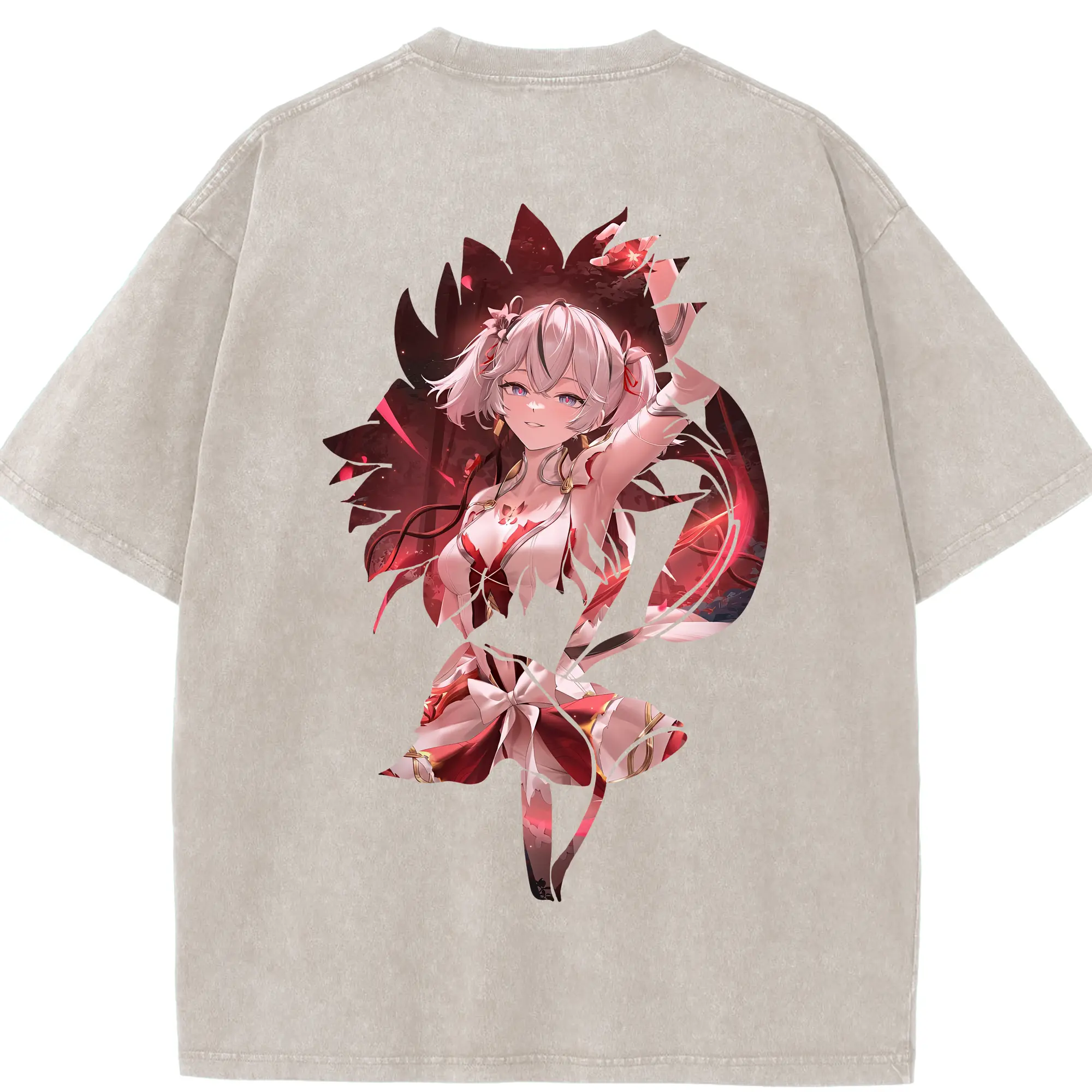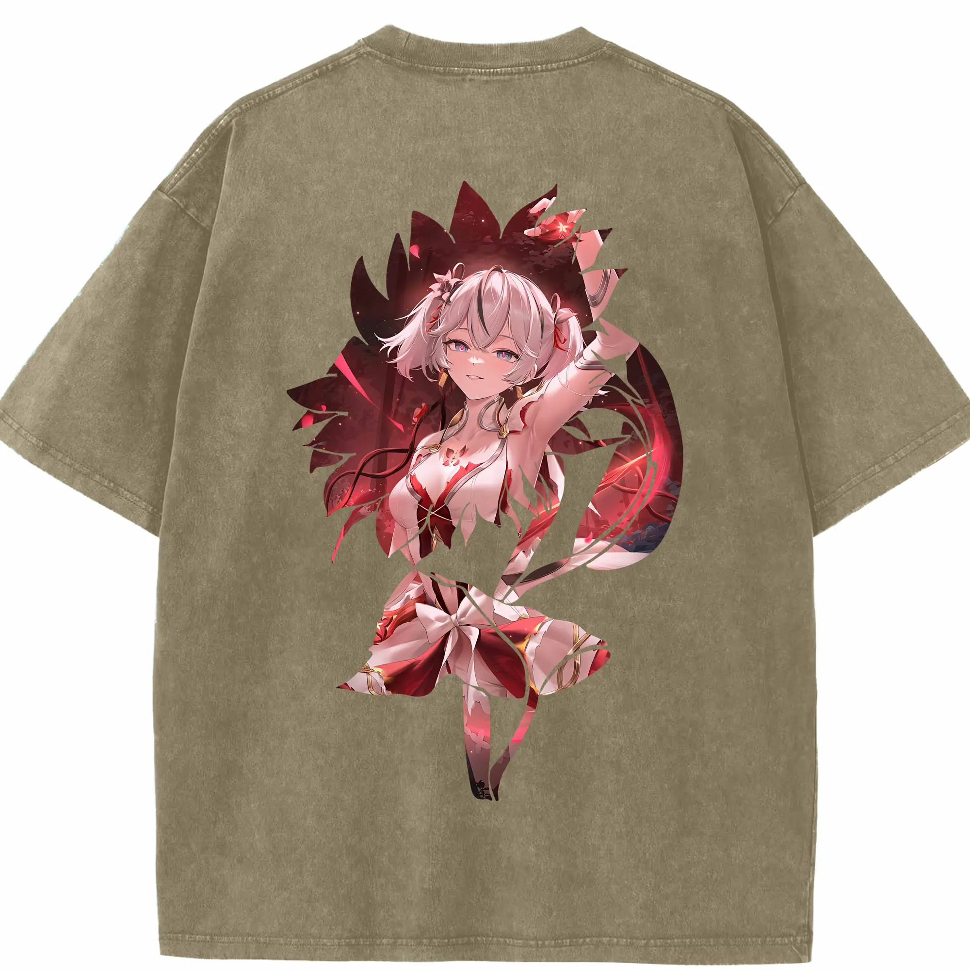鳴潮 グッズ ツバキ - 綿100% ヴィンテージ風 半袖Tシャツ ・ フロントプリント ・ 柔らか肌触り ・ 通気性 快適 ・ スポーツ カジュアル 外出用