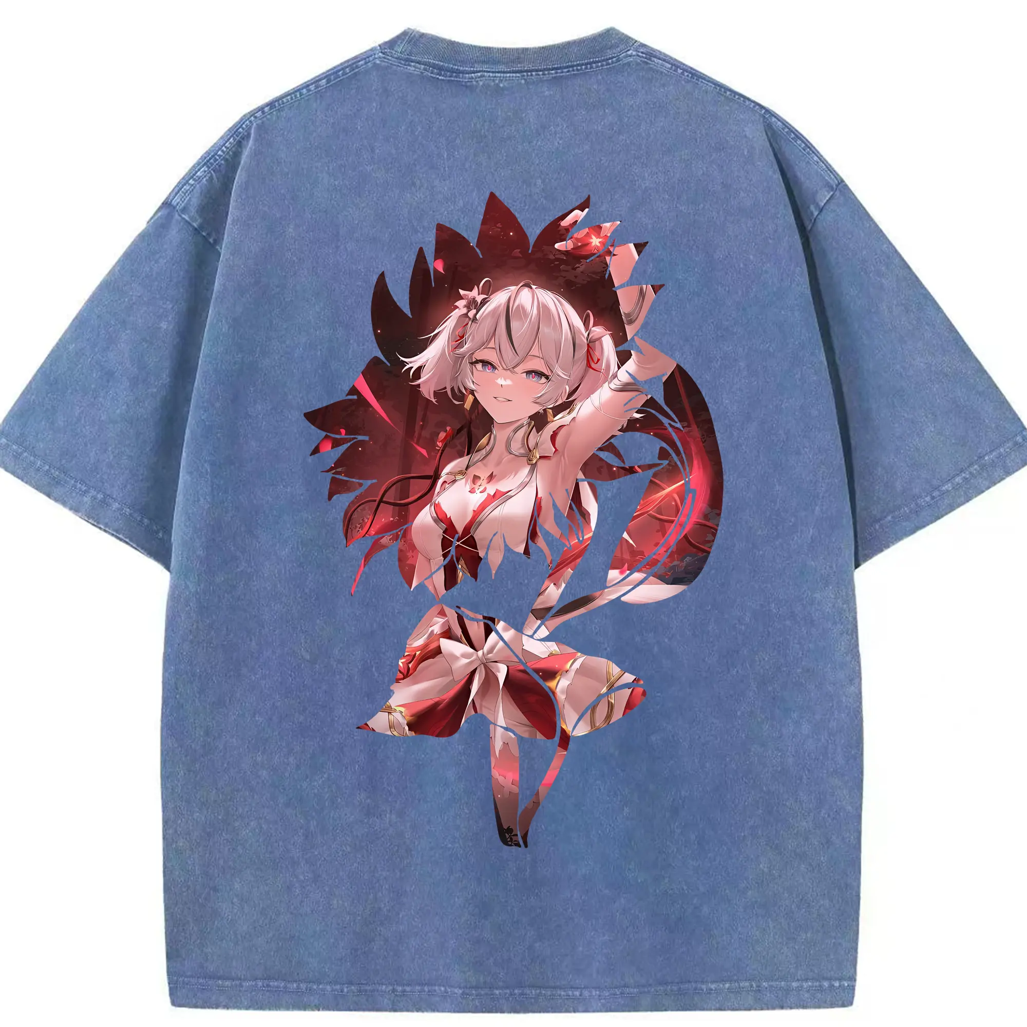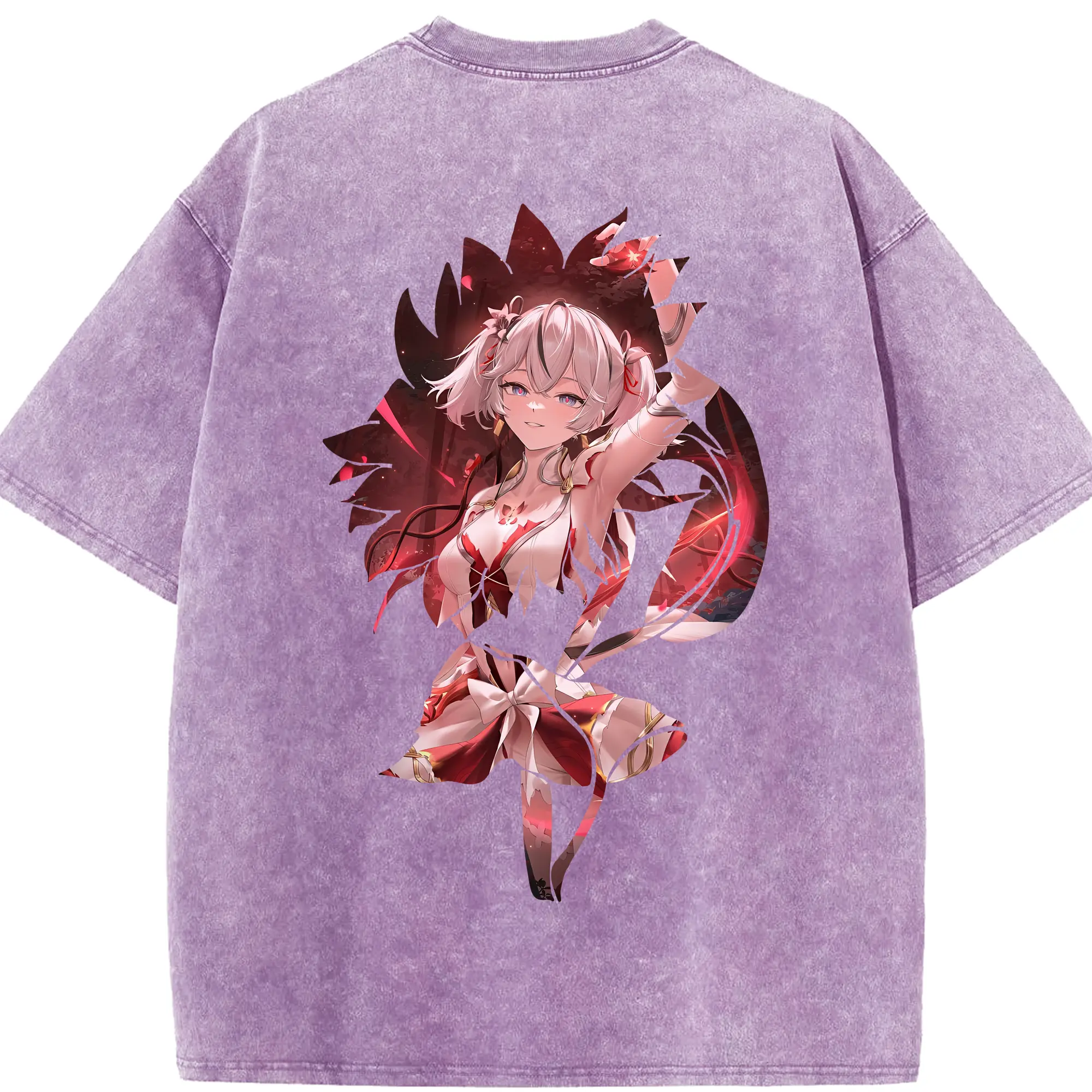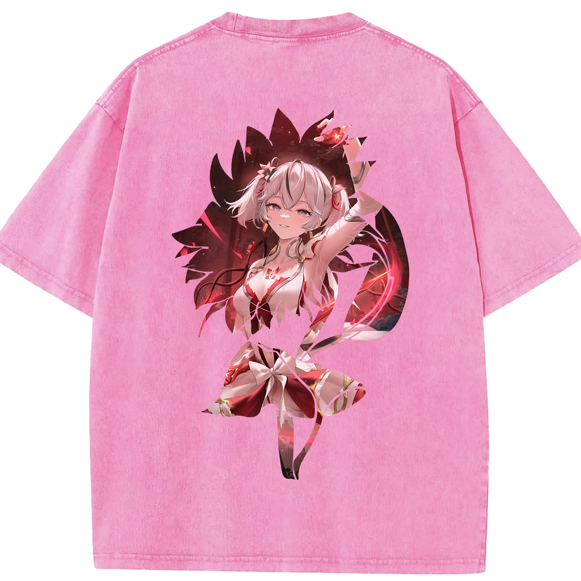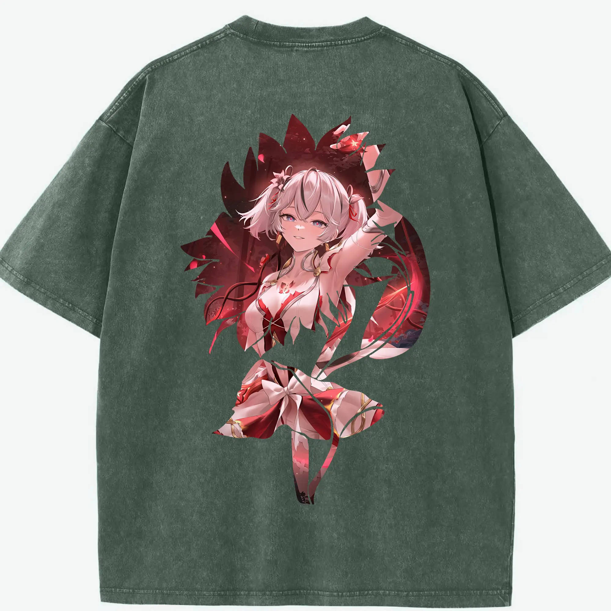 鳴潮 グッズ ツバキ - 綿100% ヴィンテージ風 半袖Tシャツ ・ フロントプリント ・ 柔らか肌触り ・ 通気性 快適 ・ スポーツ カジュアル 外出用