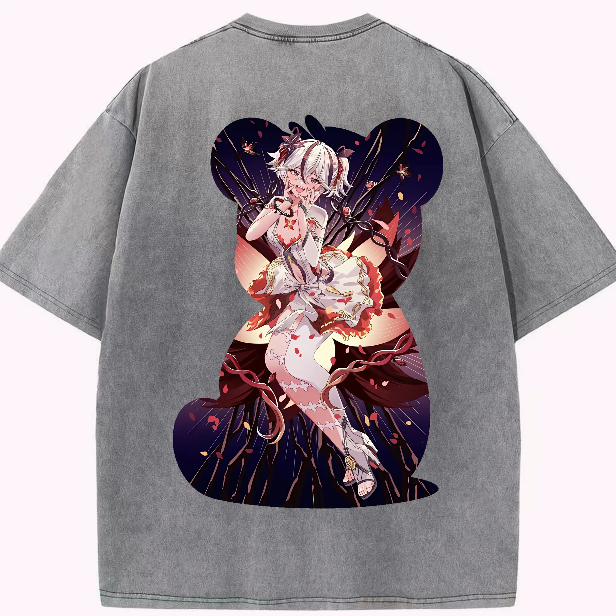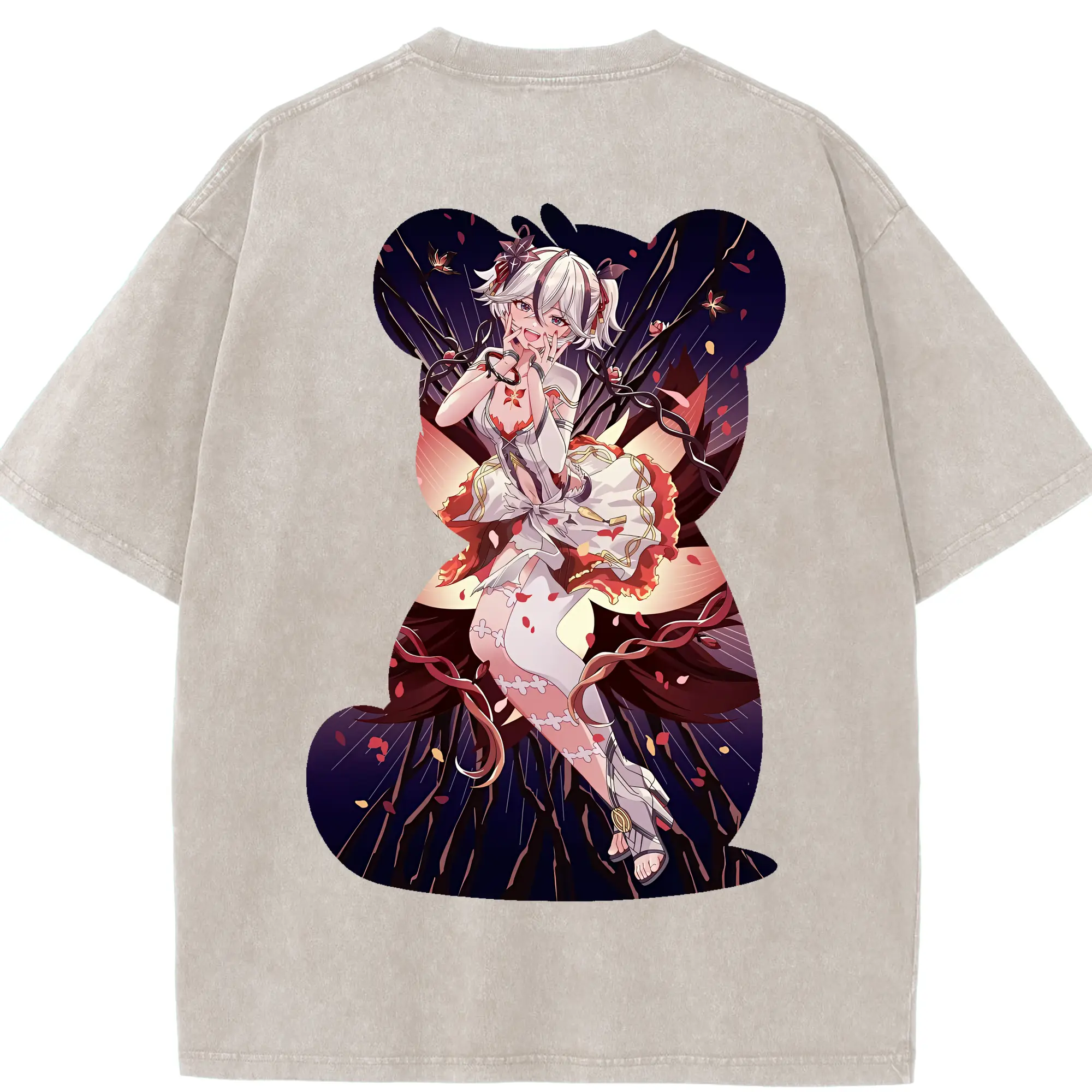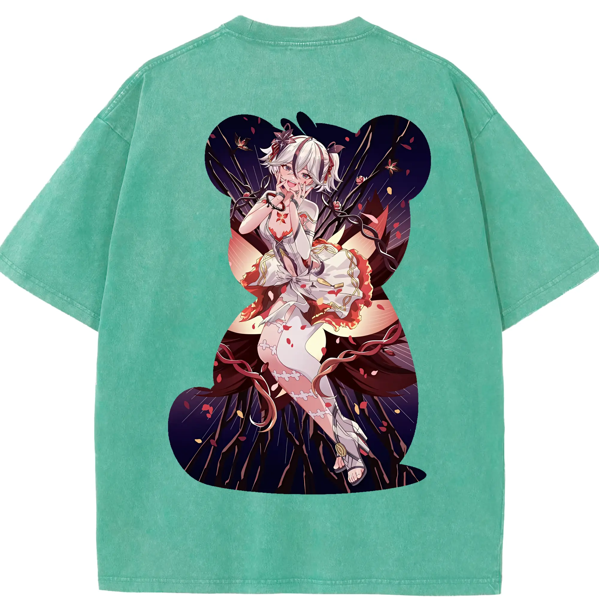 鳴潮 グッズ ツバキ - 綿100% ヴィンテージ風 半袖Tシャツ ・ フロントプリント ・ 柔らか肌触り ・ 通気性 快適 ・ スポーツ カジュアル 外出用