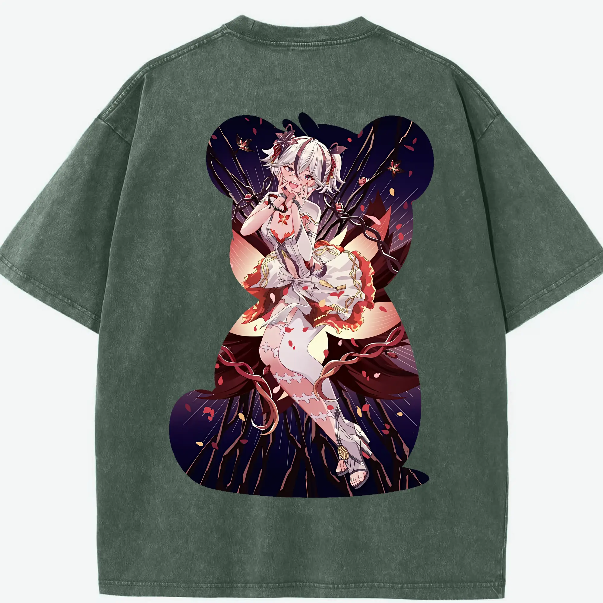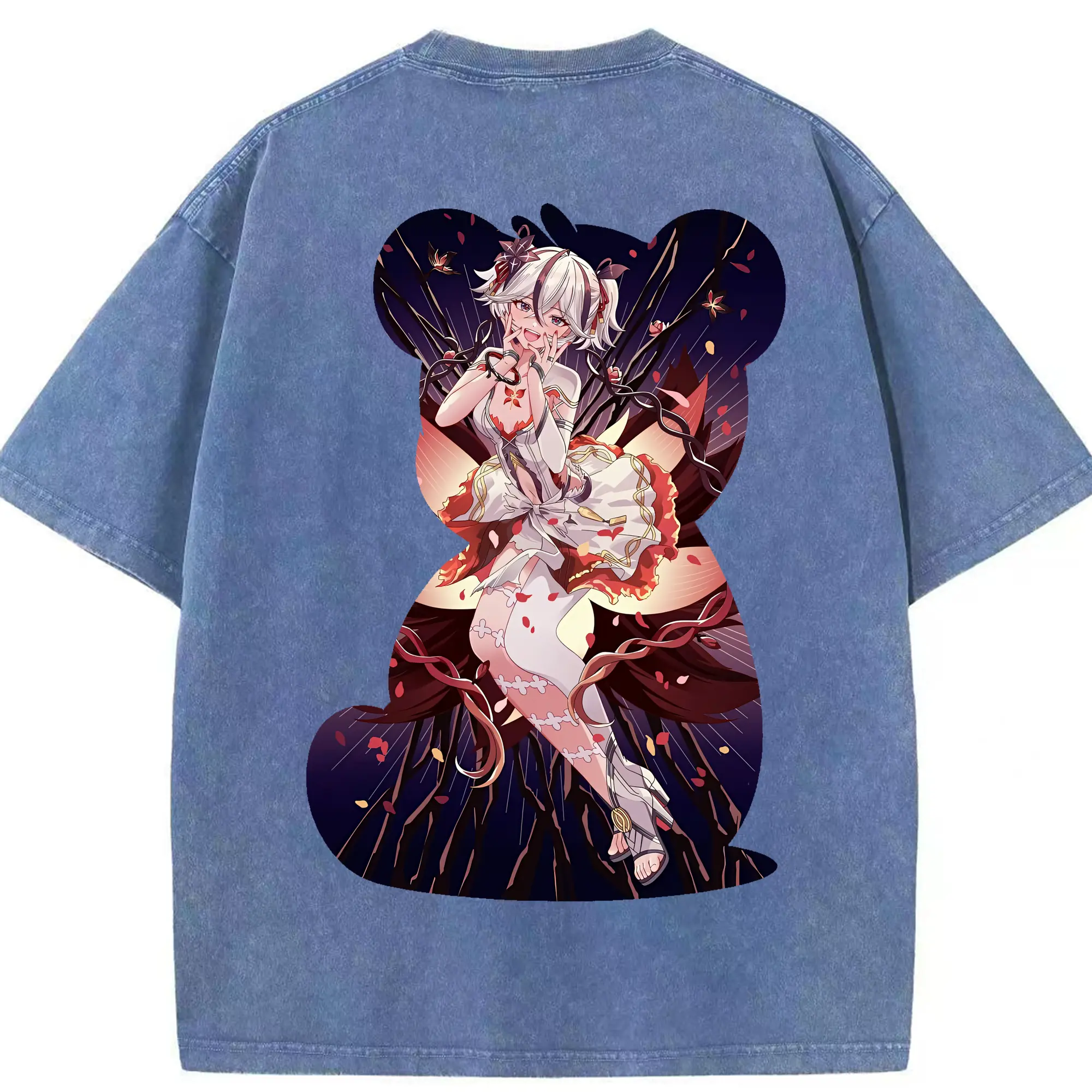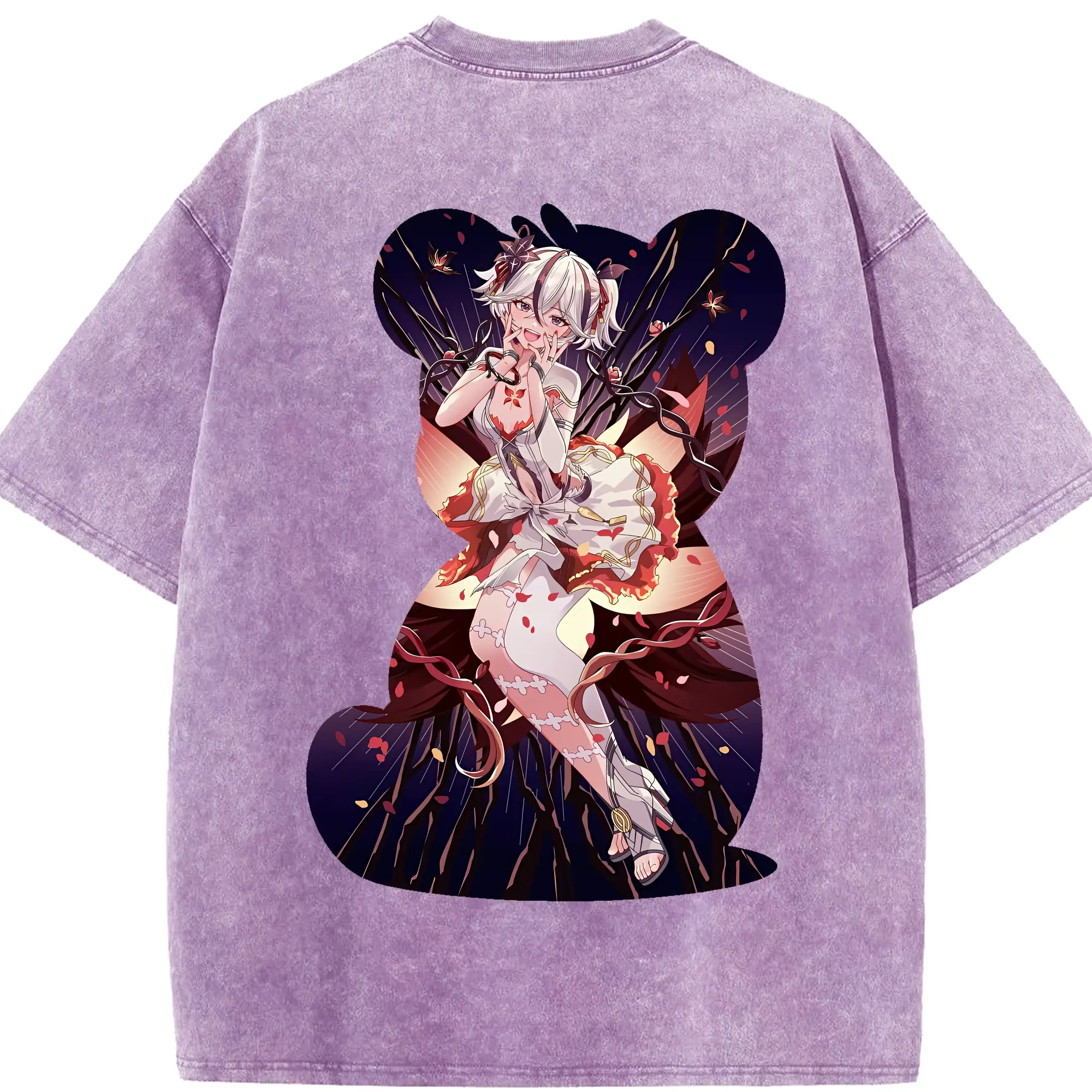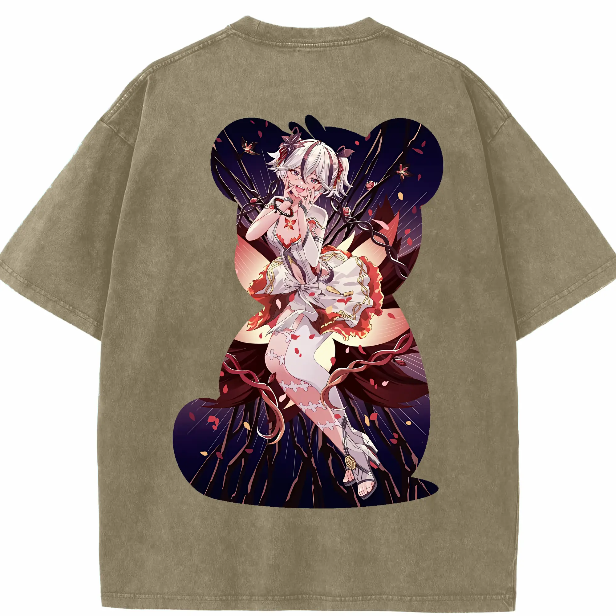 鳴潮 グッズ ツバキ - 綿100% ヴィンテージ風 半袖Tシャツ ・ フロントプリント ・ 柔らか肌触り ・ 通気性 快適 ・ スポーツ カジュアル 外出用
