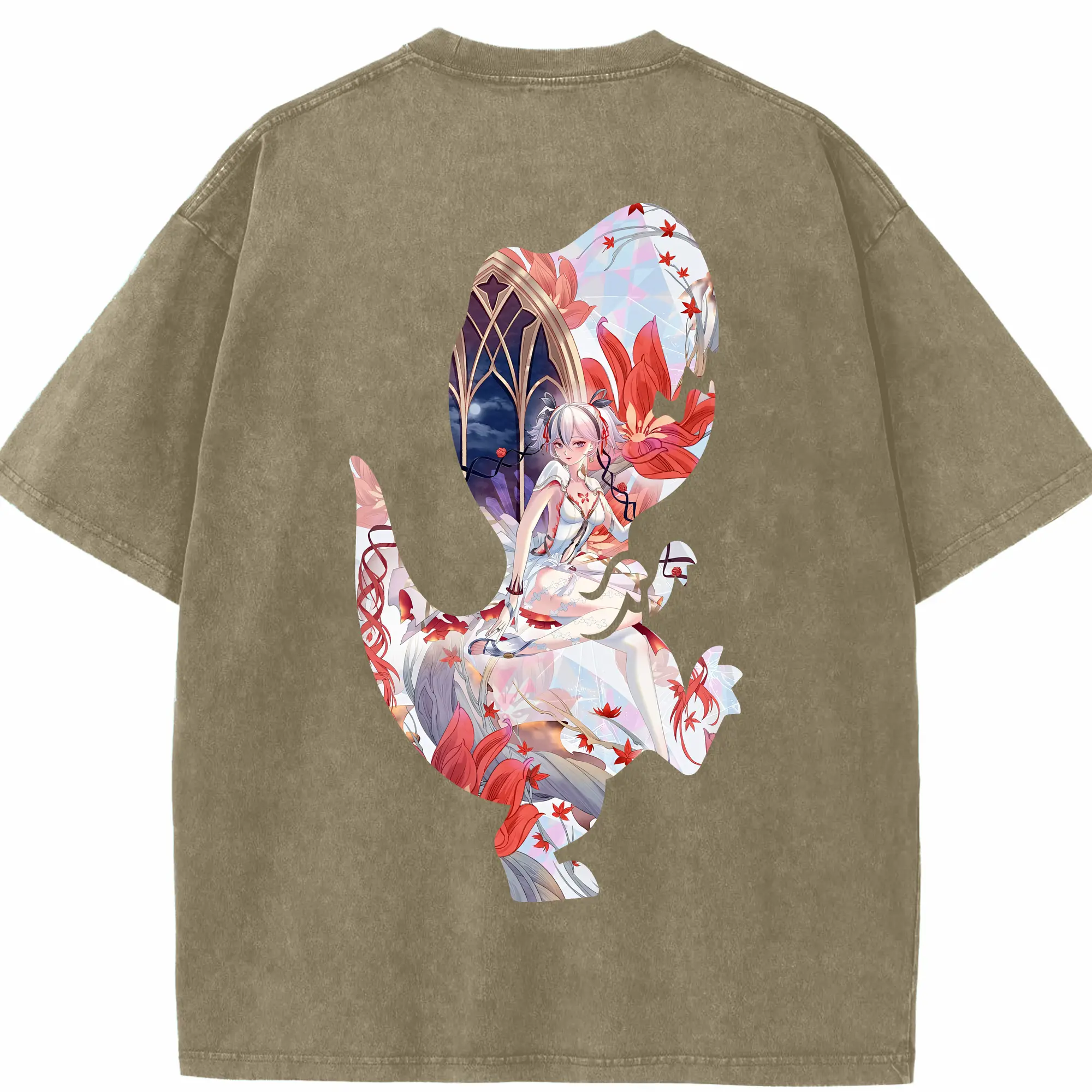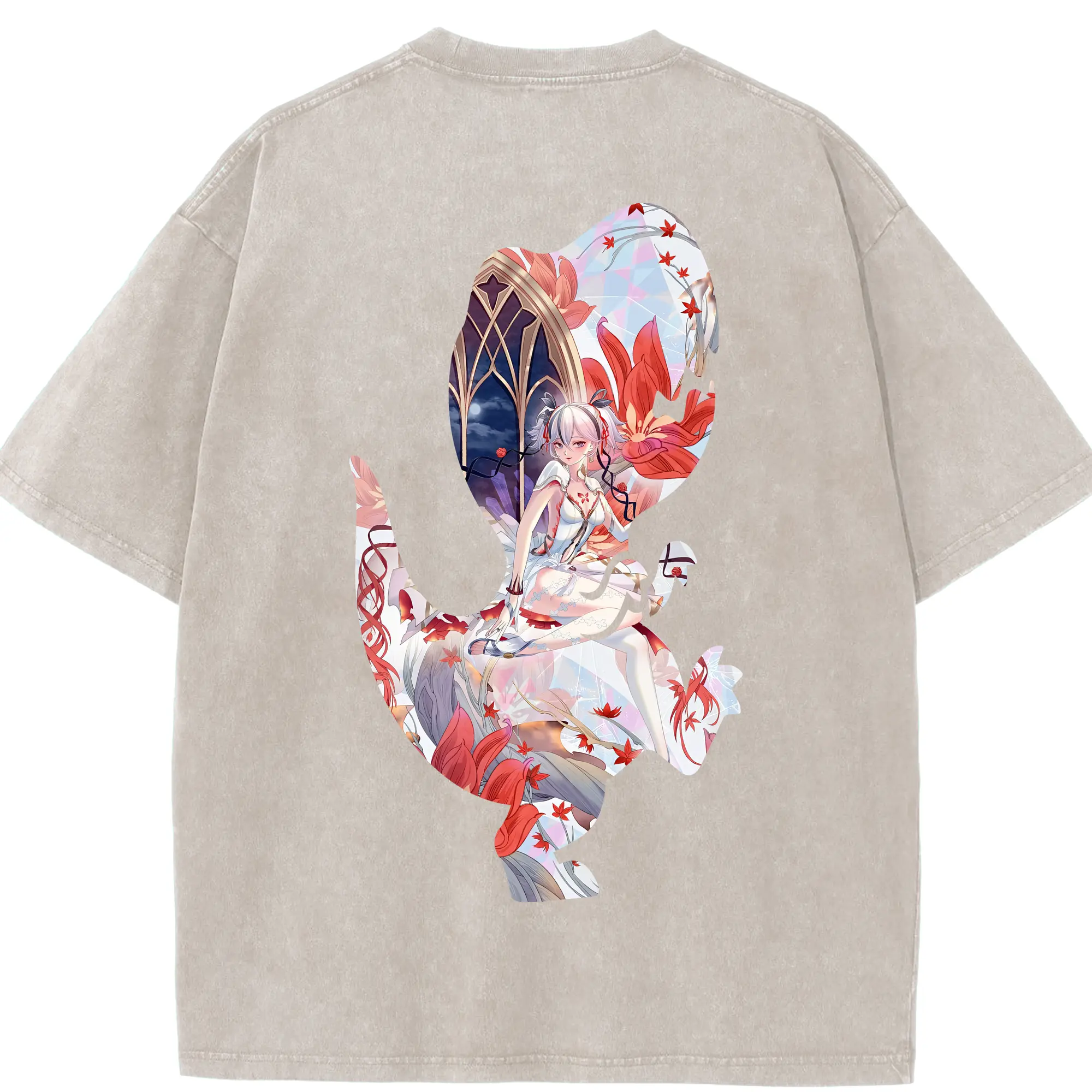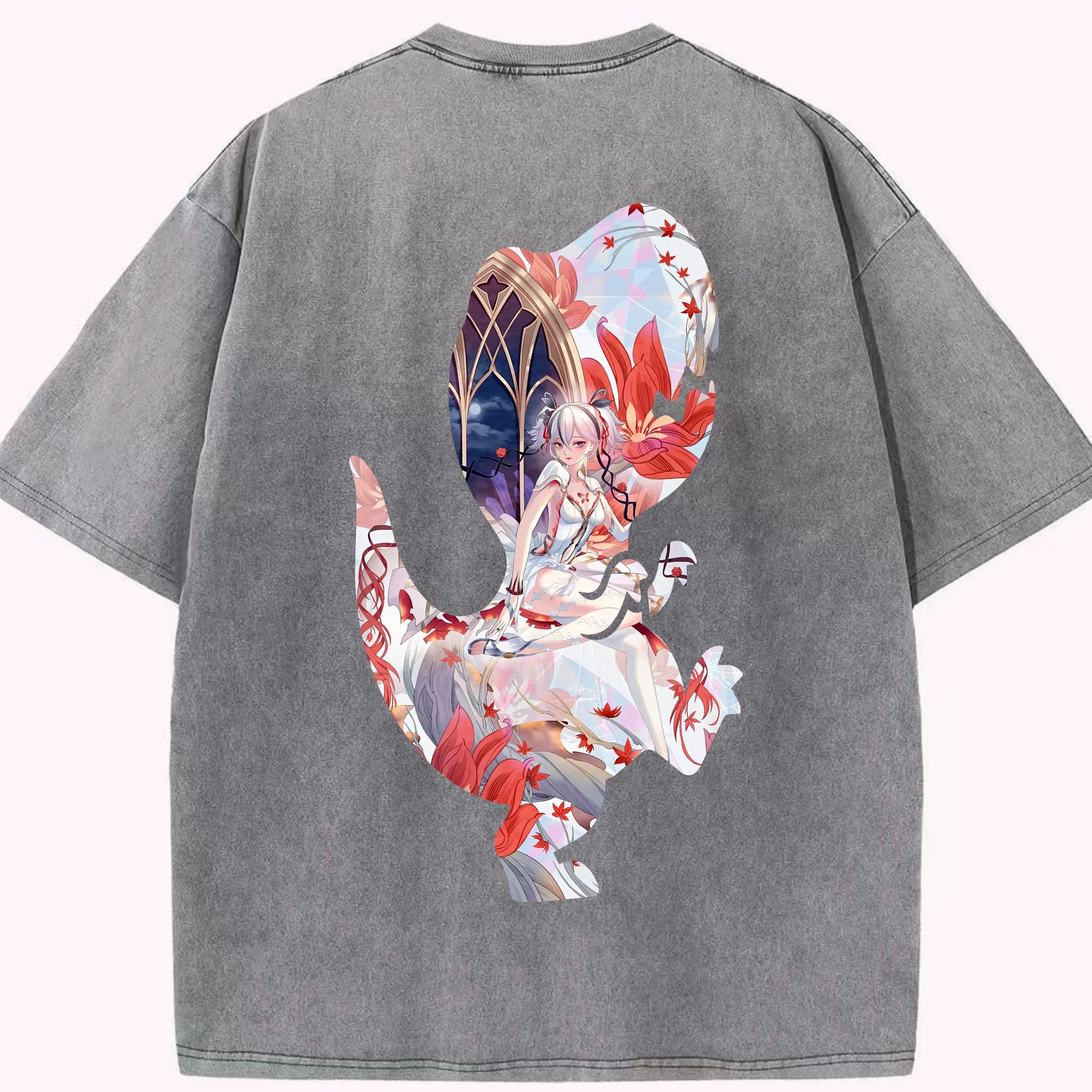 鳴潮 グッズ ツバキ - 綿100% ヴィンテージ風 半袖Tシャツ ・ フロントプリント ・ 柔らか肌触り ・ 通気性 快適 ・ スポーツ カジュアル 外出用