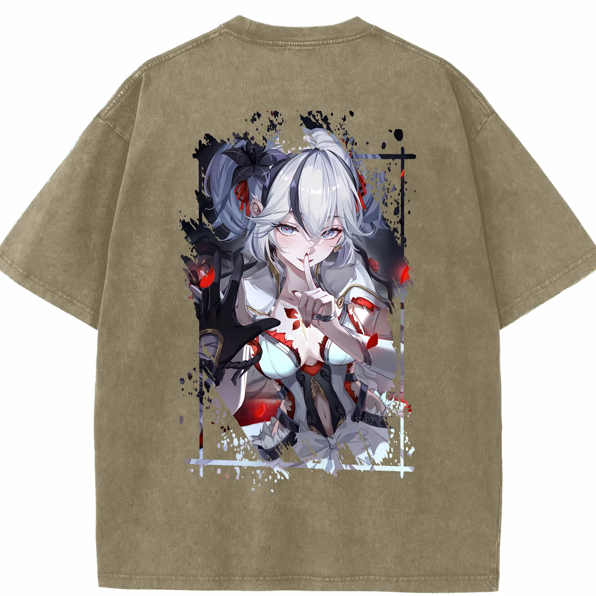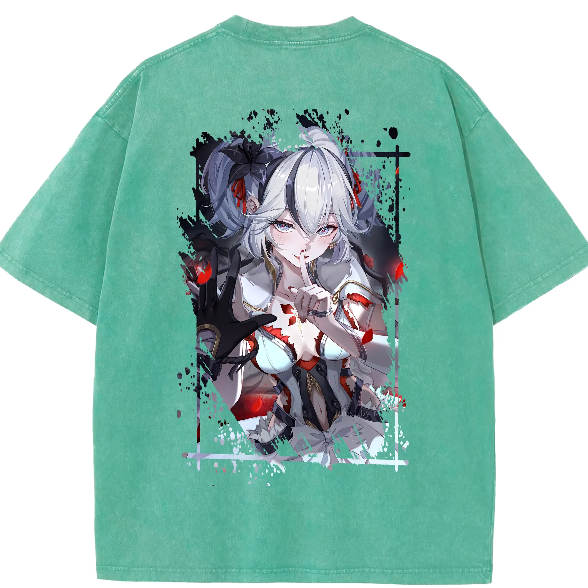 鳴潮 グッズ ツバキ - 綿100% ヴィンテージ風 半袖Tシャツ ・ フロントプリント ・ 柔らか肌触り ・ 通気性 快適 ・ スポーツ カジュアル 外出用
