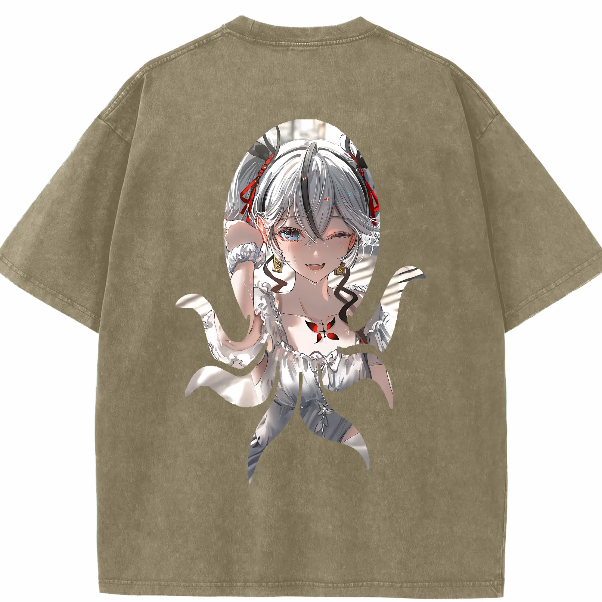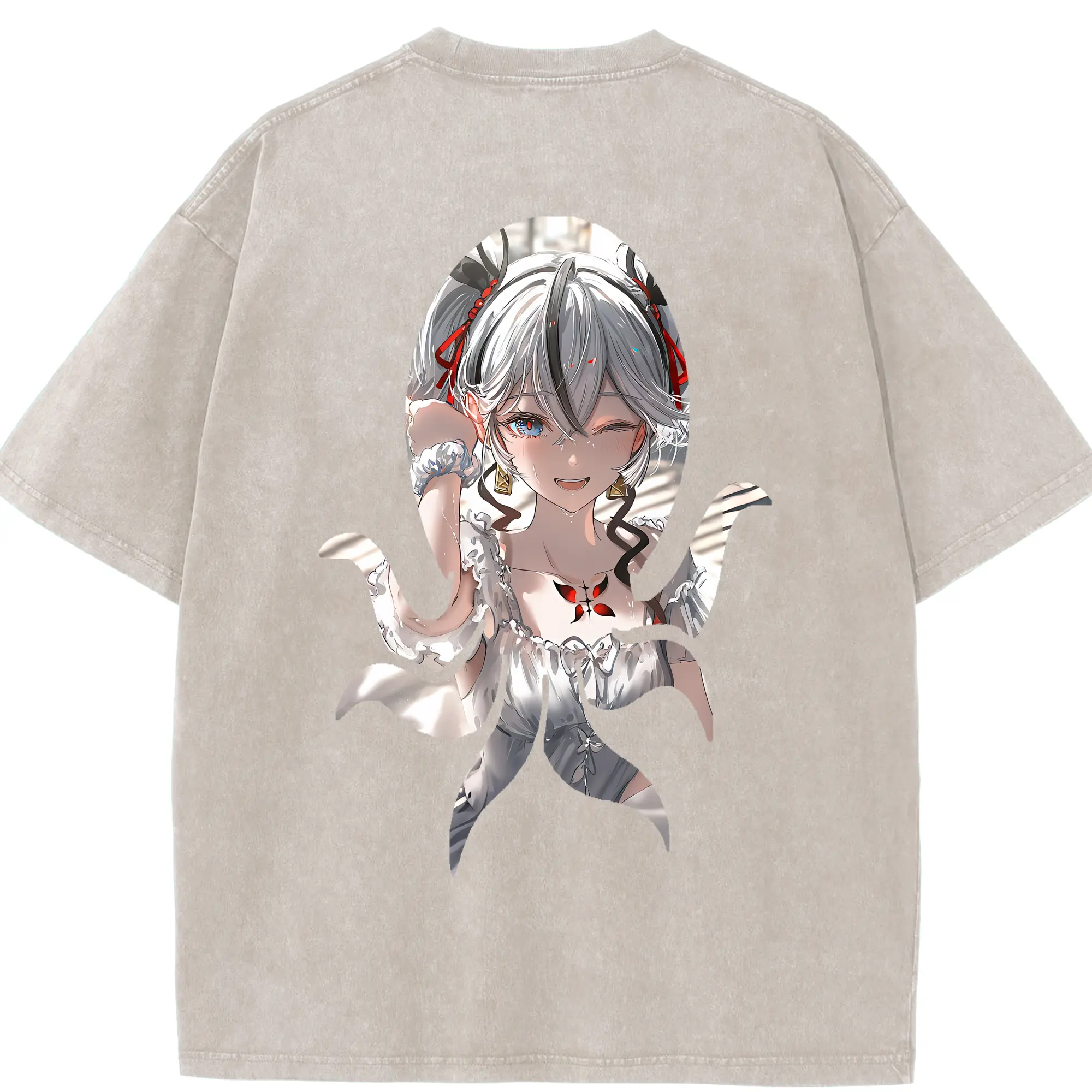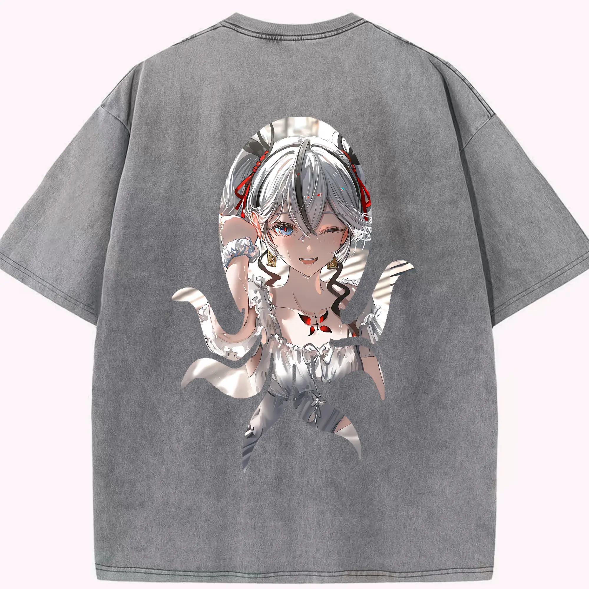 鳴潮 グッズ ツバキ - 綿100% ヴィンテージ風 半袖Tシャツ ・ フロントプリント ・ 柔らか肌触り ・ 通気性 快適 ・ スポーツ カジュアル 外出用