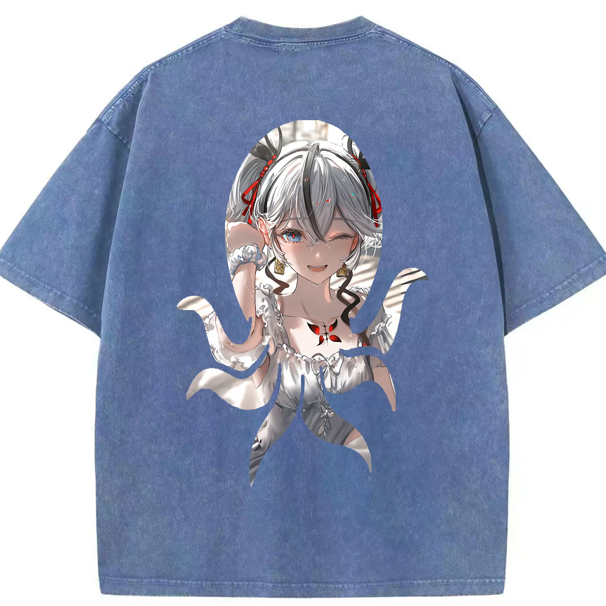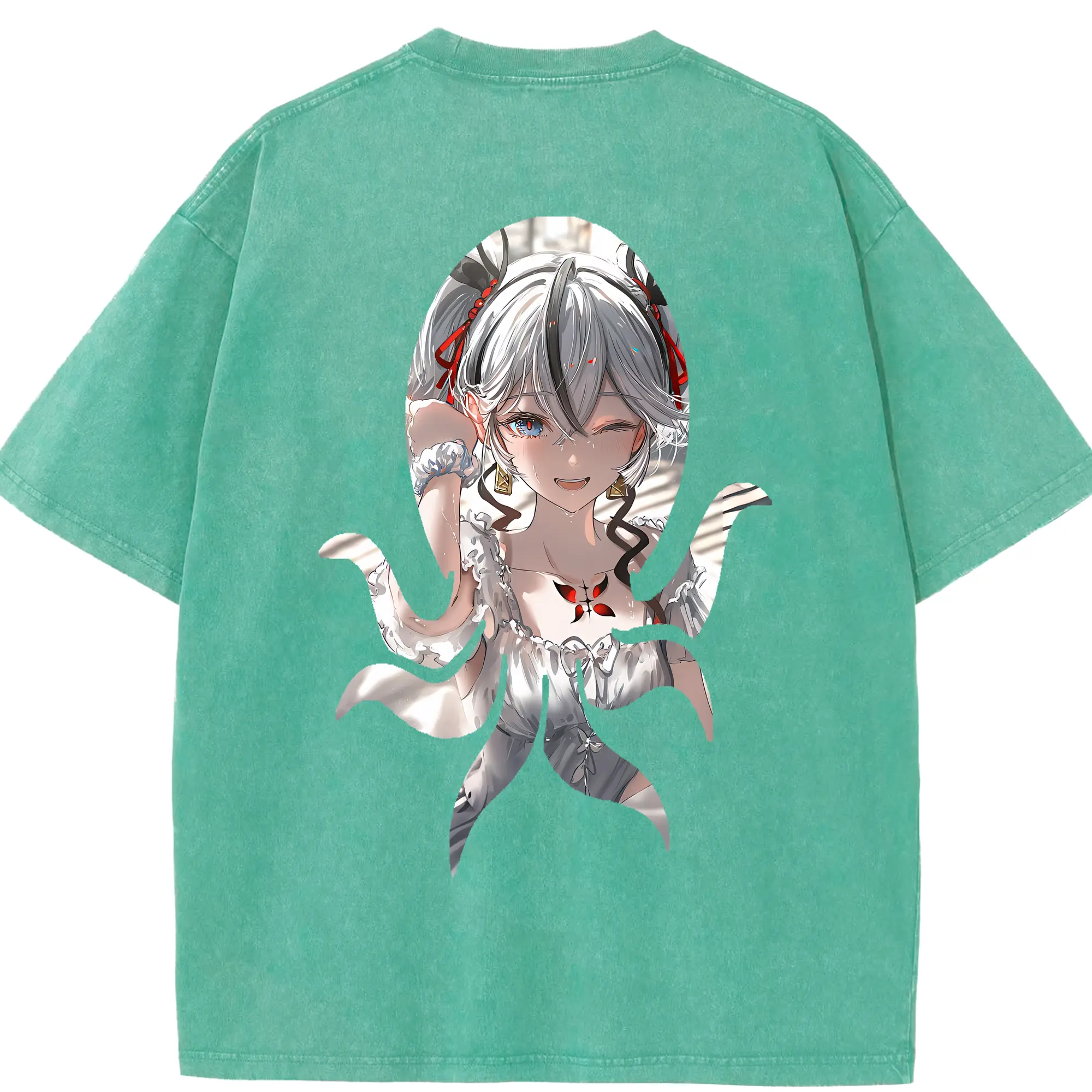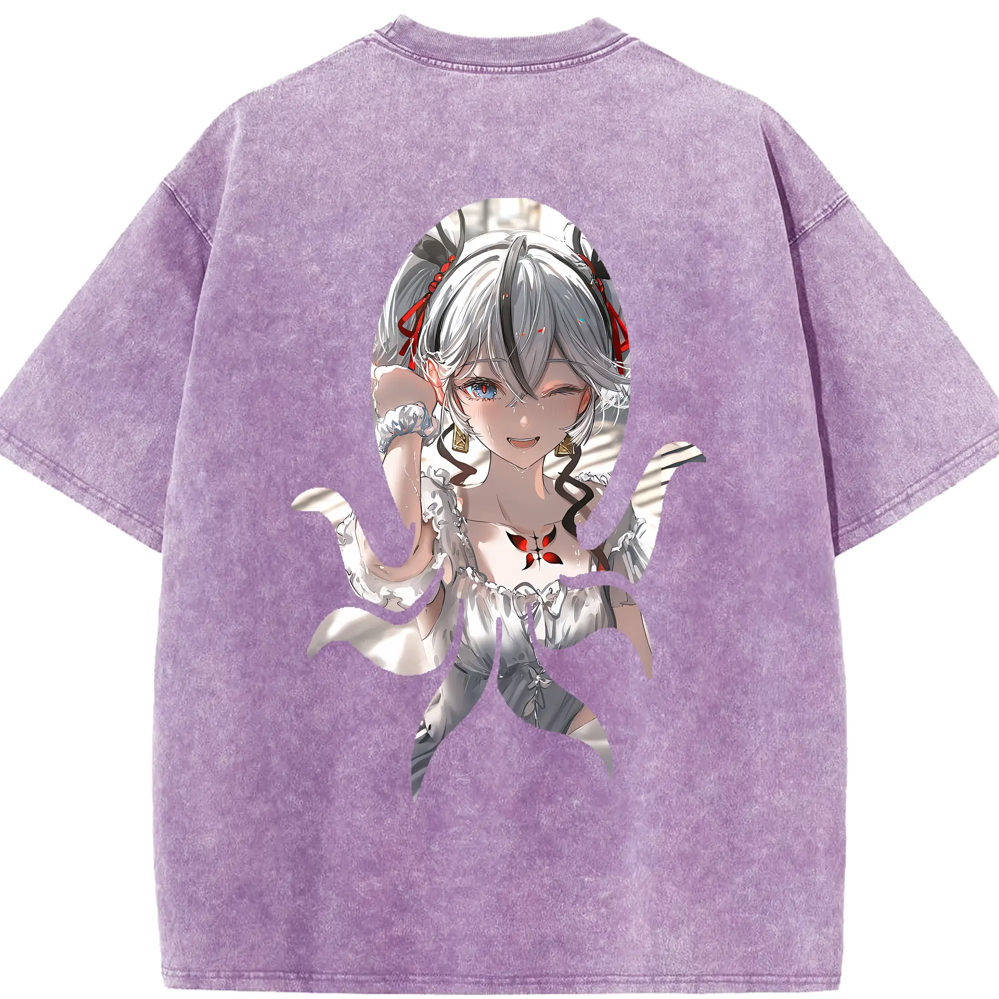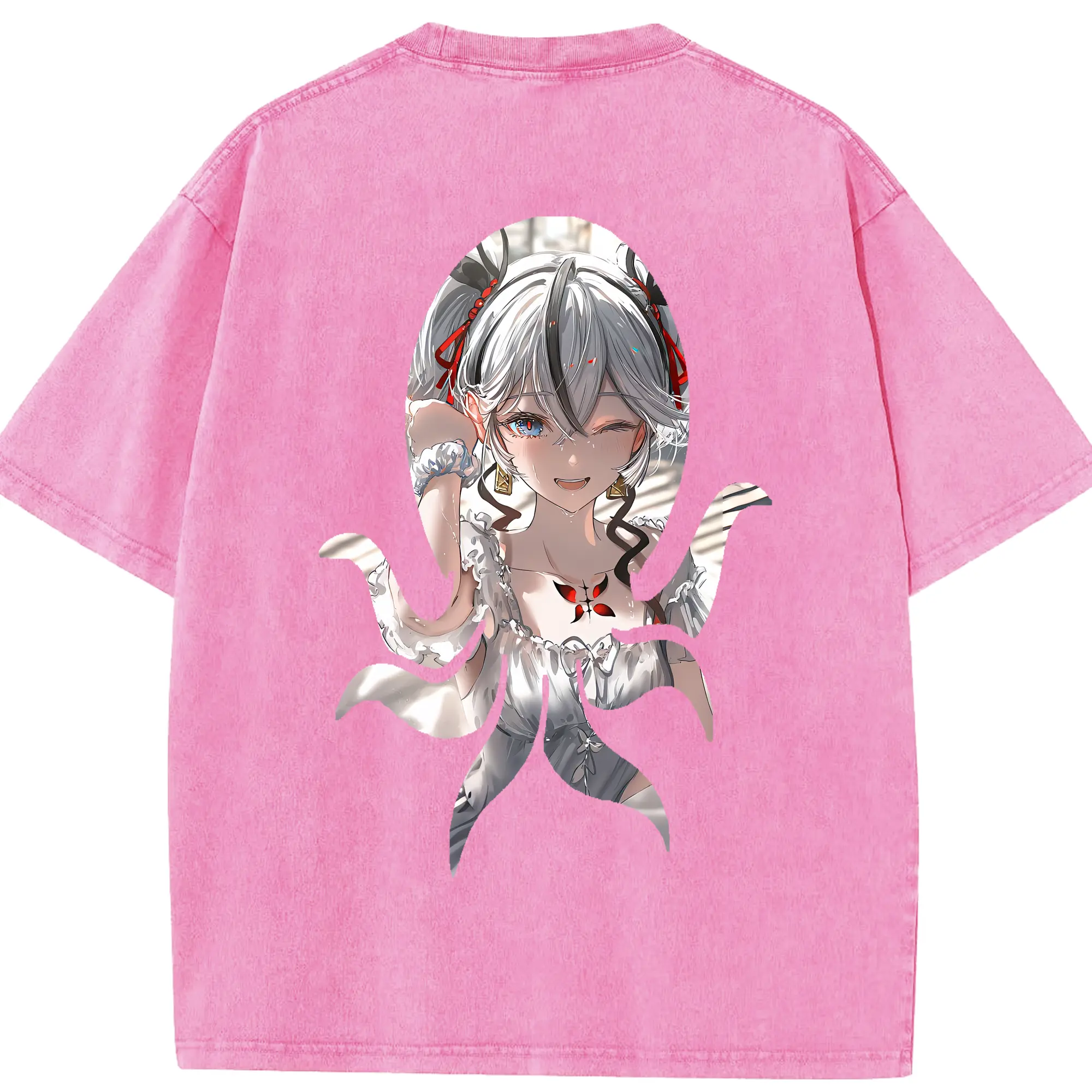 鳴潮 グッズ ツバキ - 綿100% ヴィンテージ風 半袖Tシャツ ・ フロントプリント ・ 柔らか肌触り ・ 通気性 快適 ・ スポーツ カジュアル 外出用