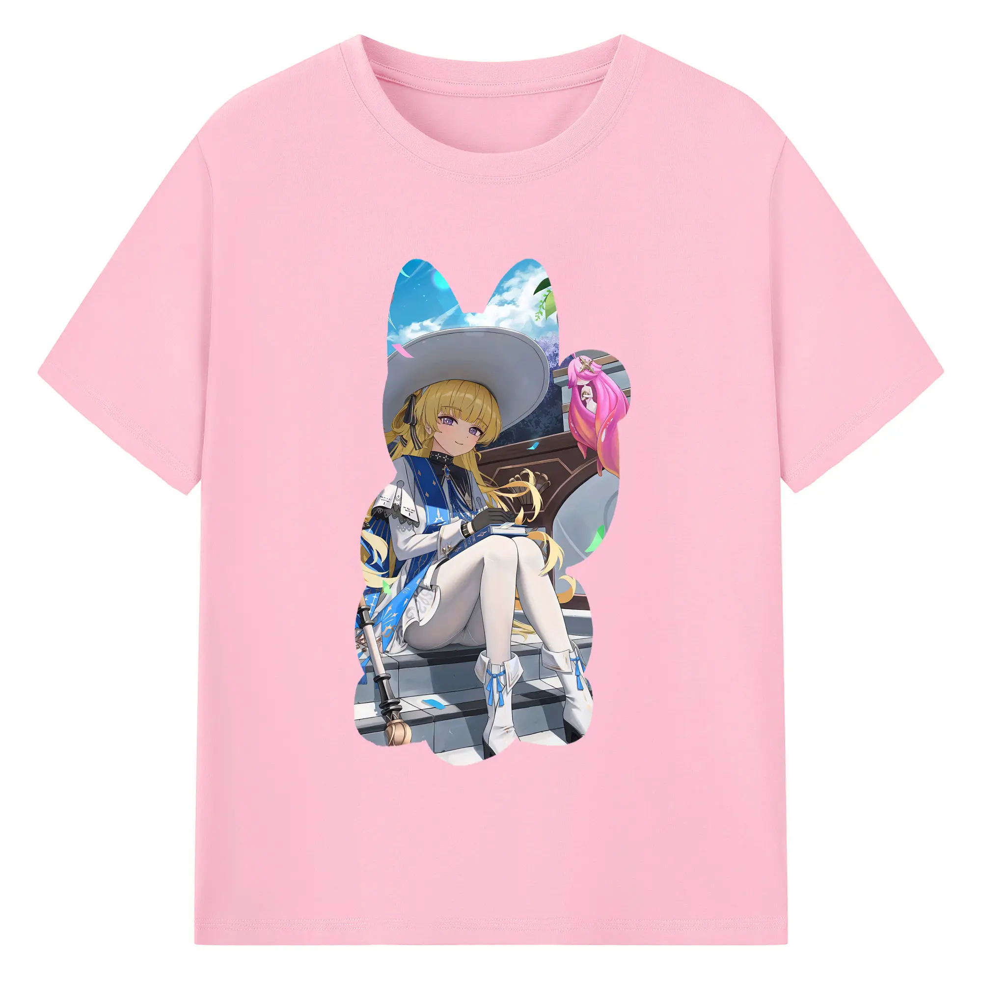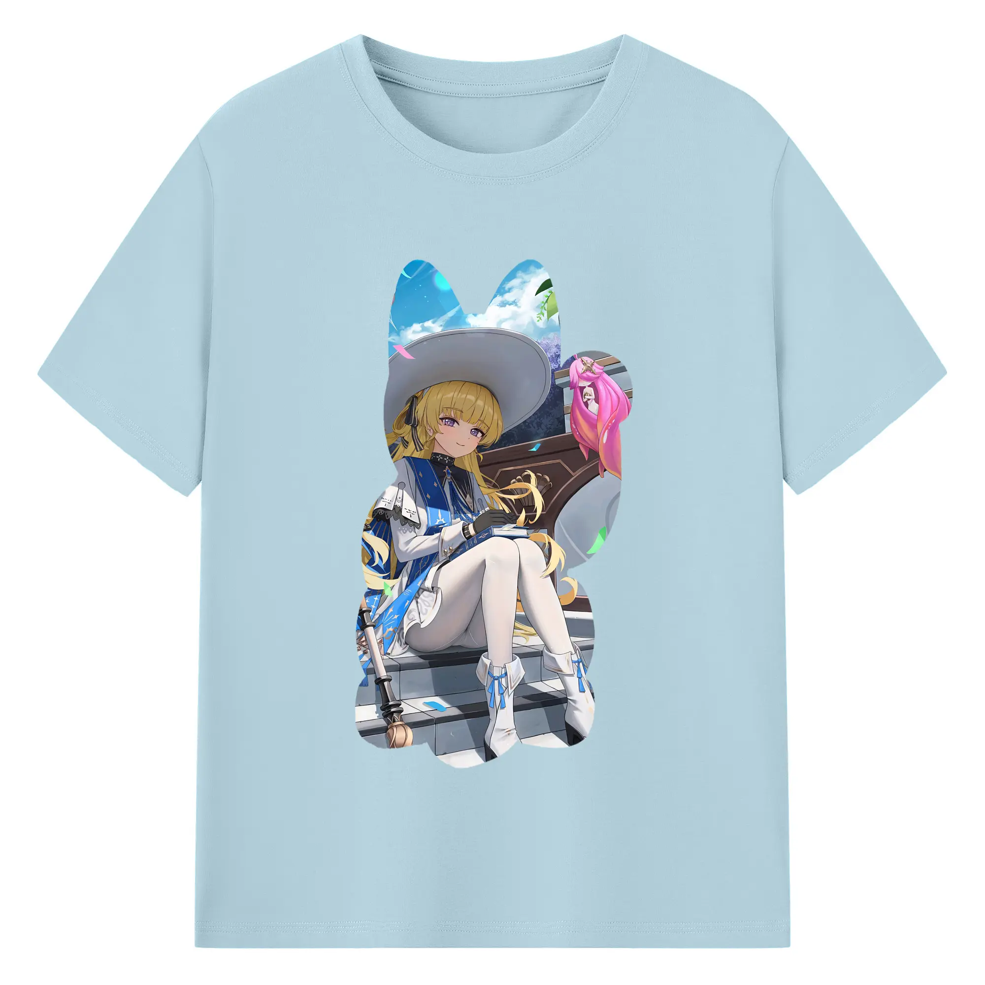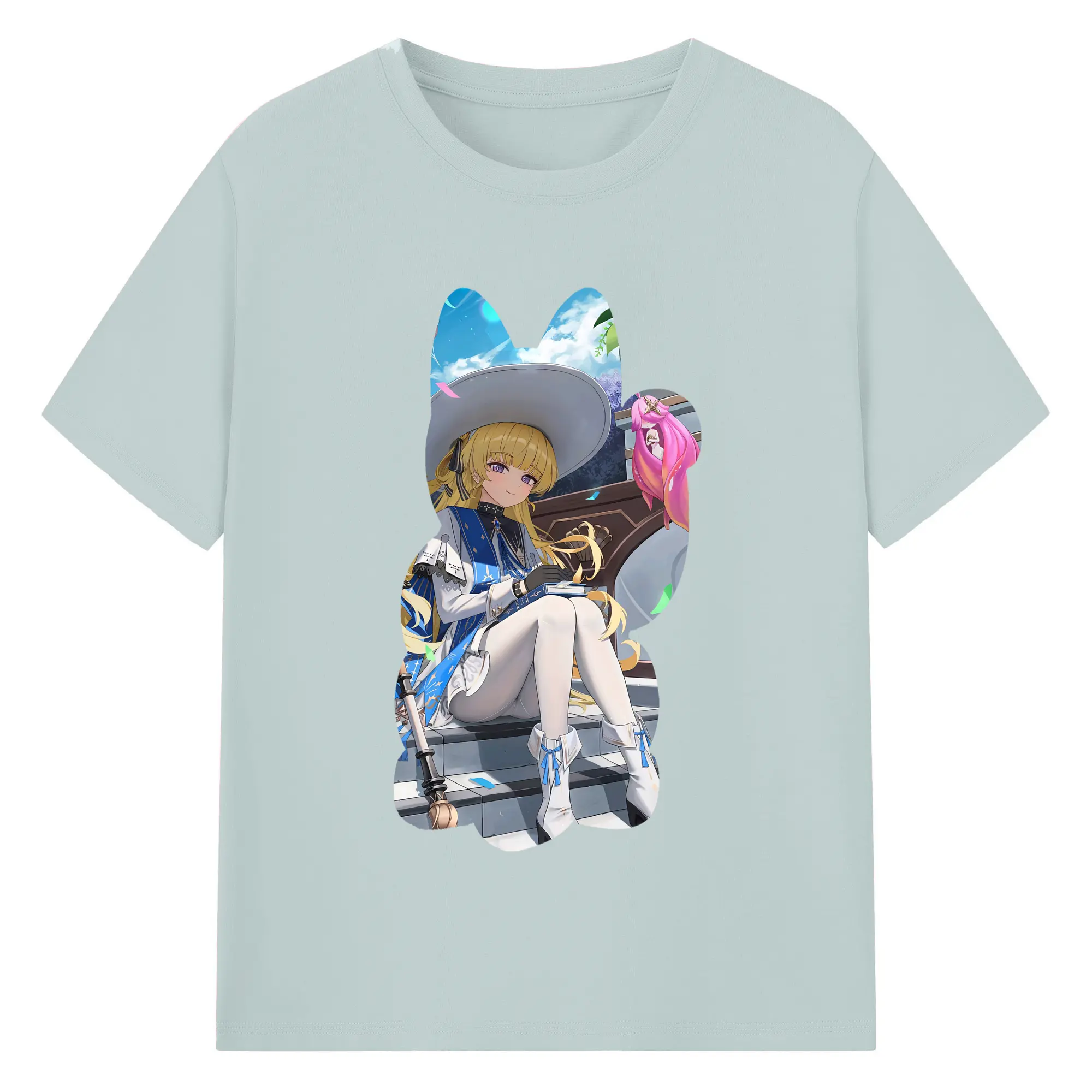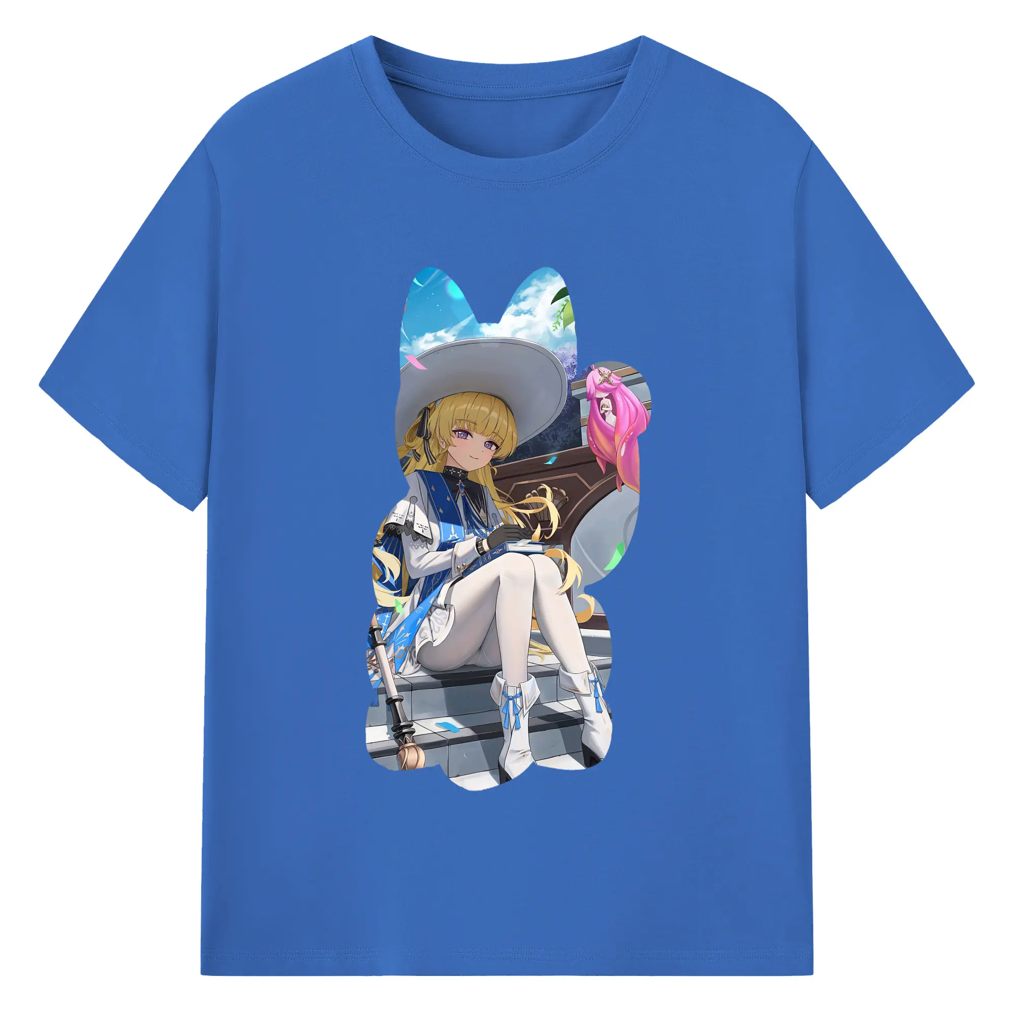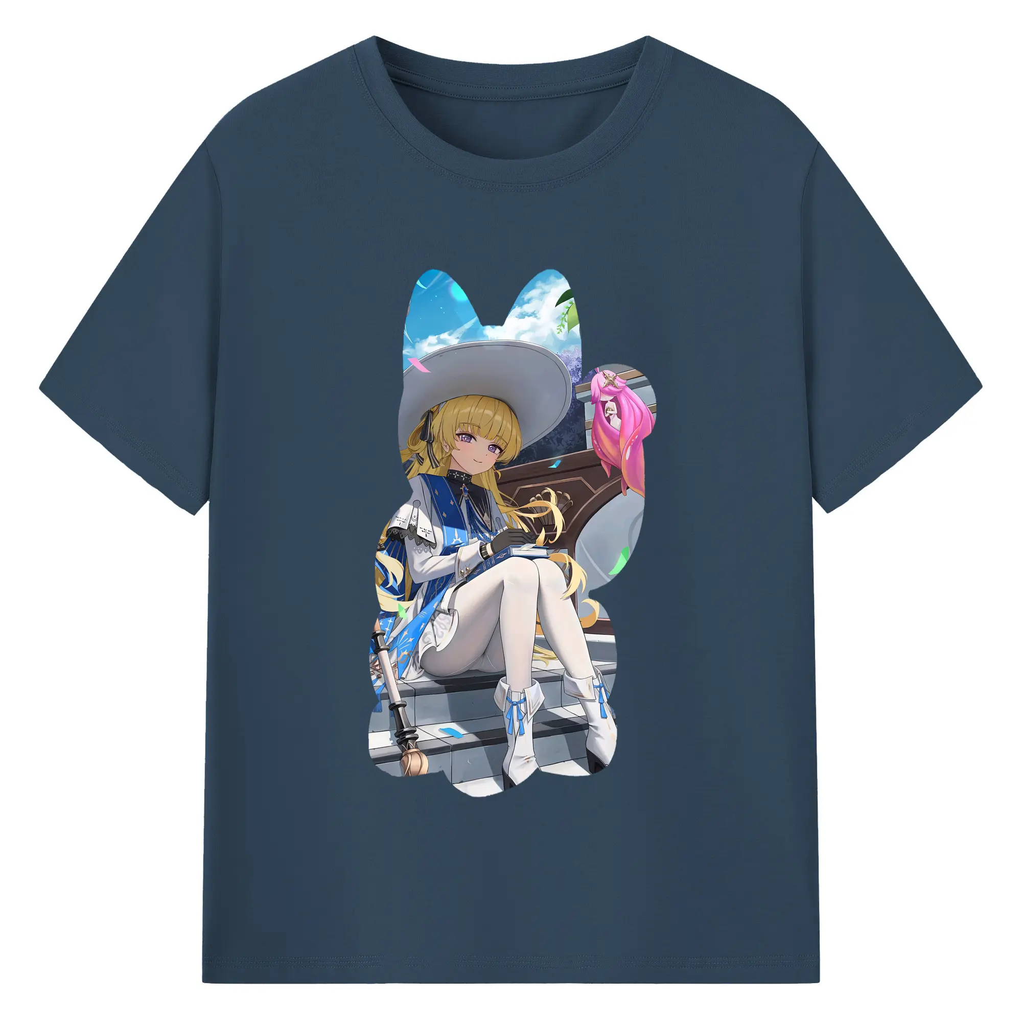 鳴潮 グッズ フィービー - 綿100% 半袖Tシャツ ・ バックプリント ・ 快適 通気性 ・ 日常使い 散歩 スポーツ用