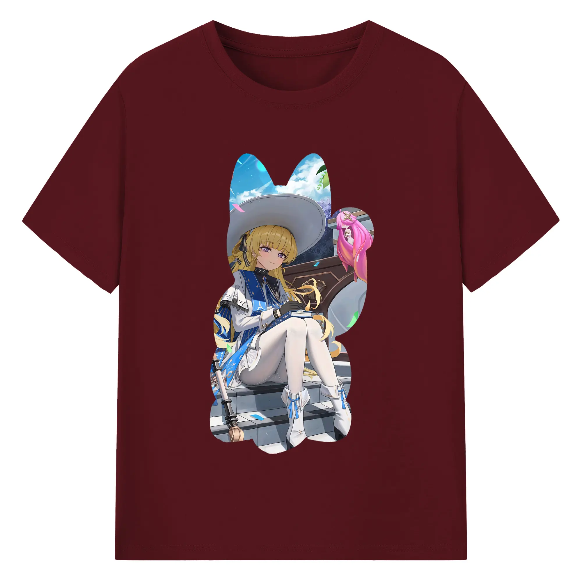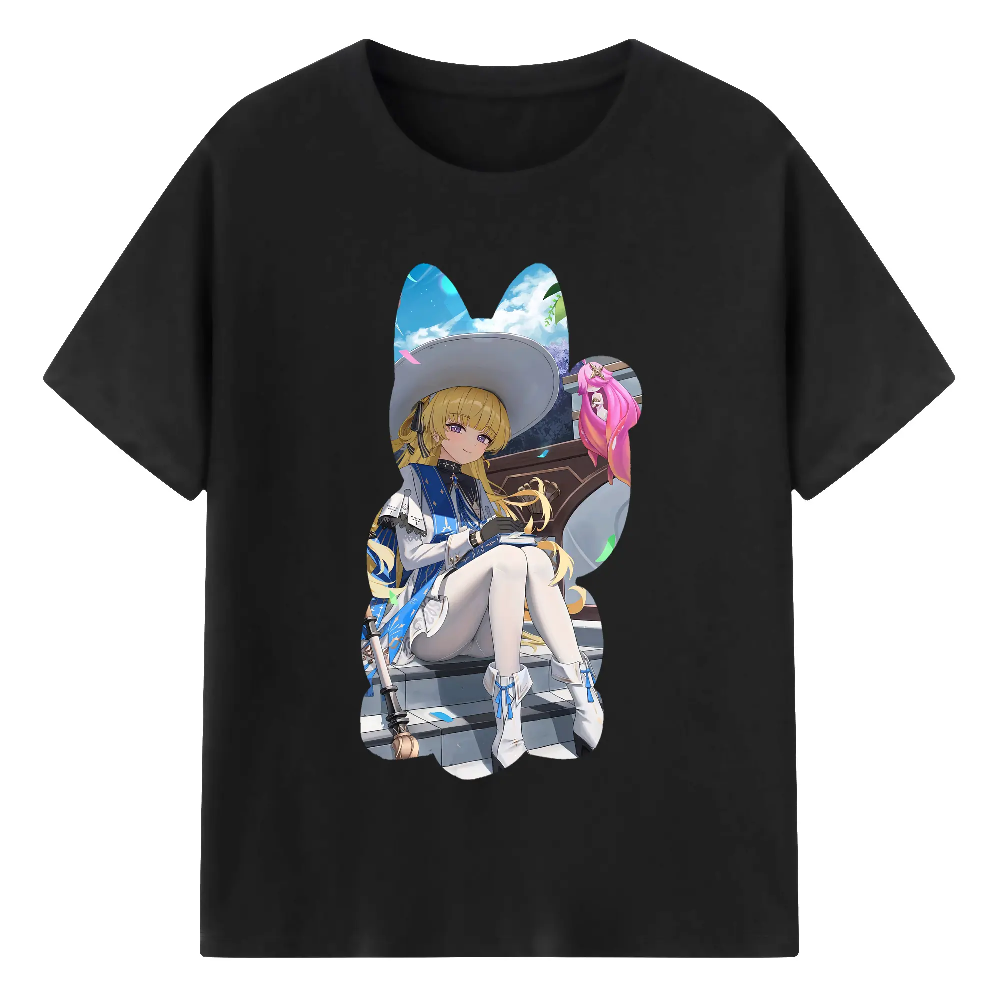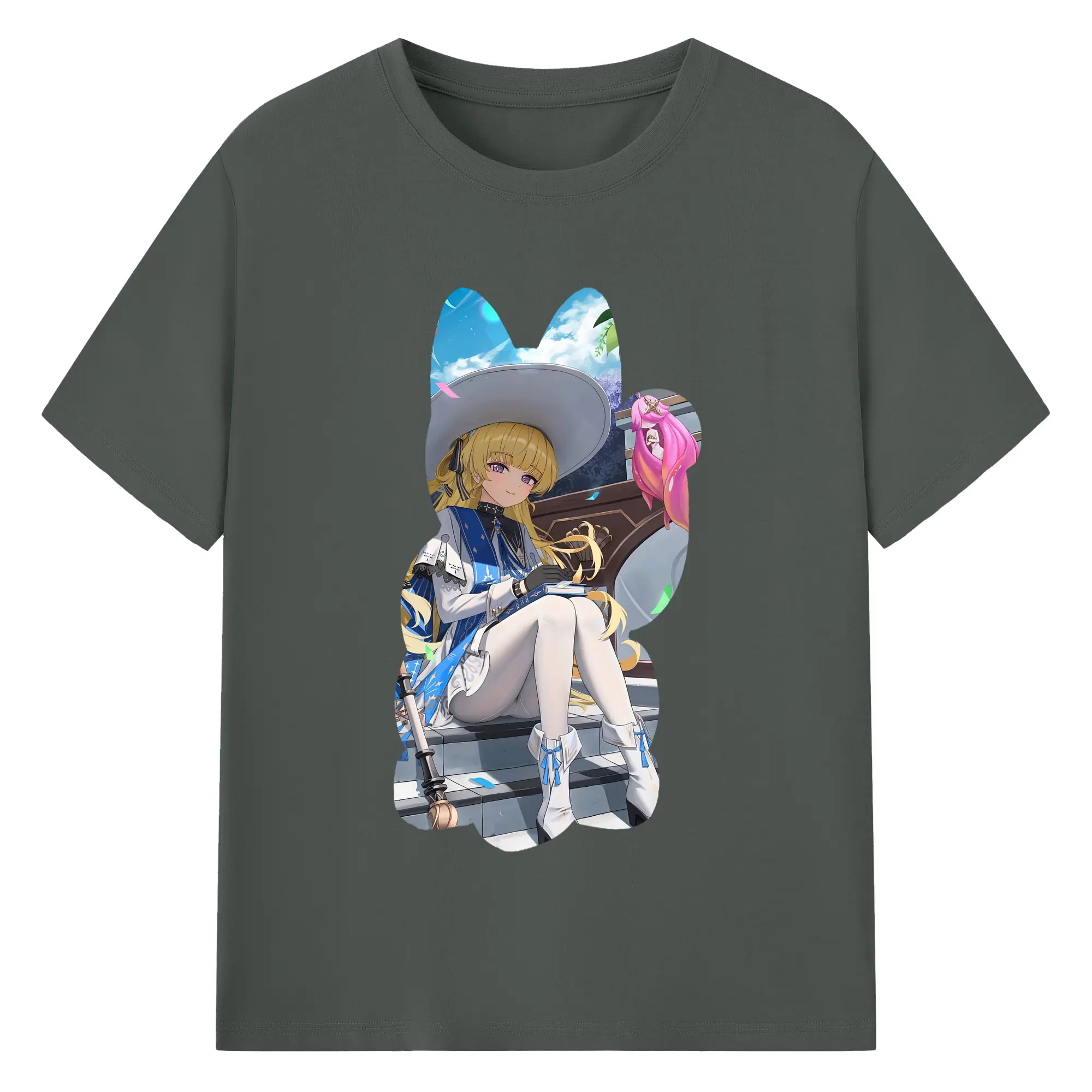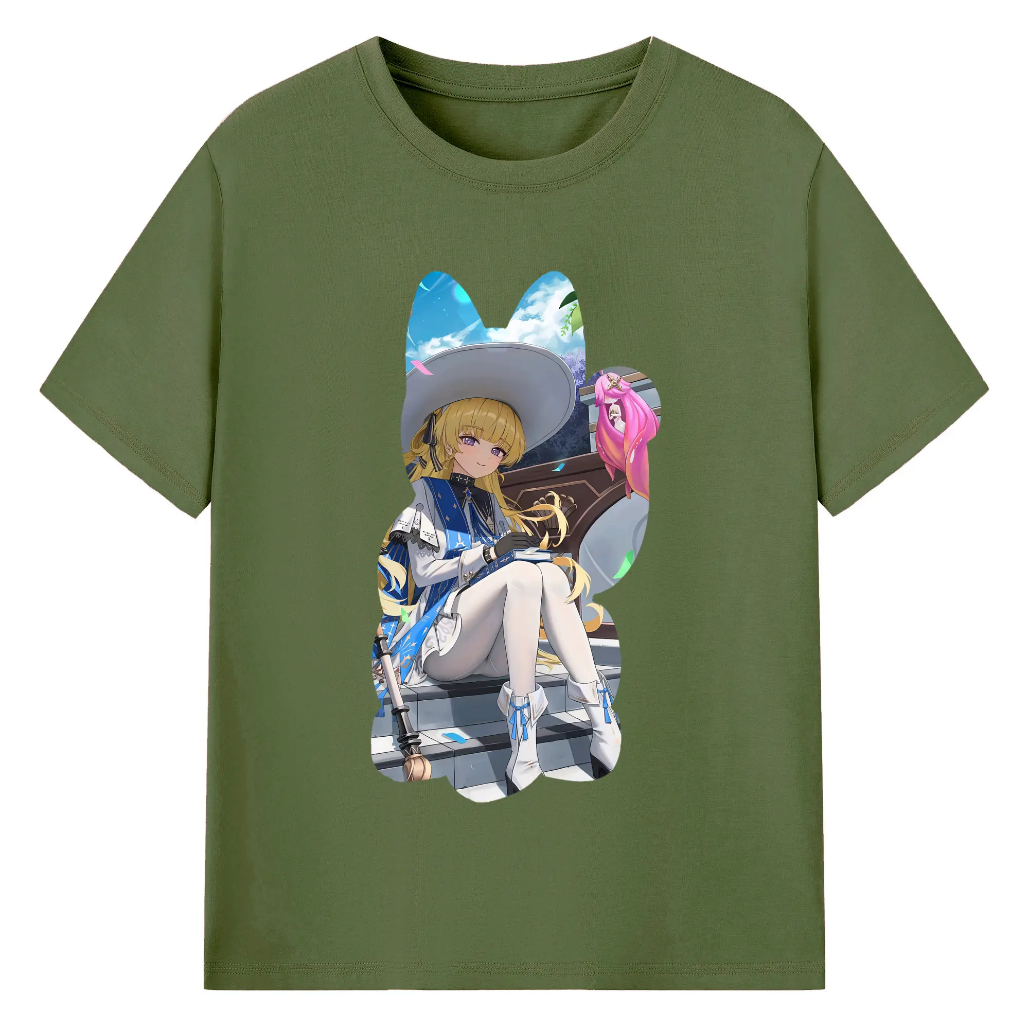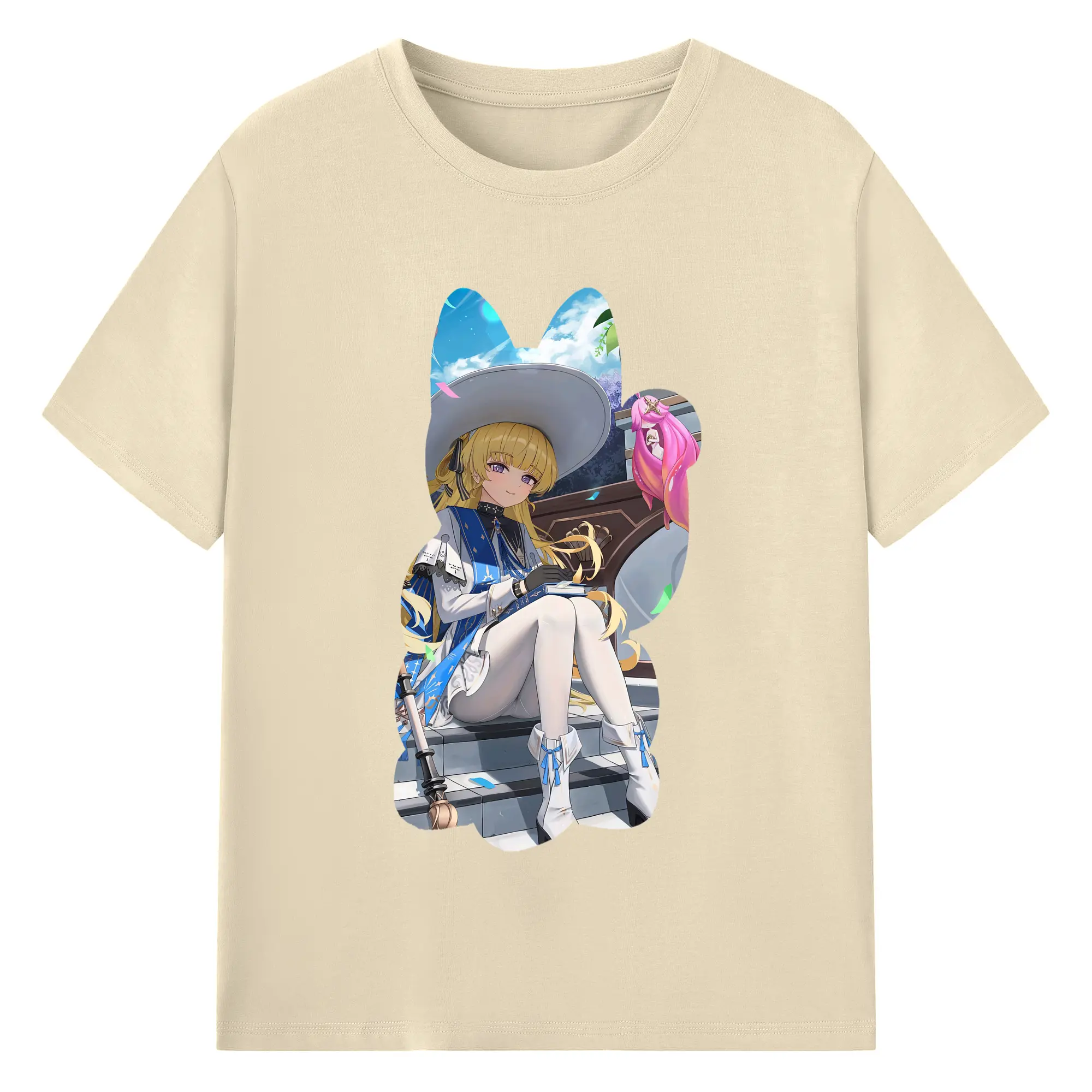 鳴潮 グッズ フィービー - 綿100% 半袖Tシャツ ・ バックプリント ・ 快適 通気性 ・ 日常使い 散歩 スポーツ用