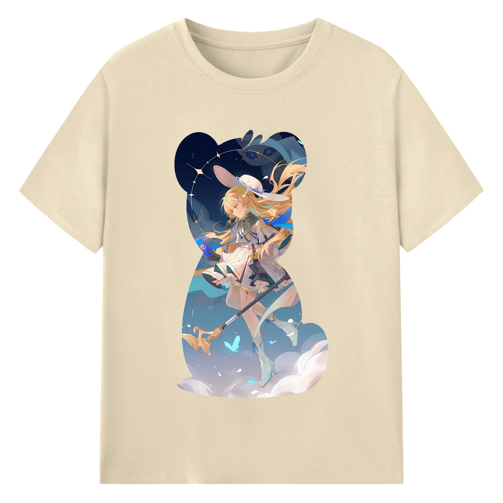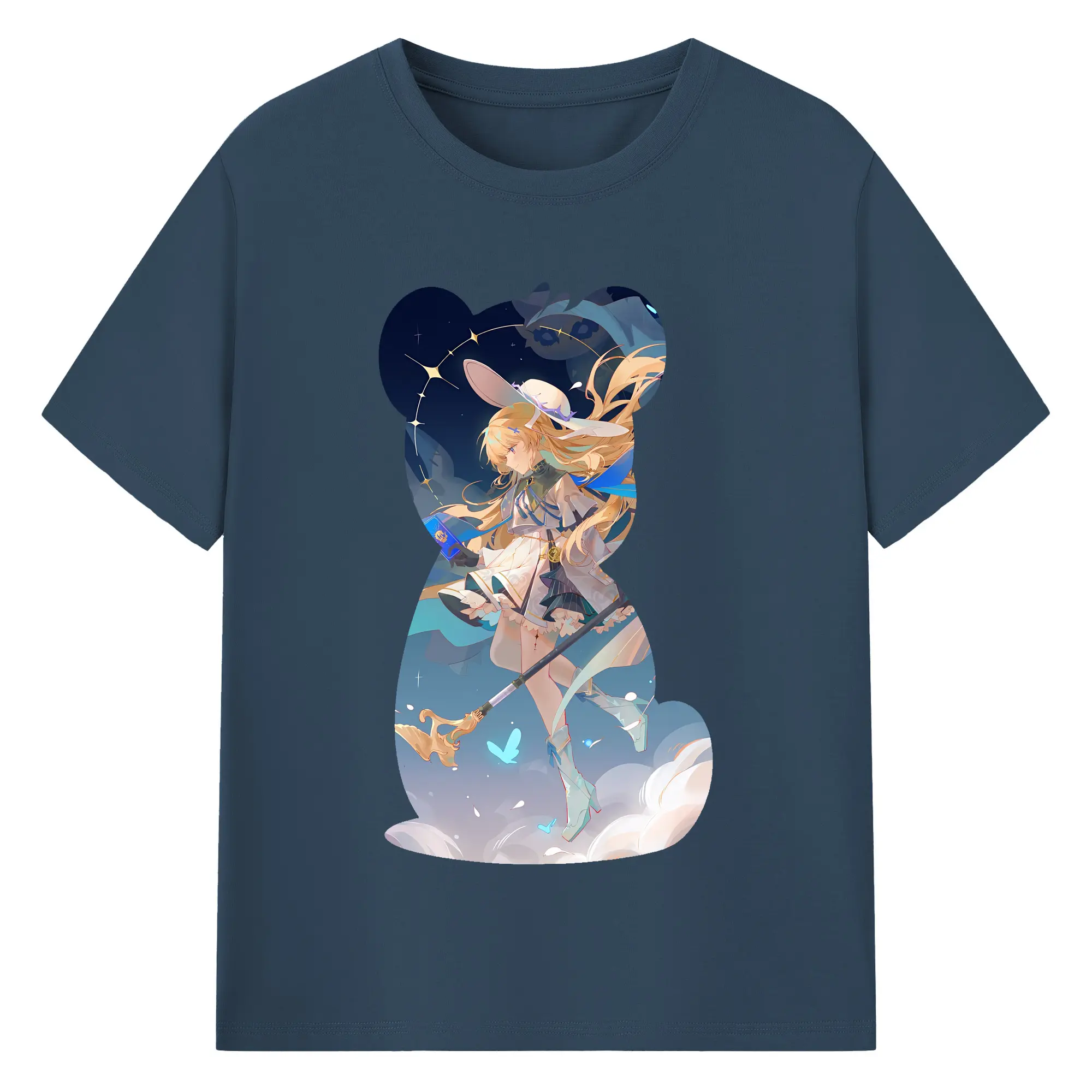 鳴潮 グッズ フィービー - 綿100% 半袖Tシャツ ・ バックプリント ・ 快適 通気性 ・ 日常使い 散歩 スポーツ用