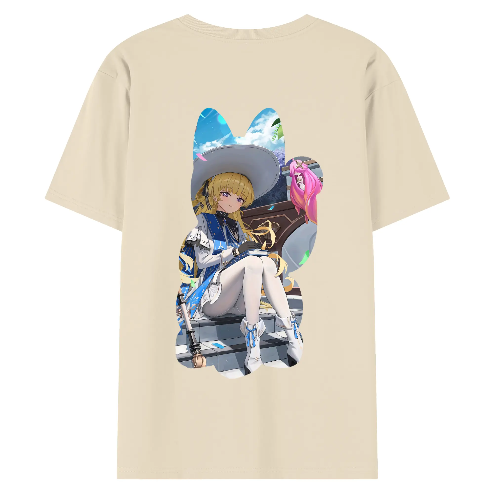 鳴潮 グッズ フィービー - 綿100% ヴィンテージ風 半袖Tシャツ ・ 背面プリント ・ 柔らか肌触り ・ 通気性 快適 ・ スポーツ カジュアル 外出用
