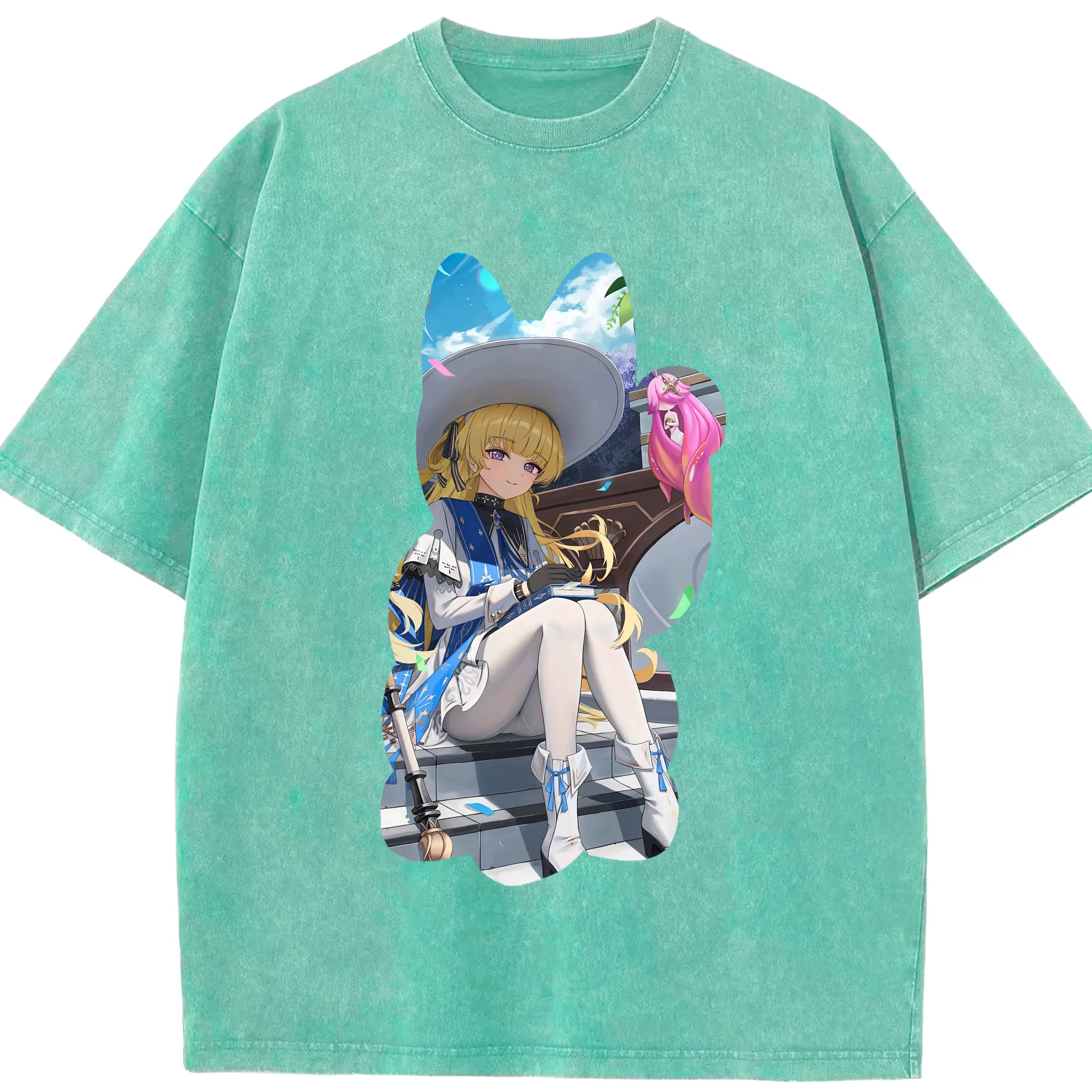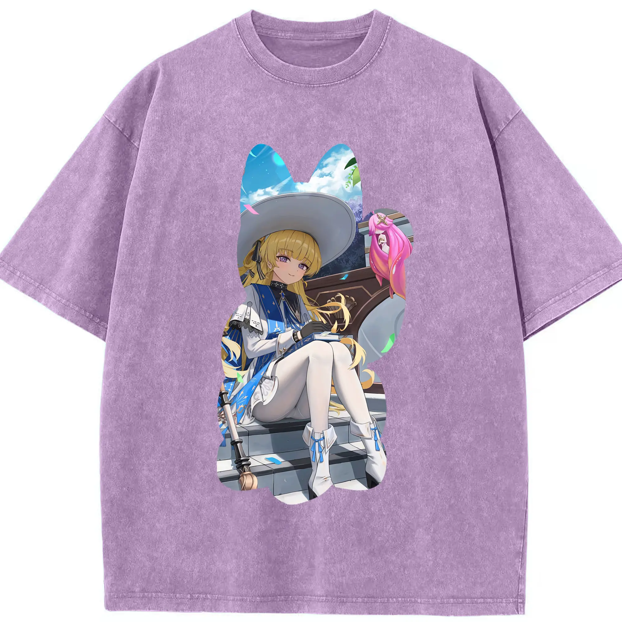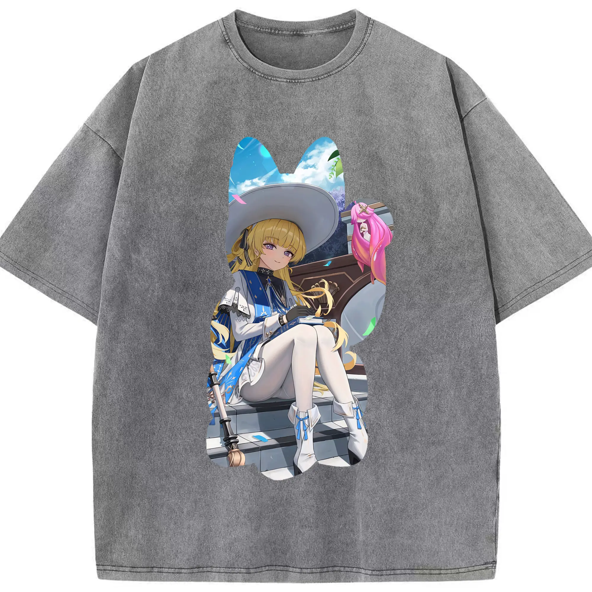 鳴潮 グッズ フィービー - 綿100% ヴィンテージ風 半袖Tシャツ ・ 背面プリント ・ 柔らか肌触り ・ 通気性 快適 ・ スポーツ カジュアル 外出用