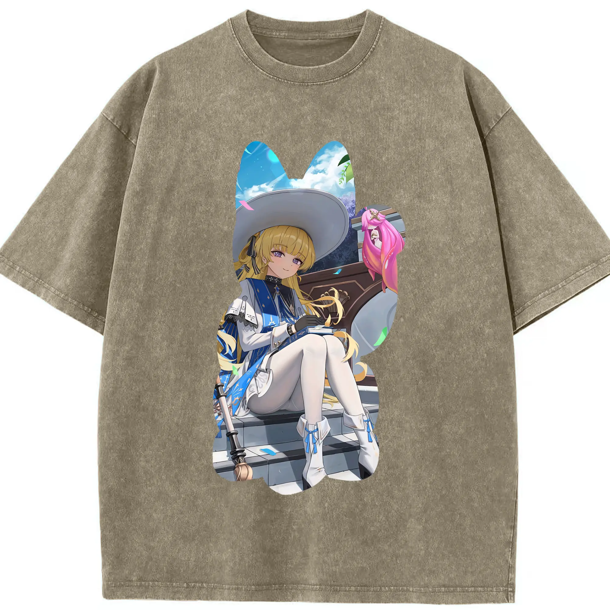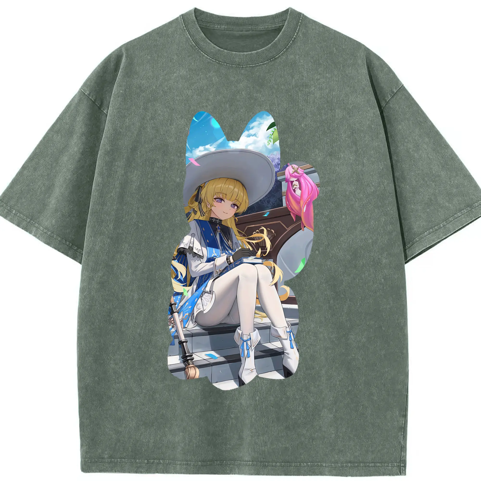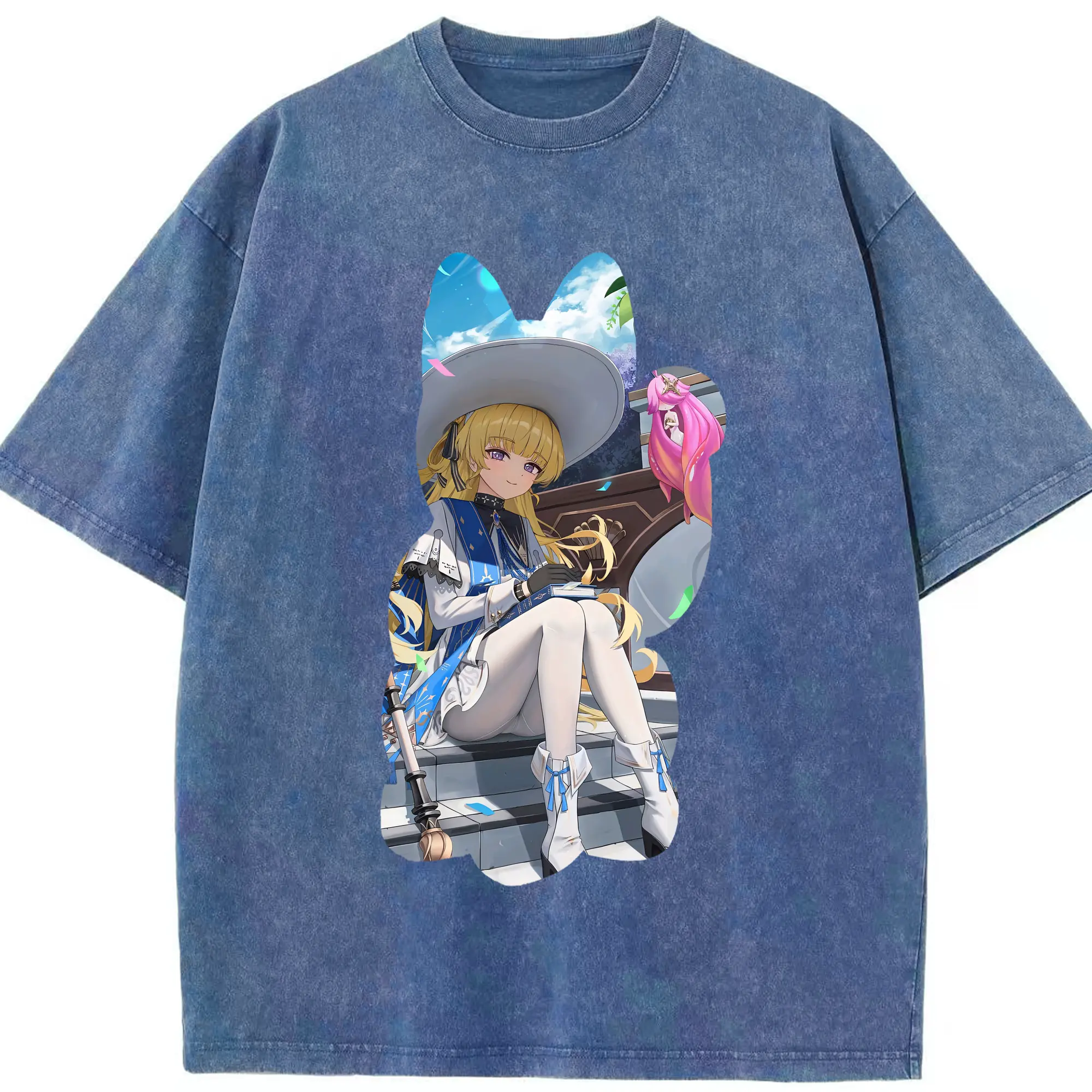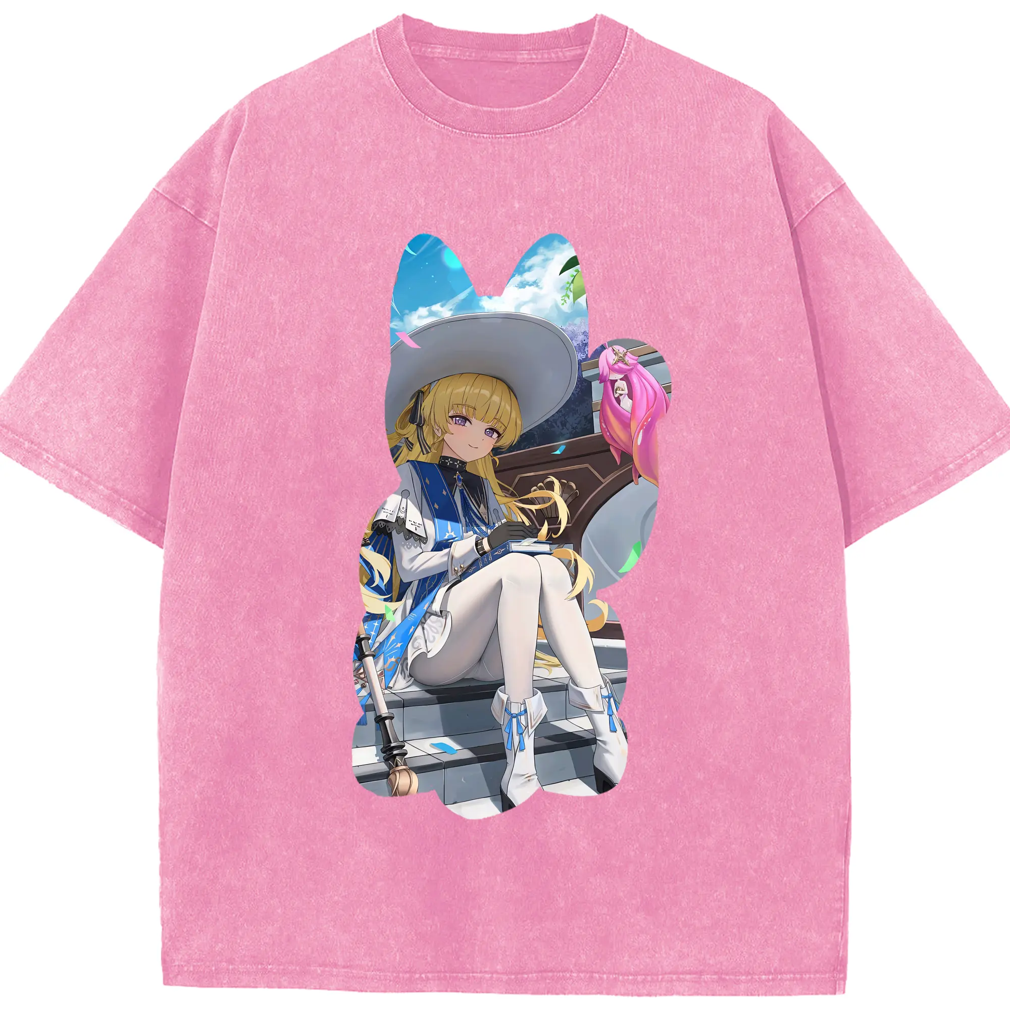 鳴潮 グッズ フィービー - 綿100% ヴィンテージ風 半袖Tシャツ ・ 背面プリント ・ 柔らか肌触り ・ 通気性 快適 ・ スポーツ カジュアル 外出用