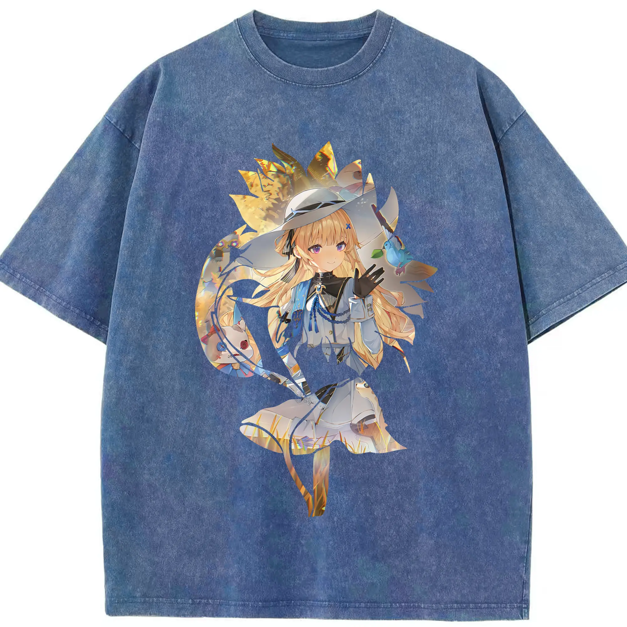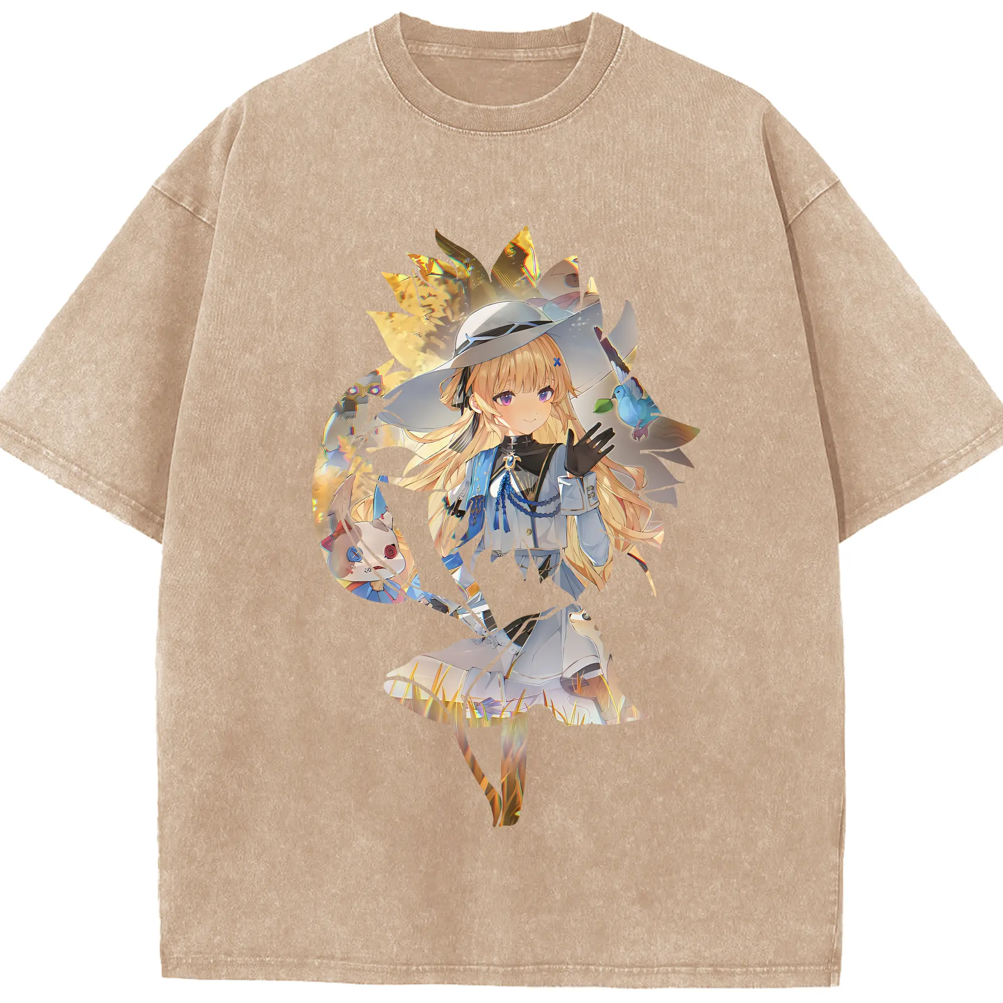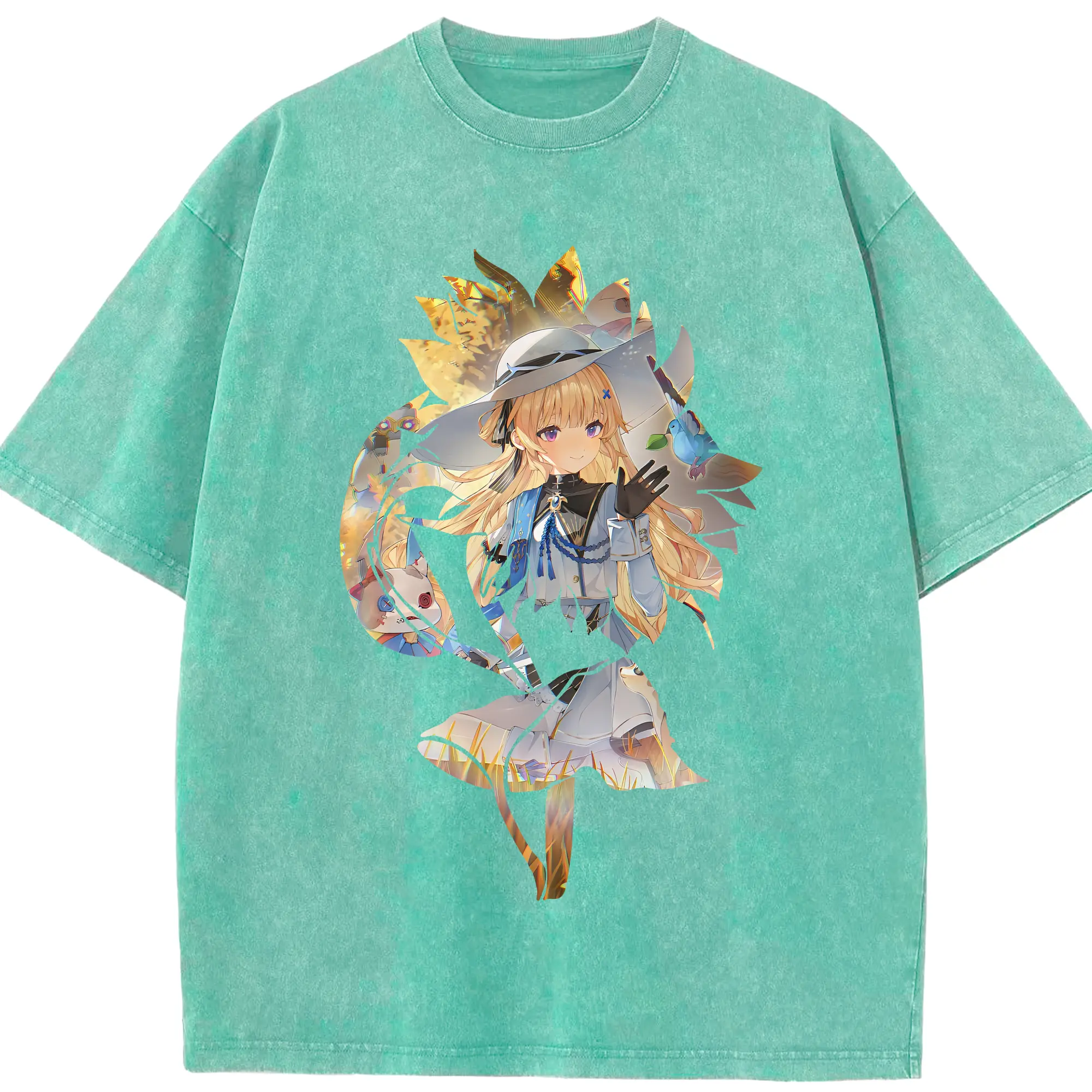 鳴潮 グッズ フィービー - 綿100% ヴィンテージ風 半袖Tシャツ ・ 背面プリント ・ 柔らか肌触り ・ 通気性 快適 ・ スポーツ カジュアル 外出用