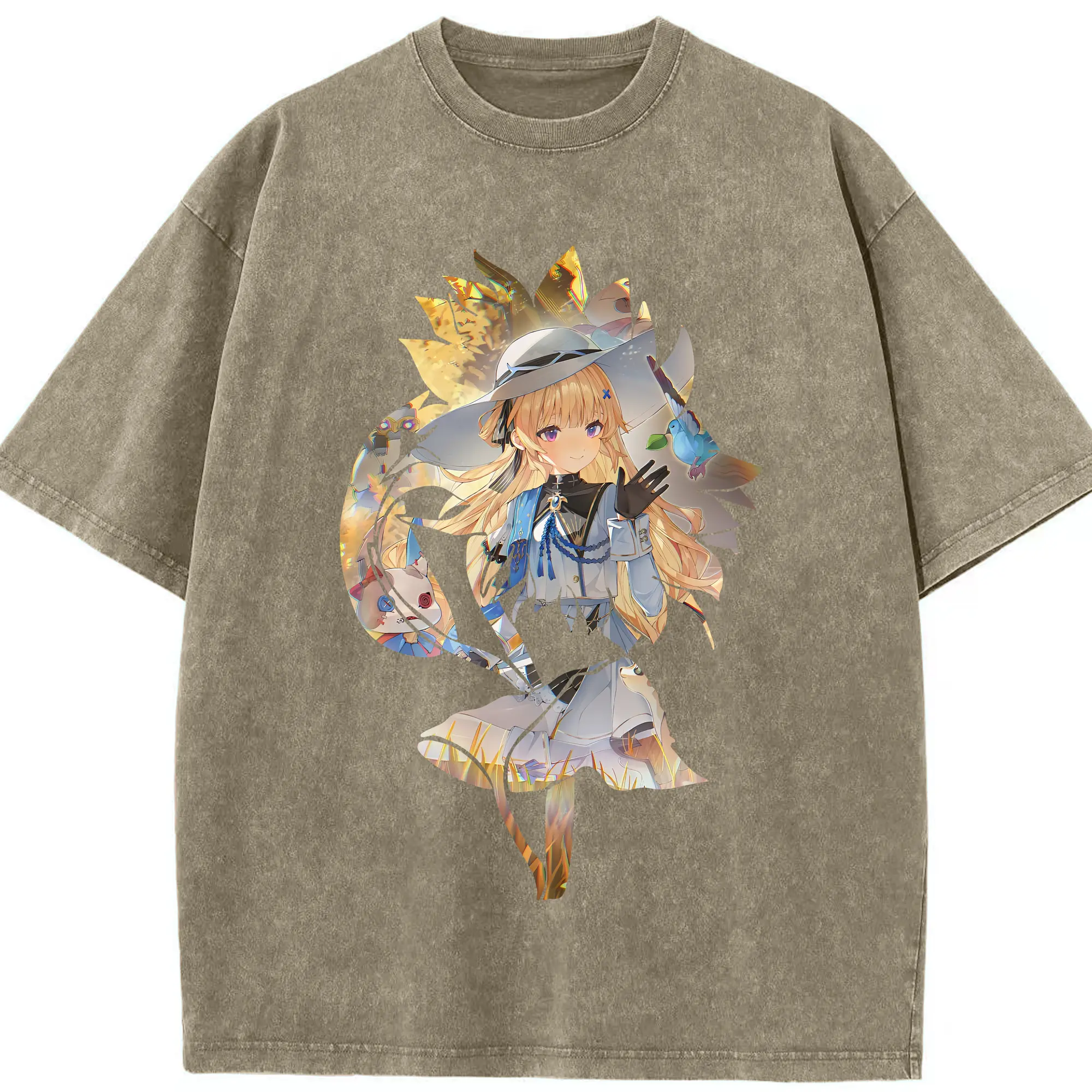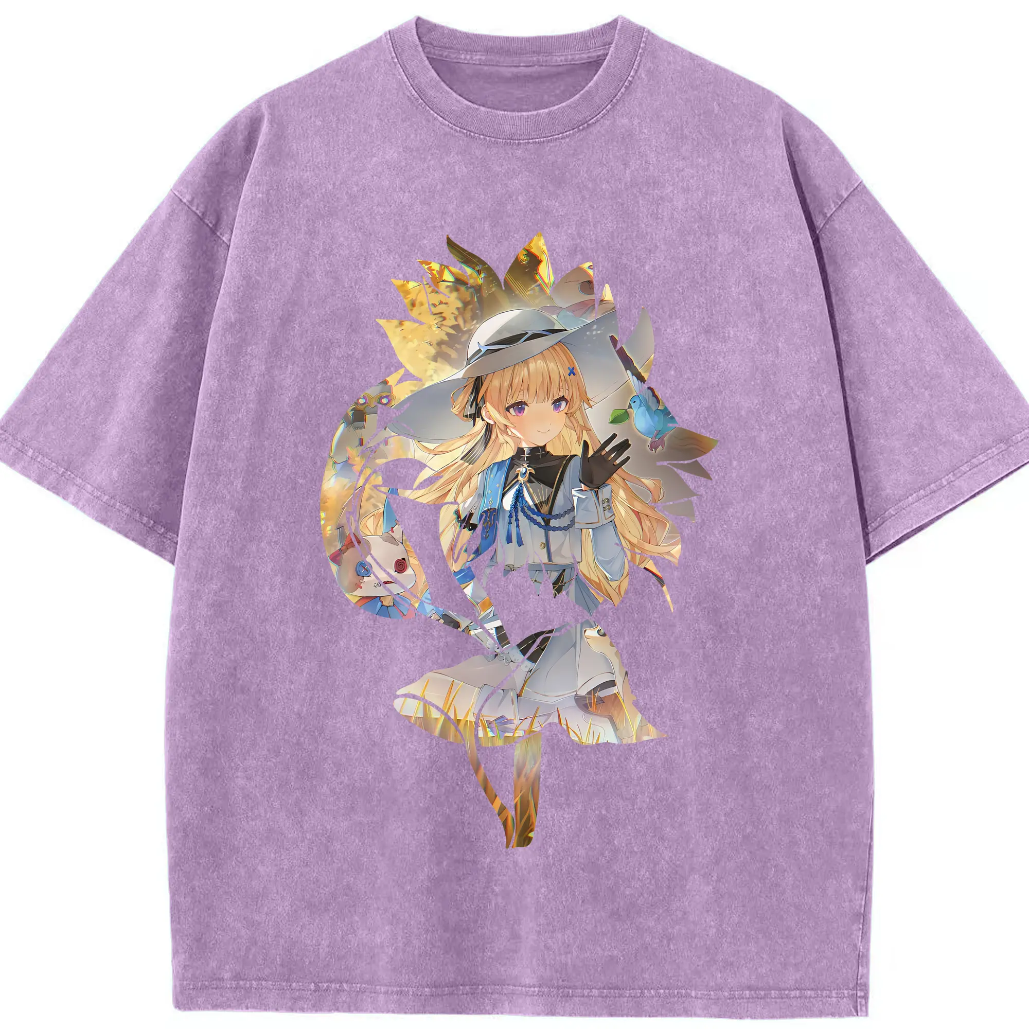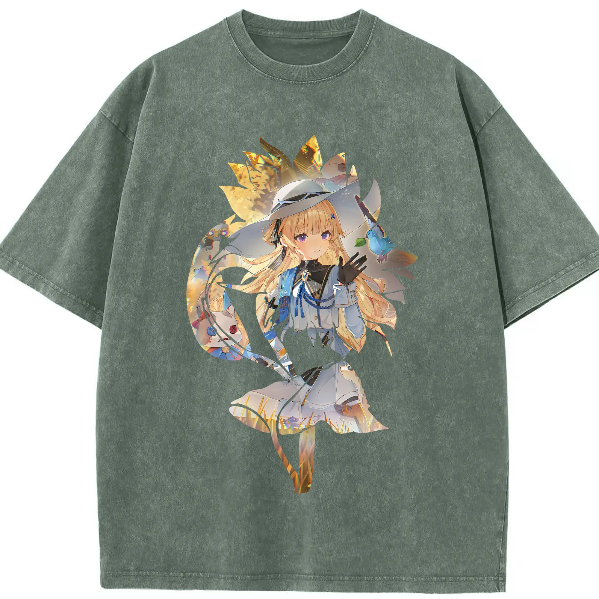 鳴潮 グッズ フィービー - 綿100% ヴィンテージ風 半袖Tシャツ ・ 背面プリント ・ 柔らか肌触り ・ 通気性 快適 ・ スポーツ カジュアル 外出用