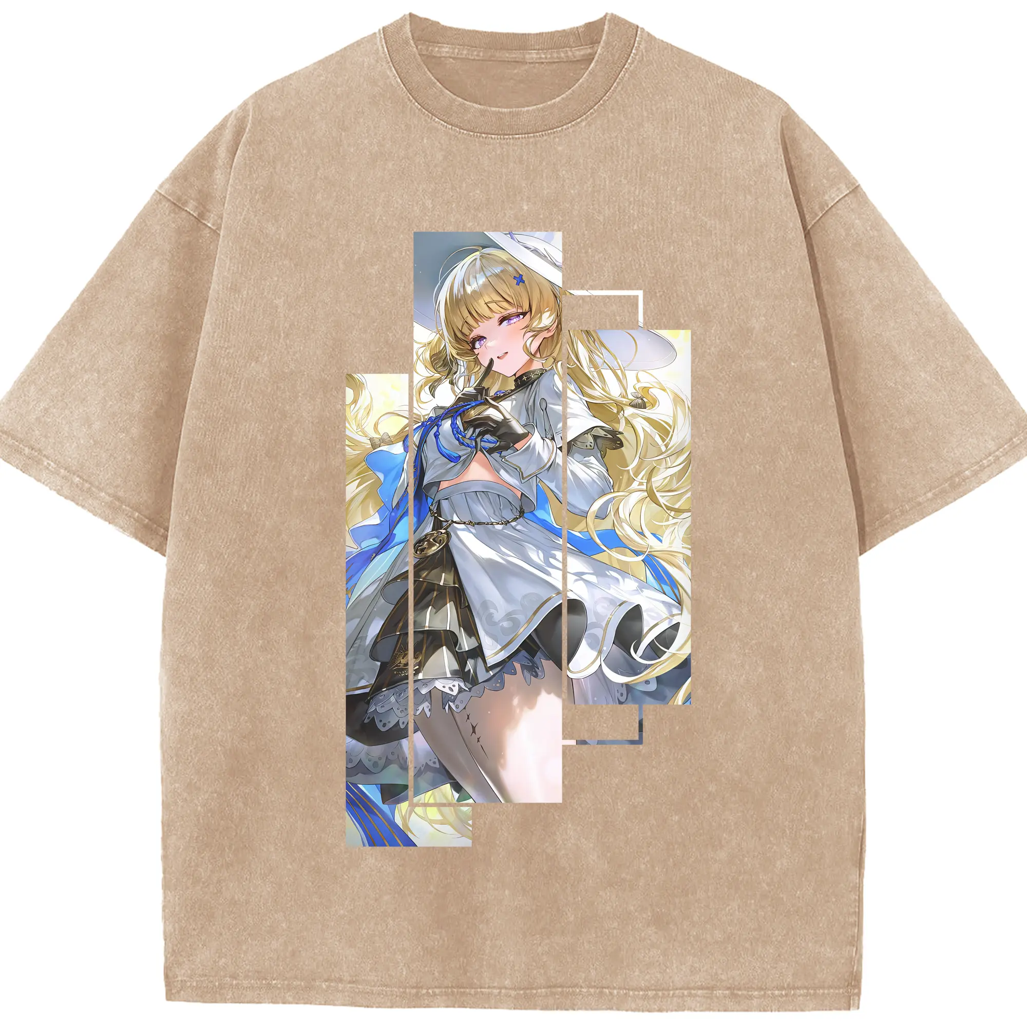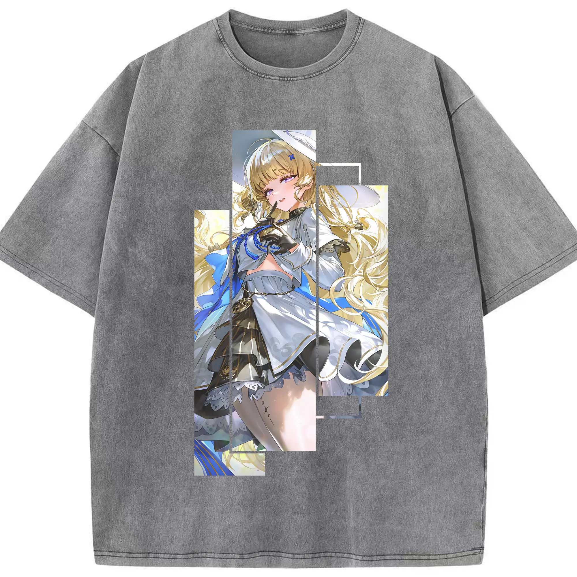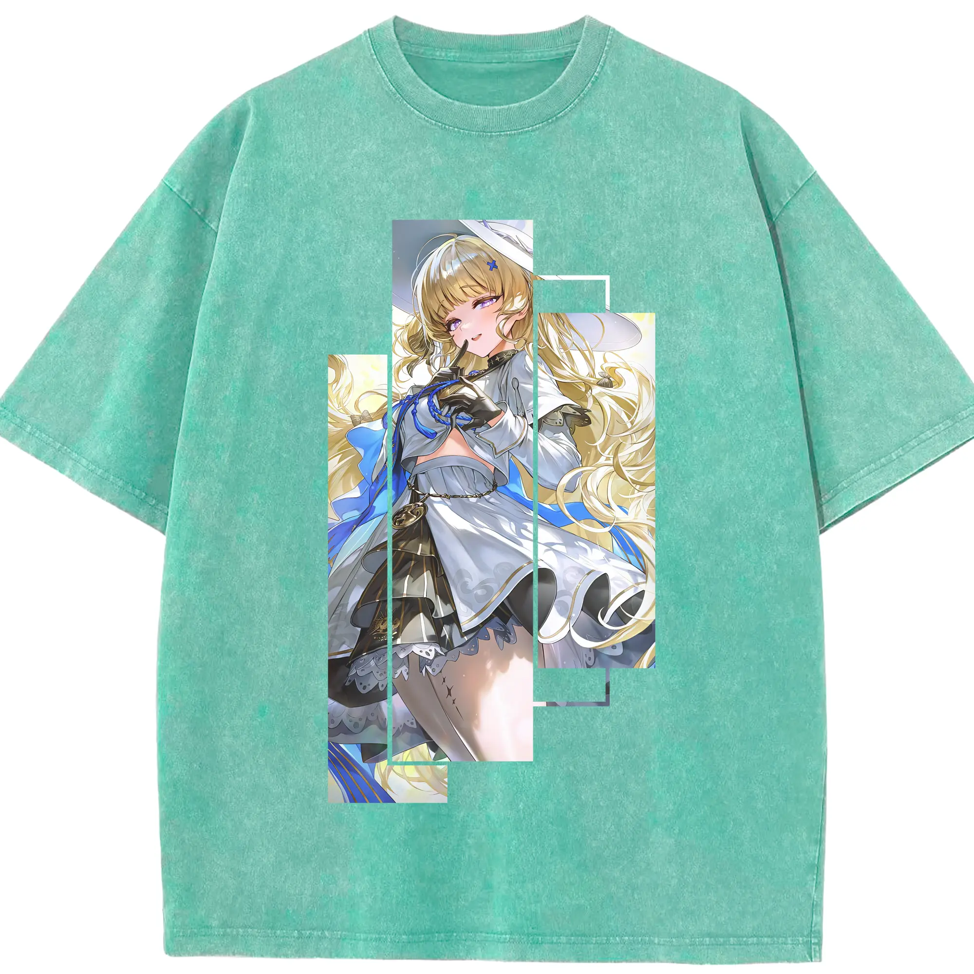 鳴潮 グッズ フィービー - 綿100% ヴィンテージ風 半袖Tシャツ ・ 背面プリント ・ 柔らか肌触り ・ 通気性 快適 ・ スポーツ カジュアル 外出用