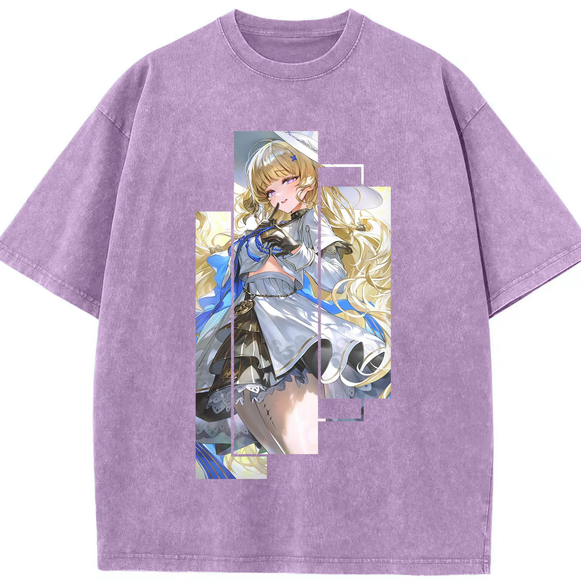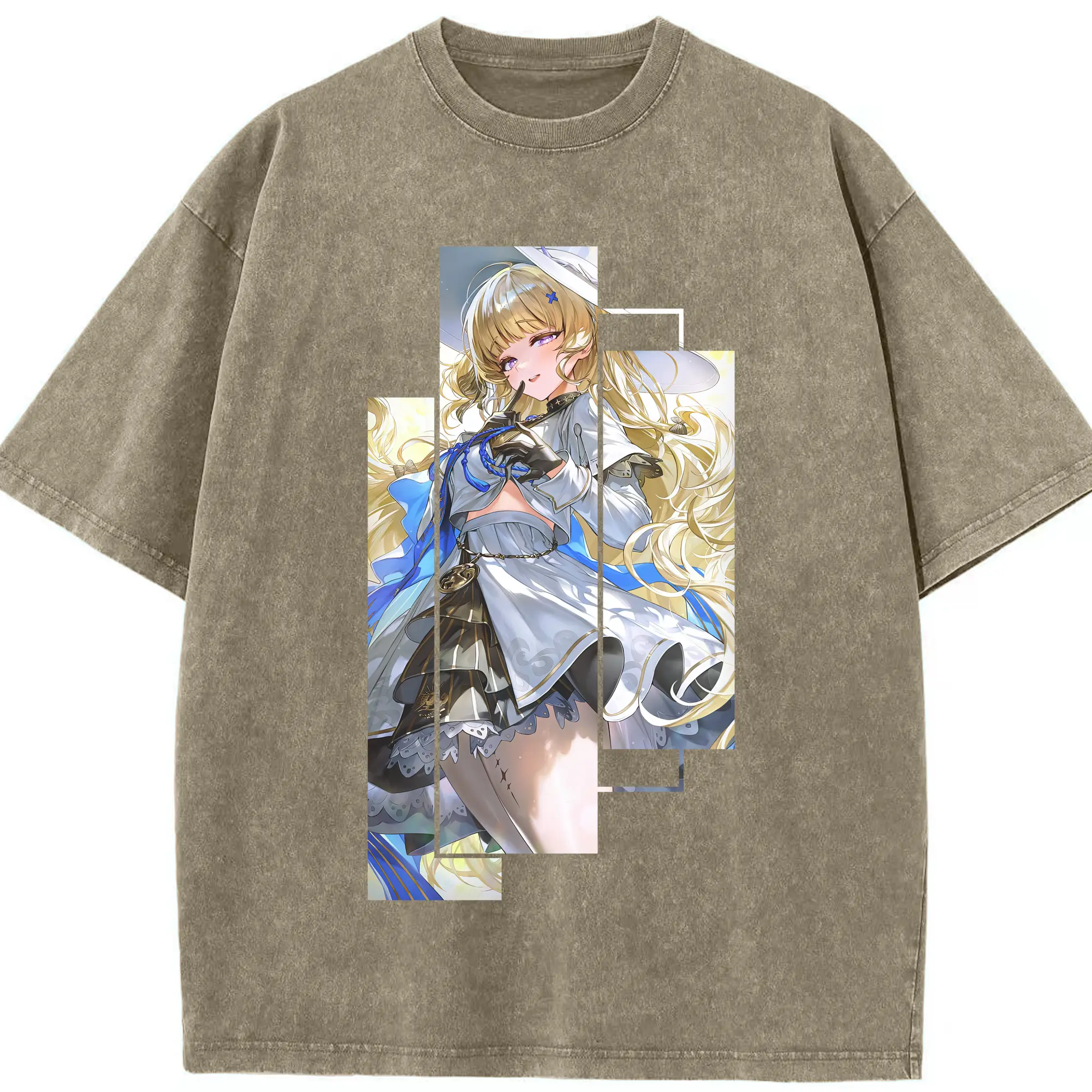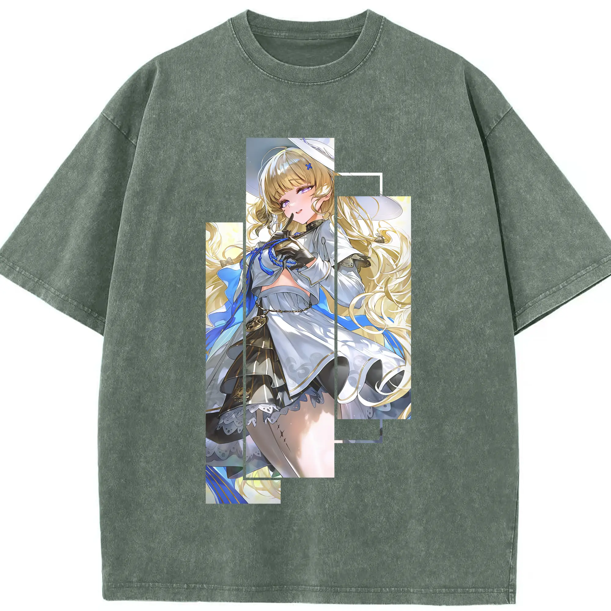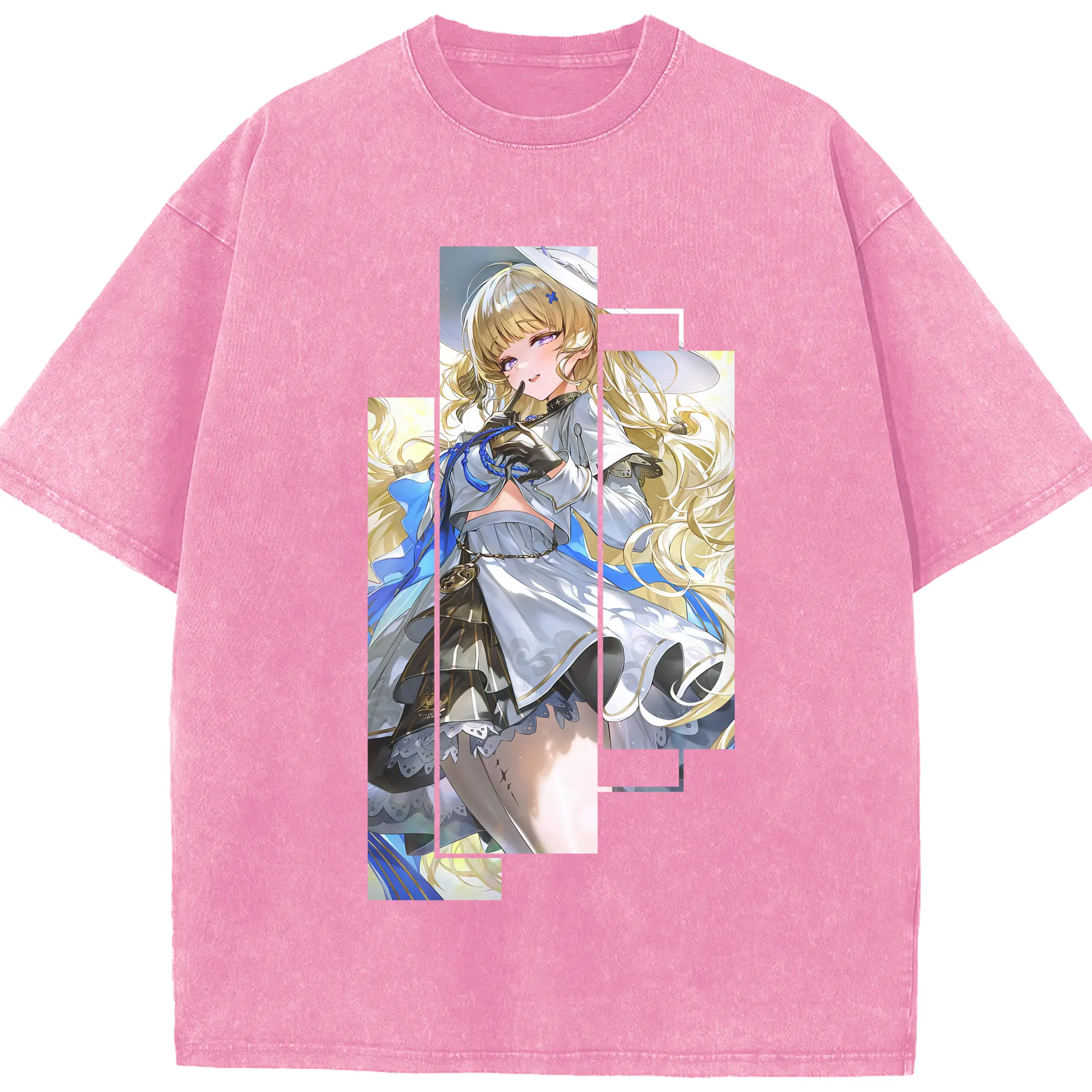鳴潮 グッズ フィービー - 綿100% ヴィンテージ風 半袖Tシャツ ・ 背面プリント ・ 柔らか肌触り ・ 通気性 快適 ・ スポーツ カジュアル 外出用