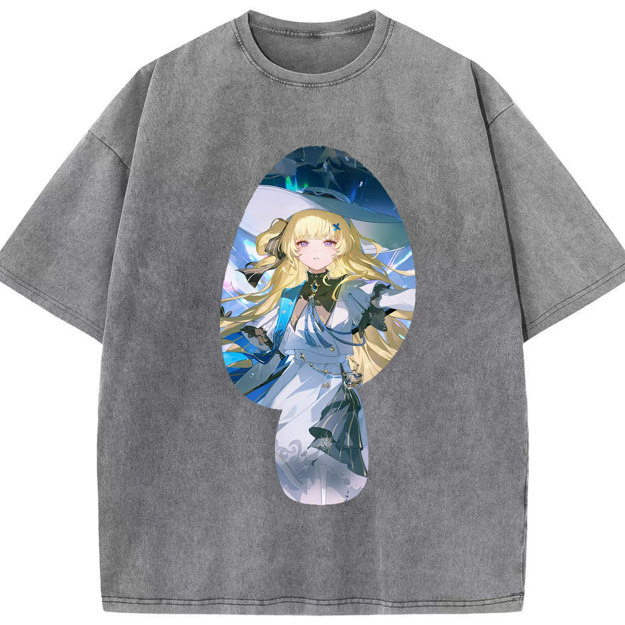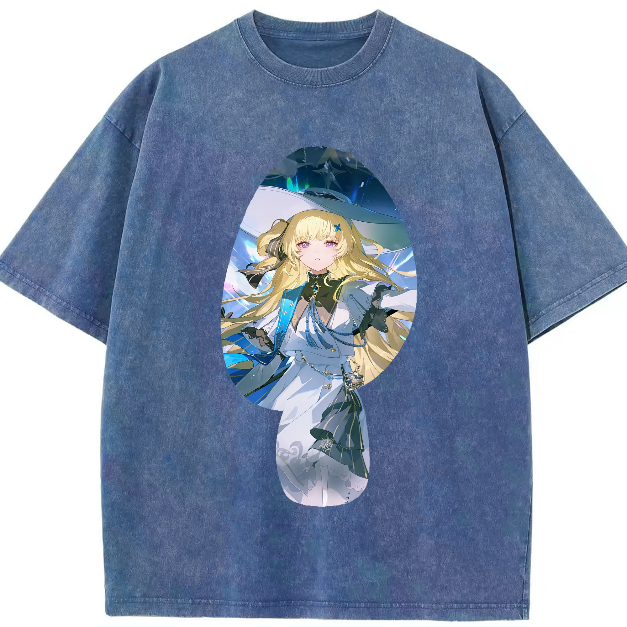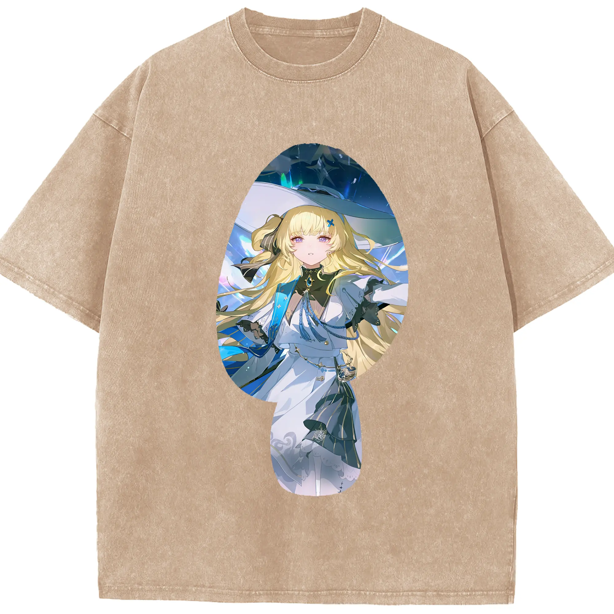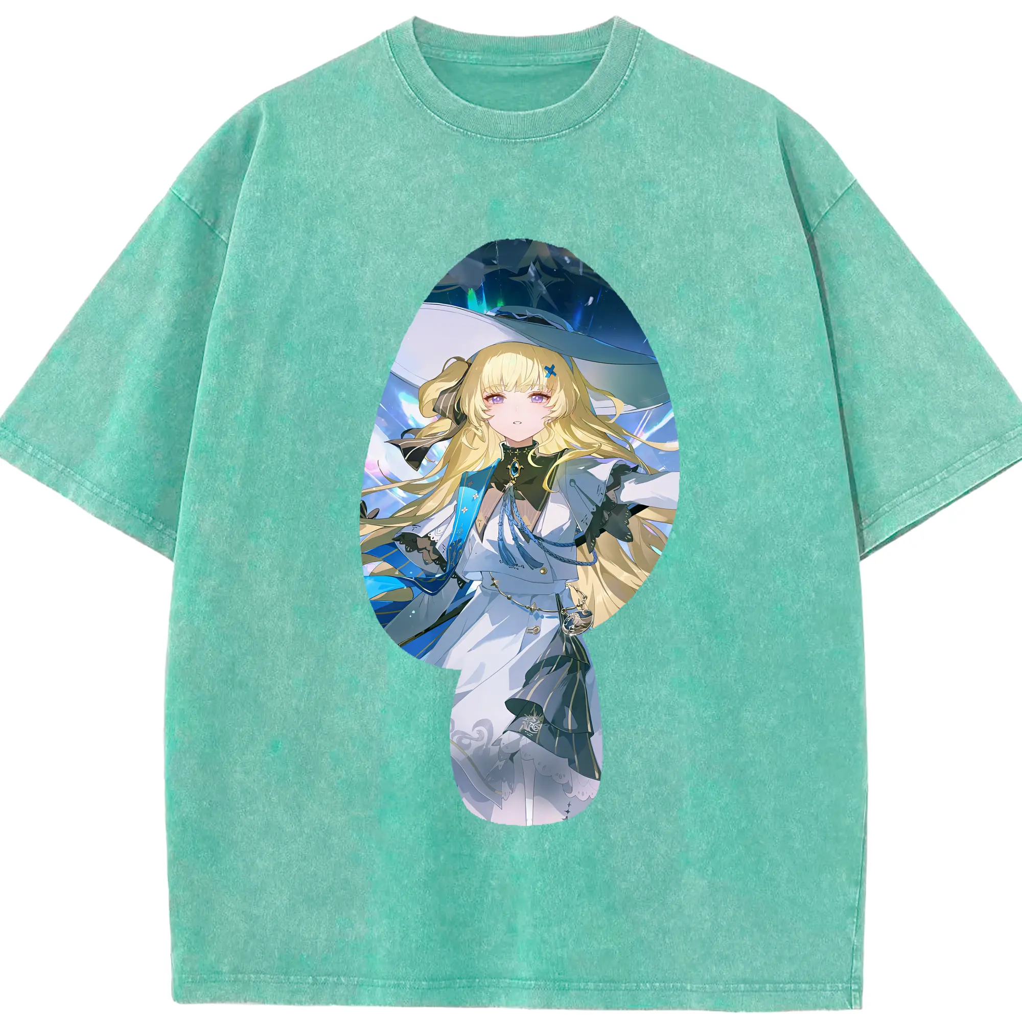 鳴潮 グッズ フィービー - 綿100% ヴィンテージ風 半袖Tシャツ ・ 背面プリント ・ 柔らか肌触り ・ 通気性 快適 ・ スポーツ カジュアル 外出用