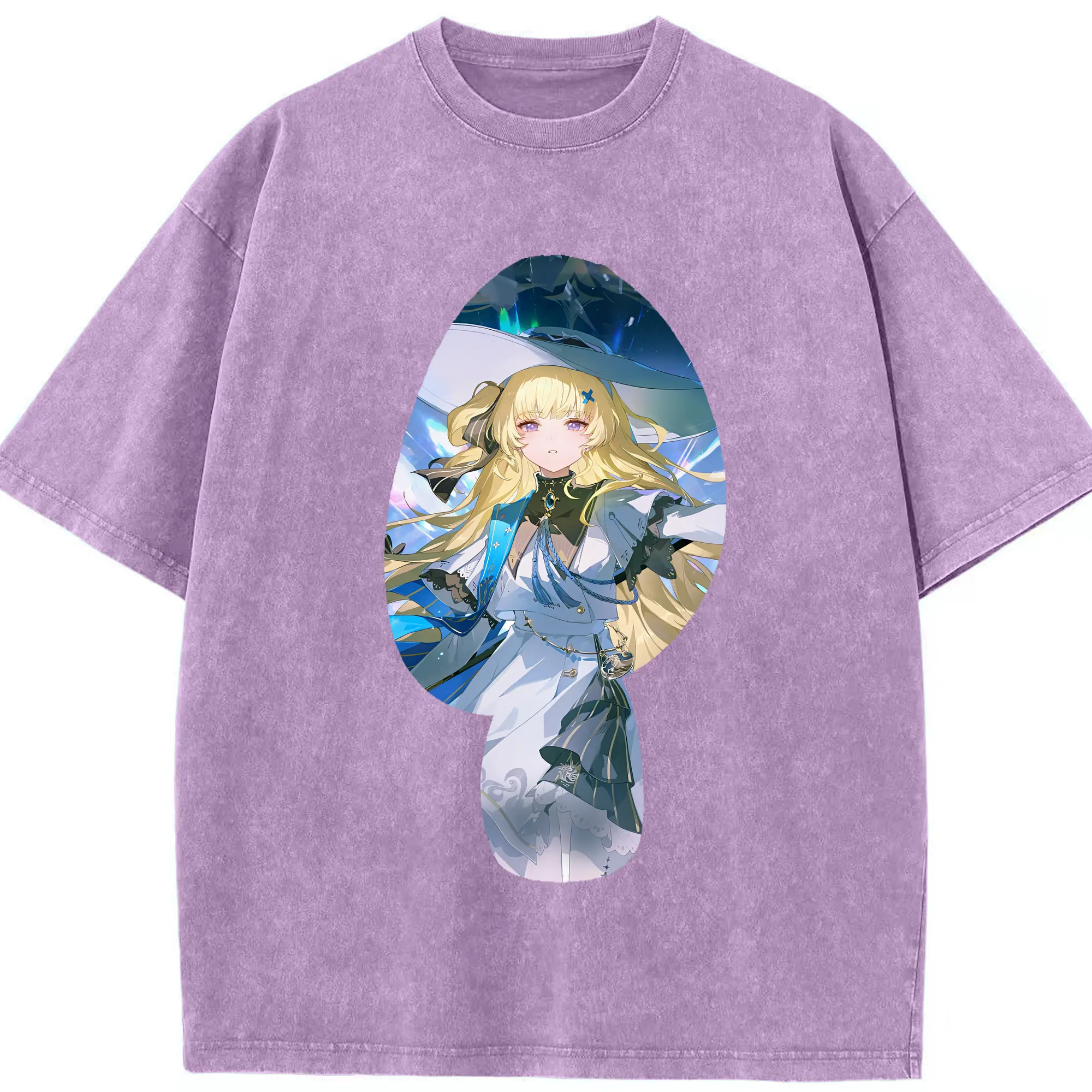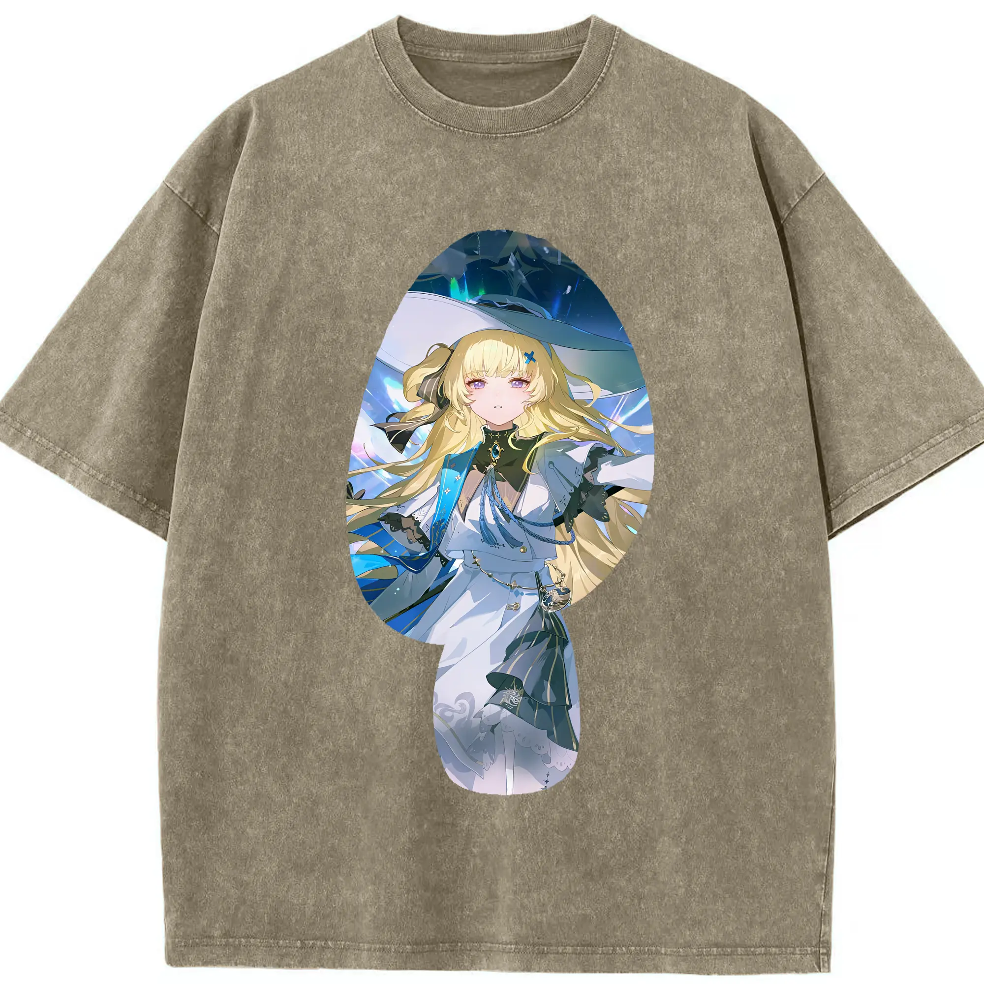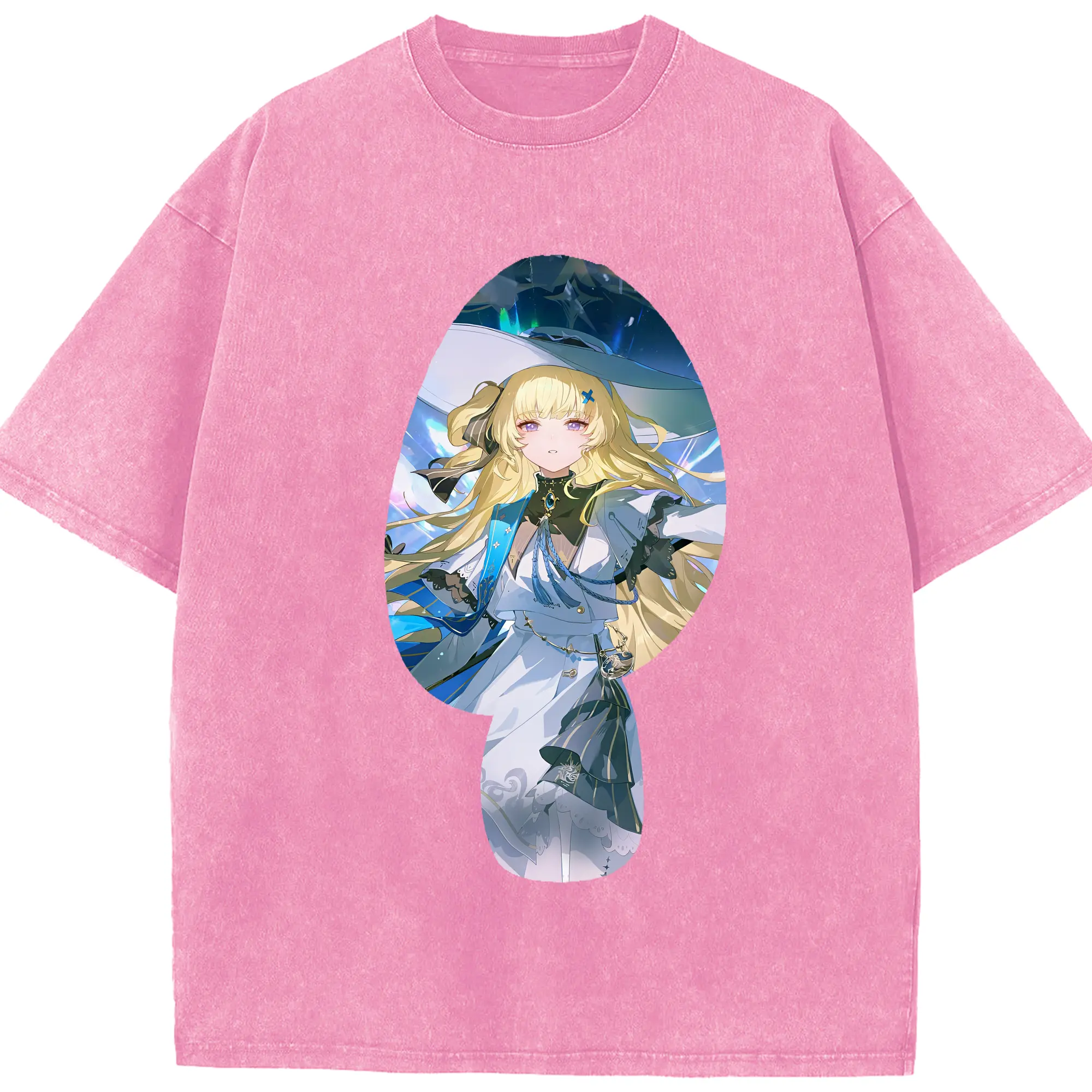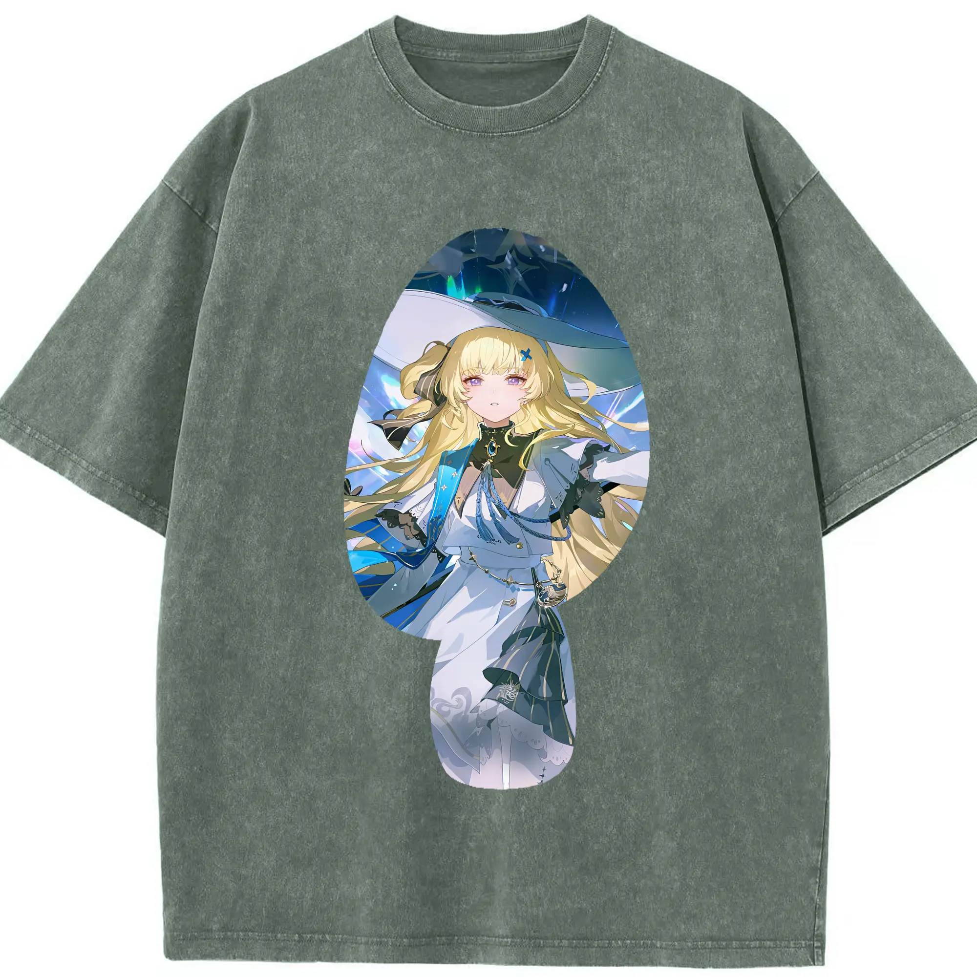 鳴潮 グッズ フィービー - 綿100% ヴィンテージ風 半袖Tシャツ ・ 背面プリント ・ 柔らか肌触り ・ 通気性 快適 ・ スポーツ カジュアル 外出用