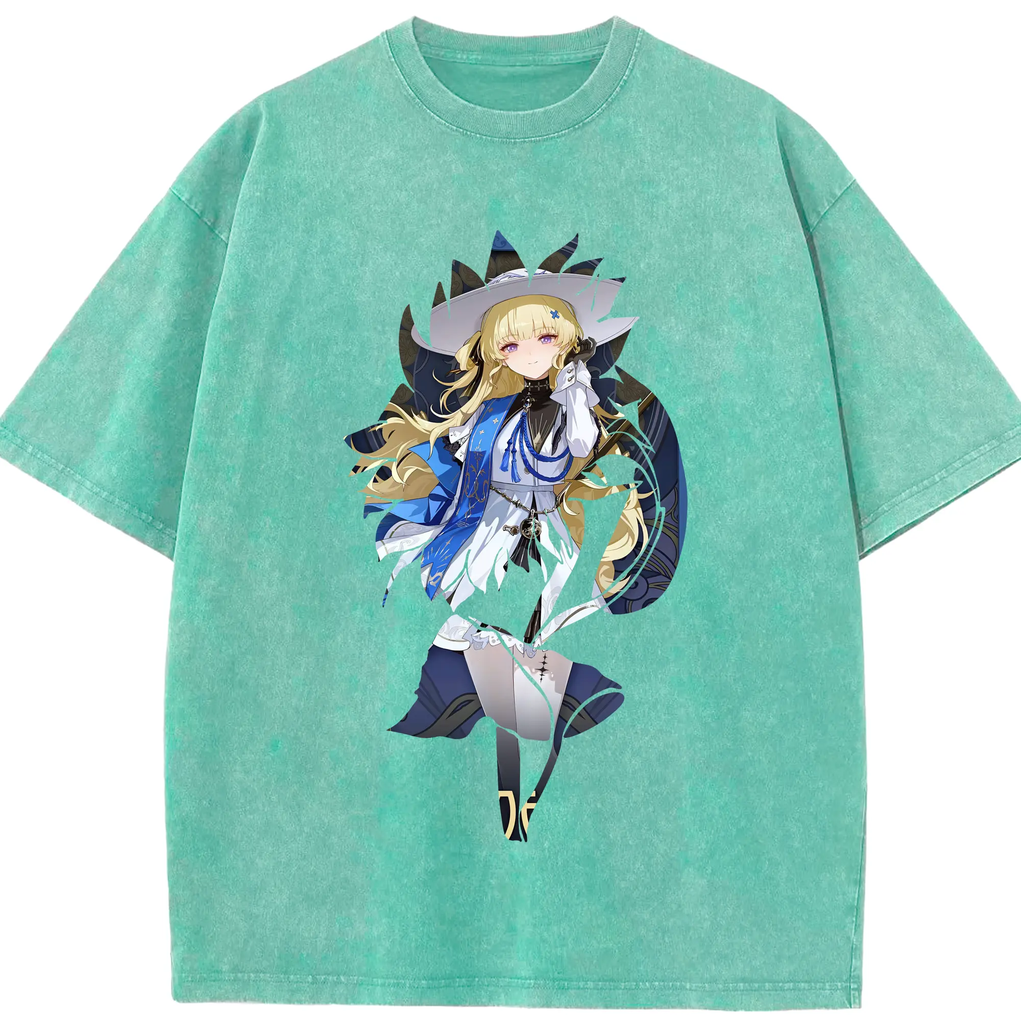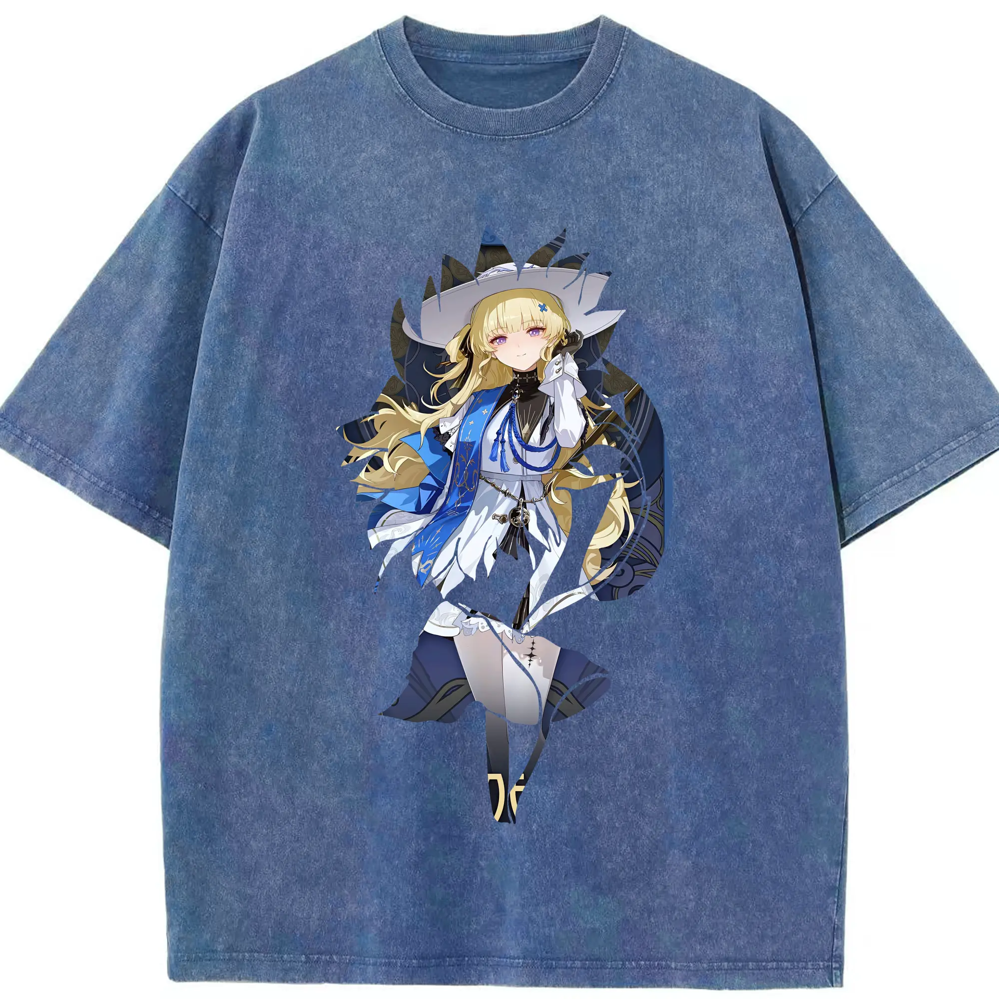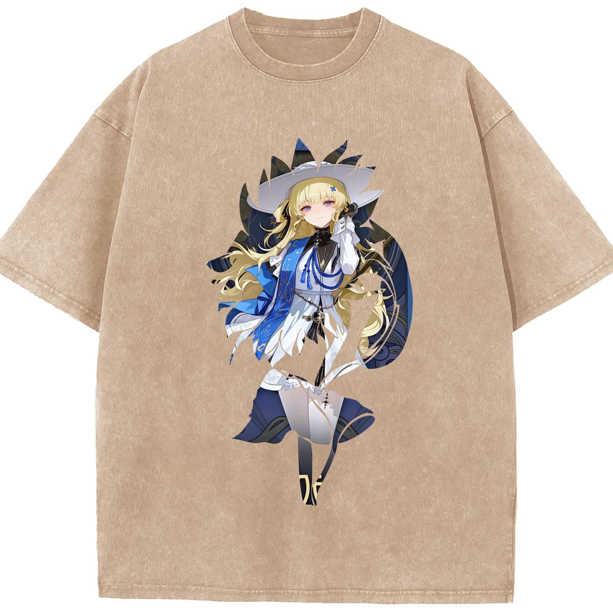 鳴潮 グッズ フィービー - 綿100% ヴィンテージ風 半袖Tシャツ ・ 背面プリント ・ 柔らか肌触り ・ 通気性 快適 ・ スポーツ カジュアル 外出用
