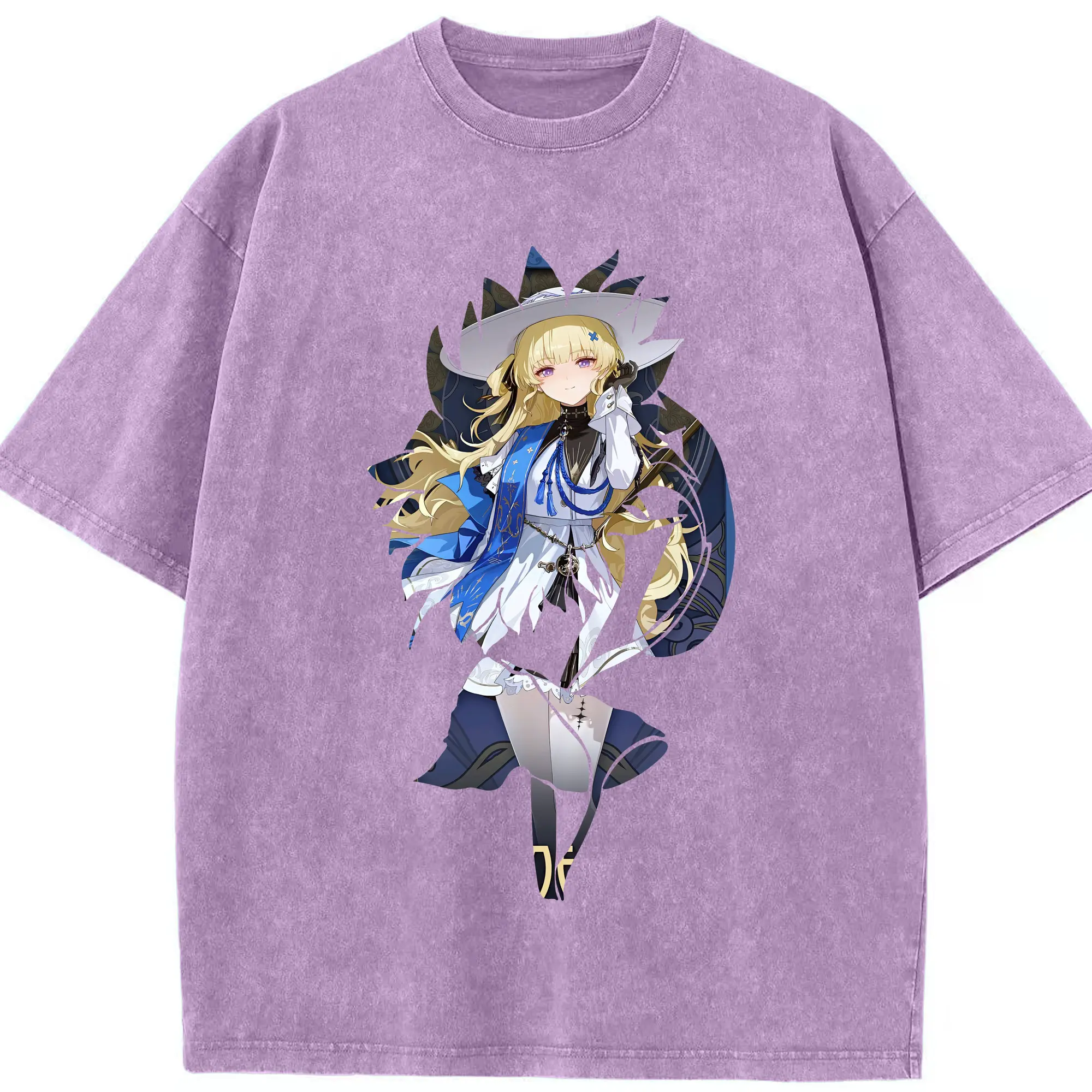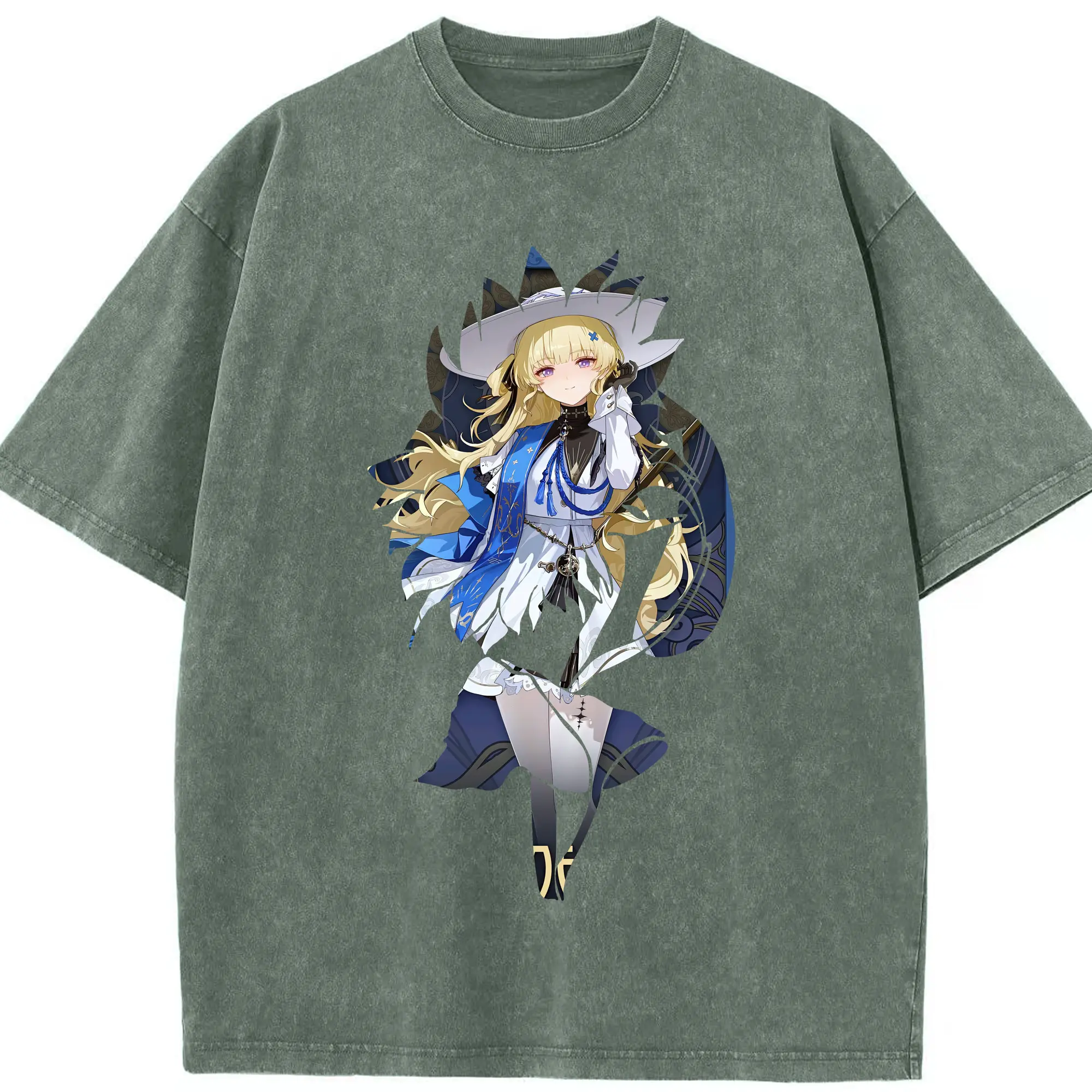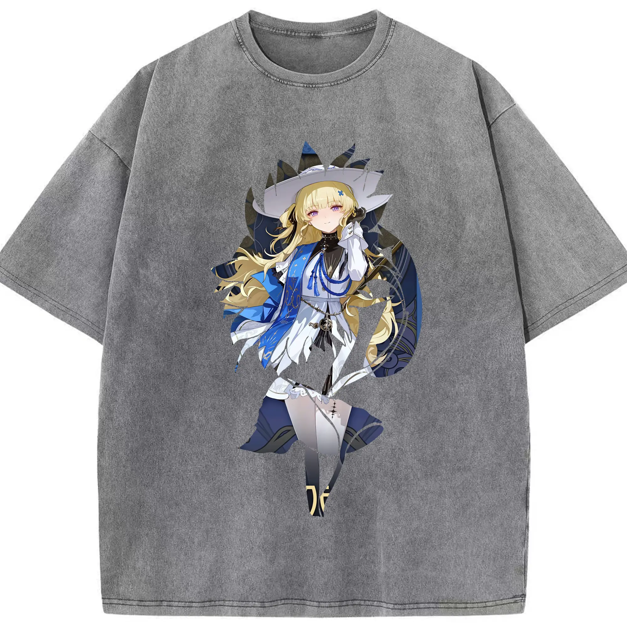鳴潮 グッズ フィービー - 綿100% ヴィンテージ風 半袖Tシャツ ・ 背面プリント ・ 柔らか肌触り ・ 通気性 快適 ・ スポーツ カジュアル 外出用
