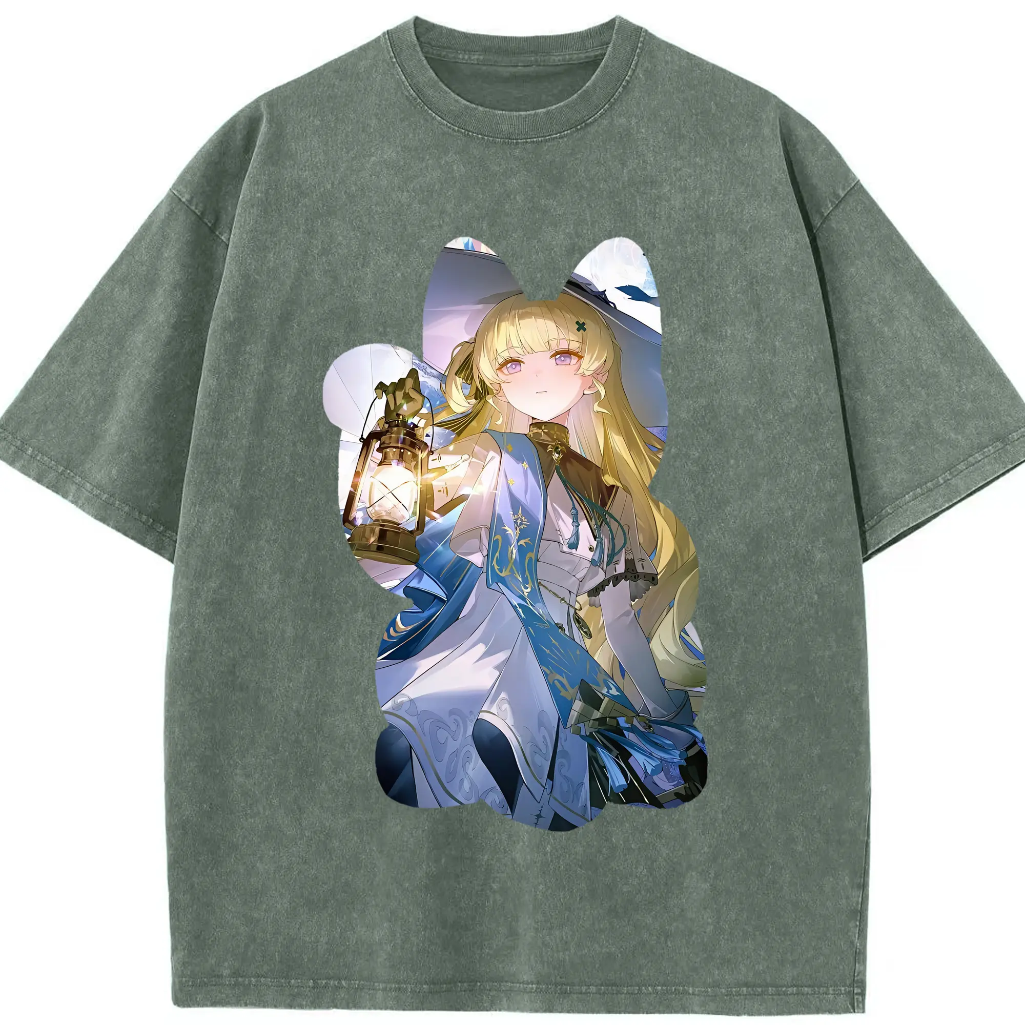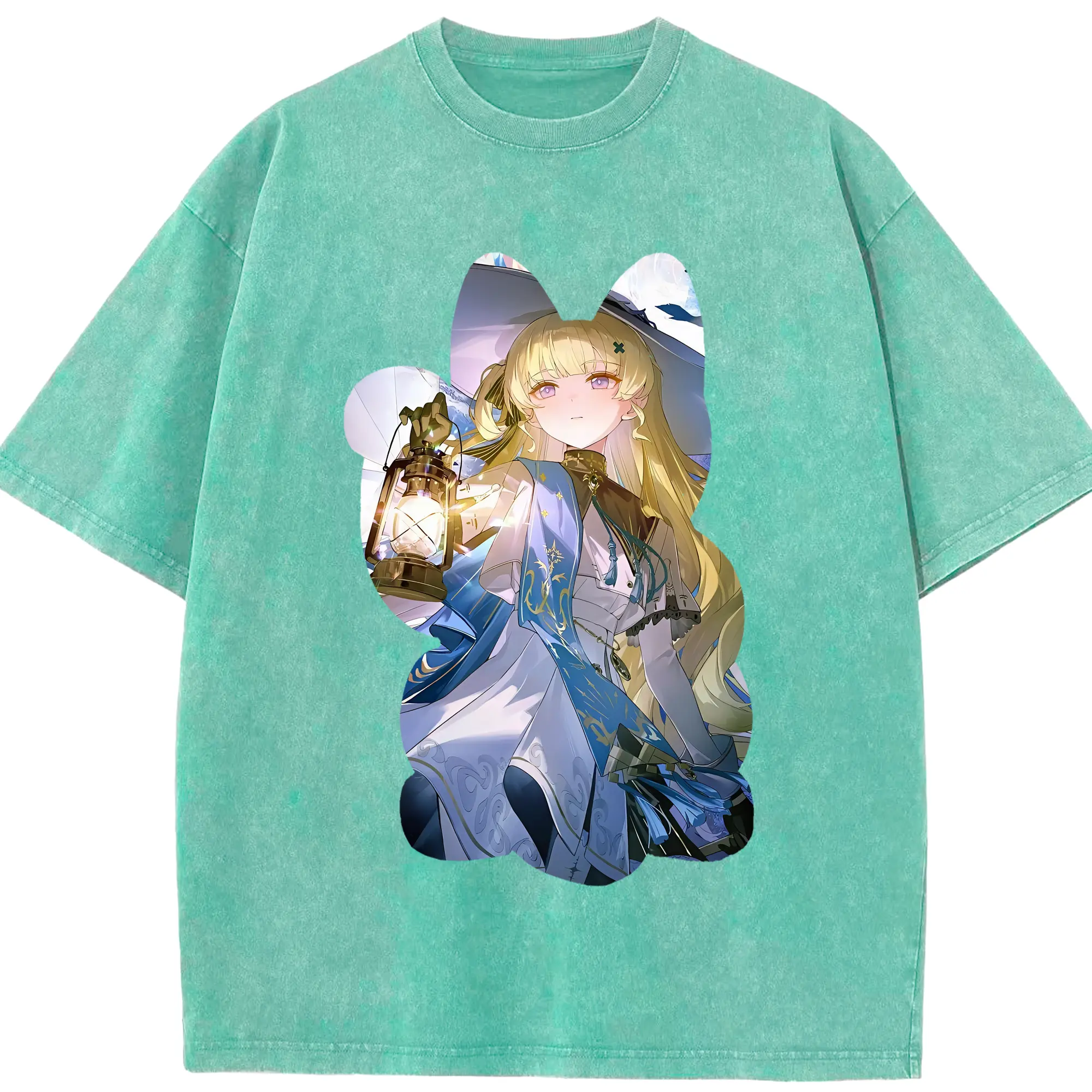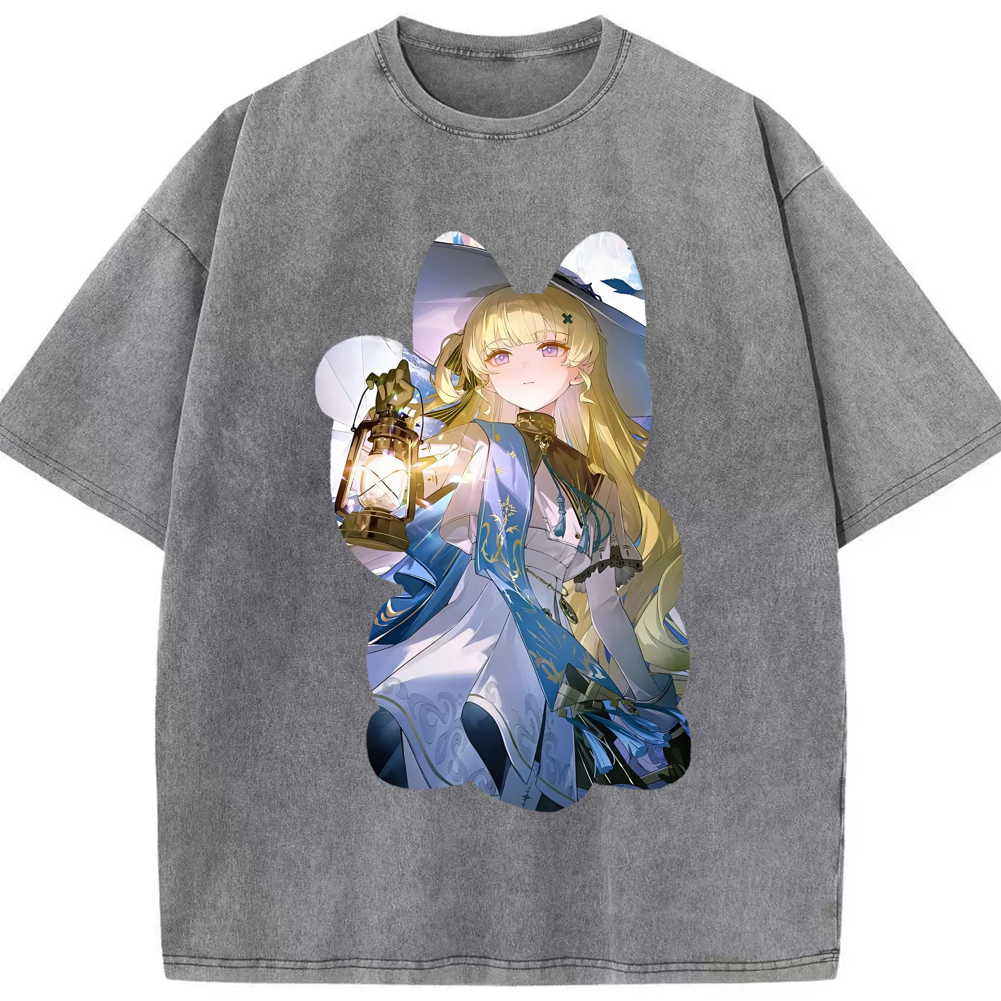 鳴潮 グッズ フィービー - 綿100% ヴィンテージ風 半袖Tシャツ ・ 背面プリント ・ 柔らか肌触り ・ 通気性 快適 ・ スポーツ カジュアル 外出用