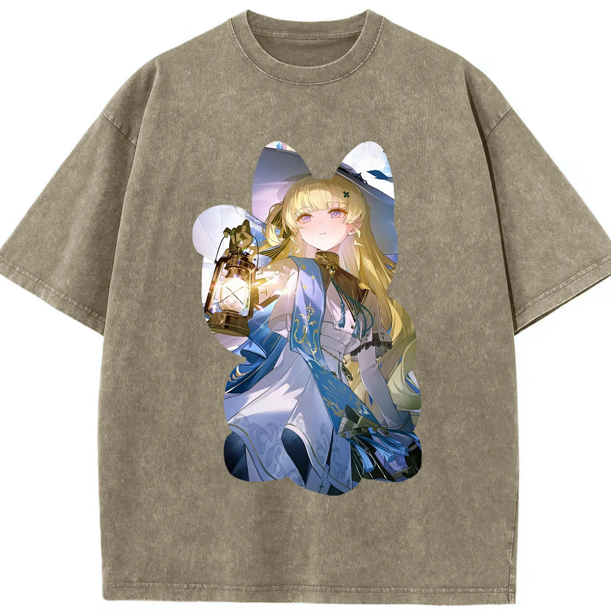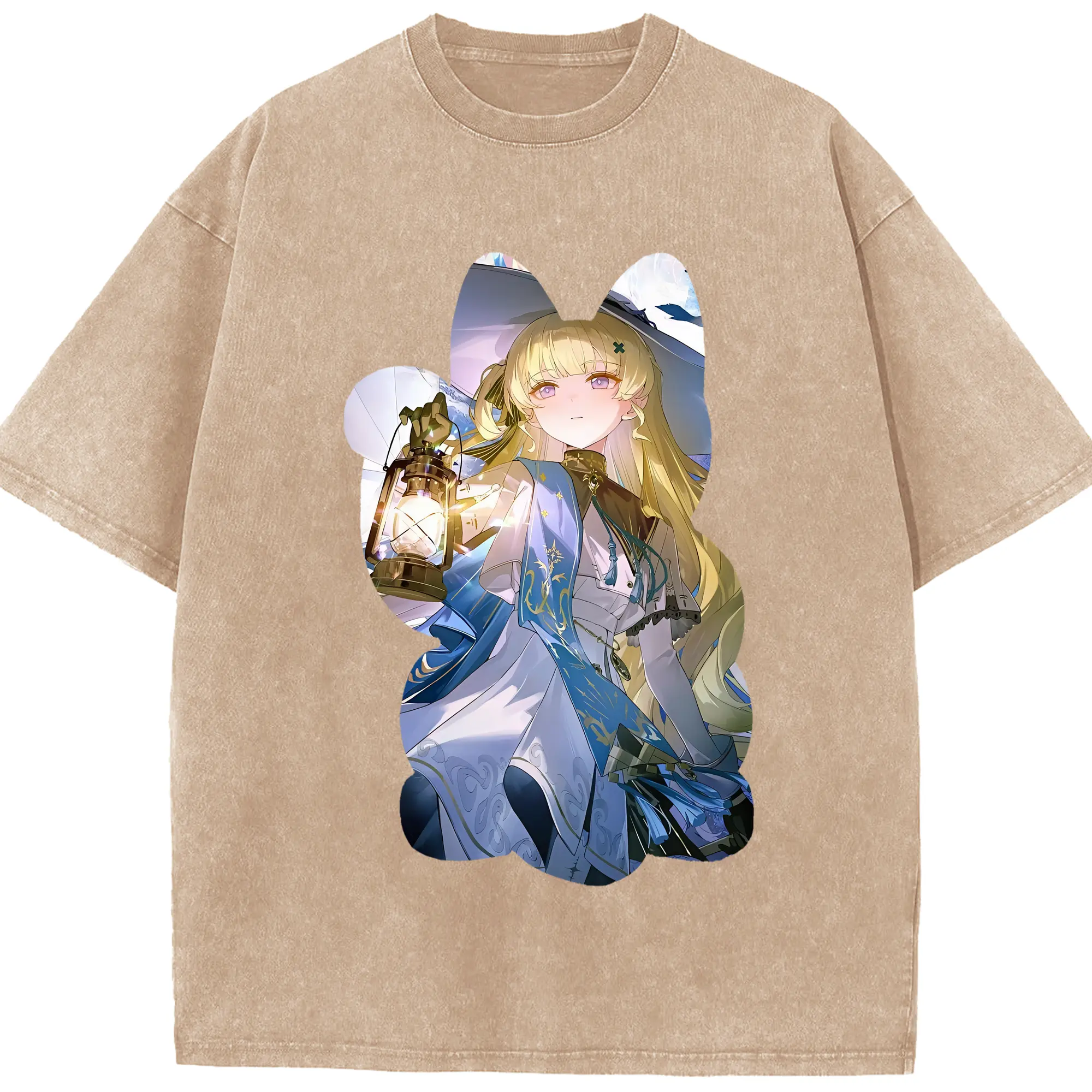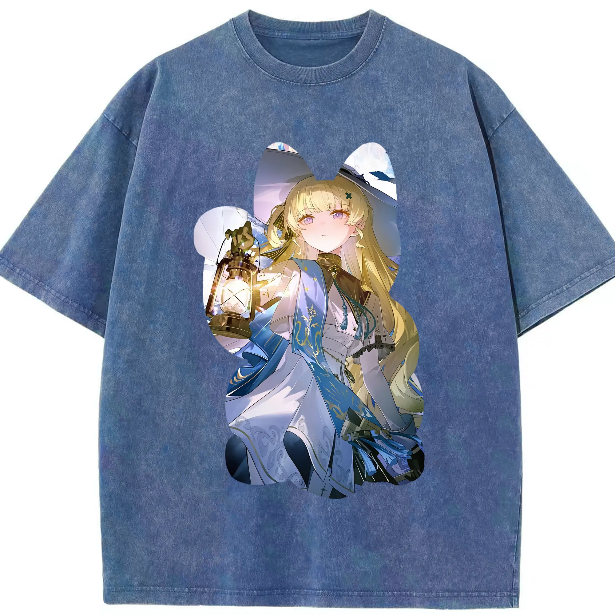鳴潮 グッズ フィービー - 綿100% ヴィンテージ風 半袖Tシャツ ・ 背面プリント ・ 柔らか肌触り ・ 通気性 快適 ・ スポーツ カジュアル 外出用