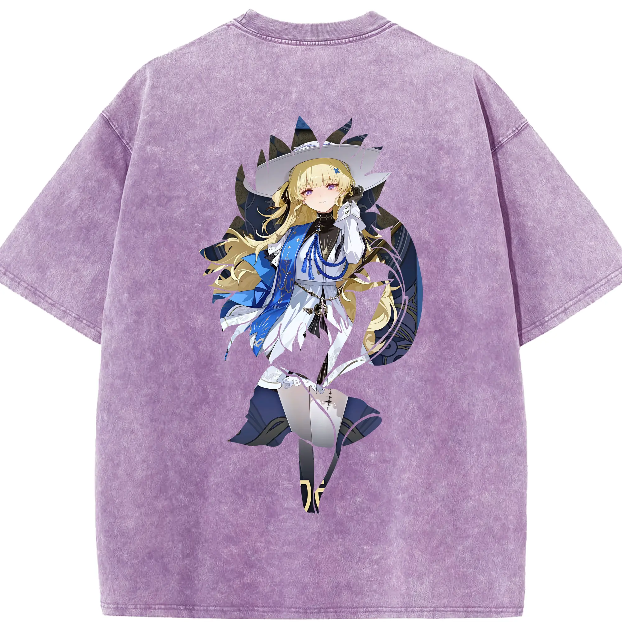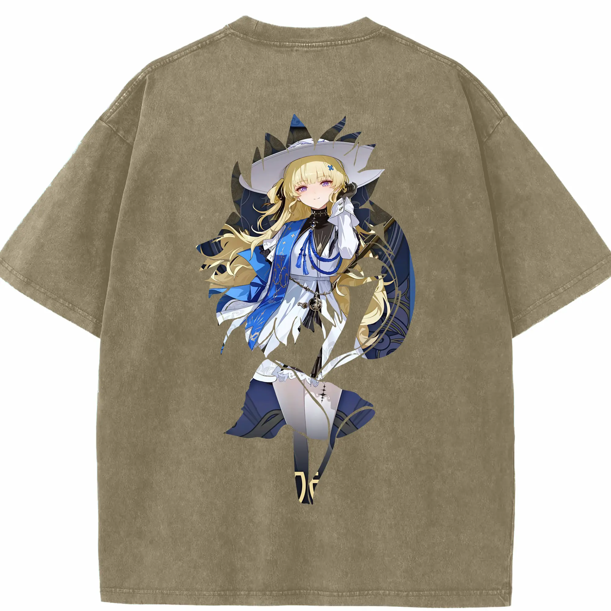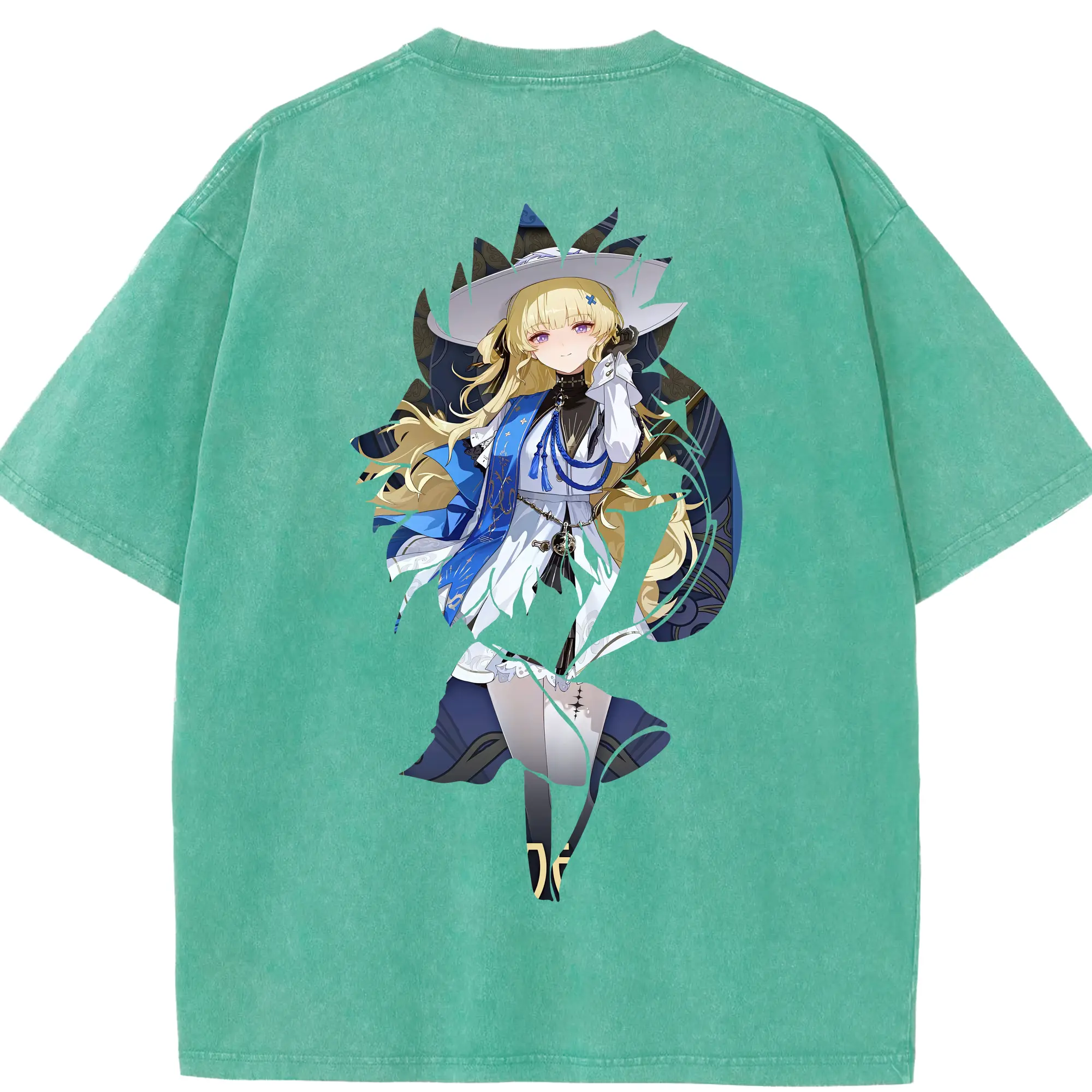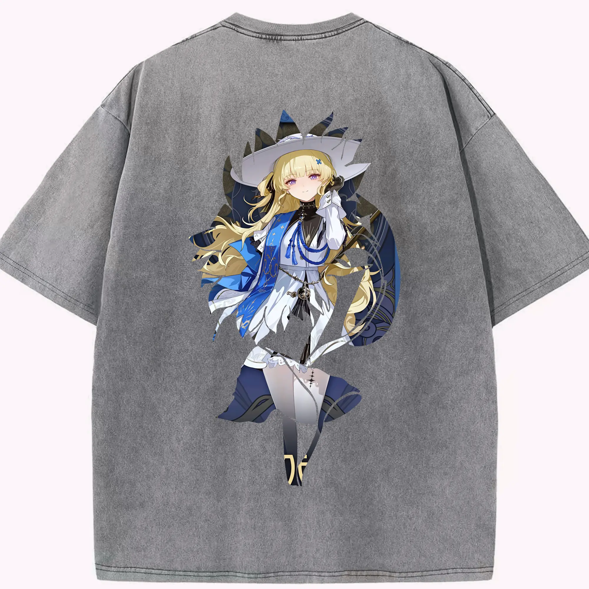 鳴潮 グッズ フィービー - 綿100% ヴィンテージ風 半袖Tシャツ ・ フロントプリント ・ 柔らか肌触り ・ 通気性 快適 ・ スポーツ カジュアル 外出用