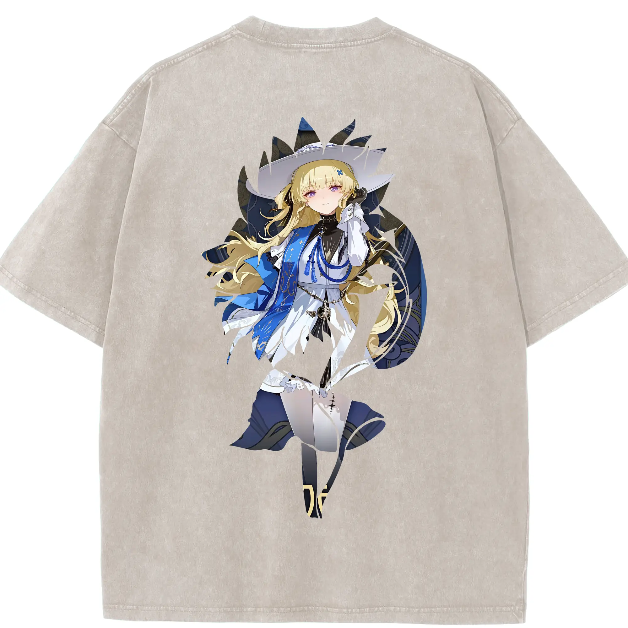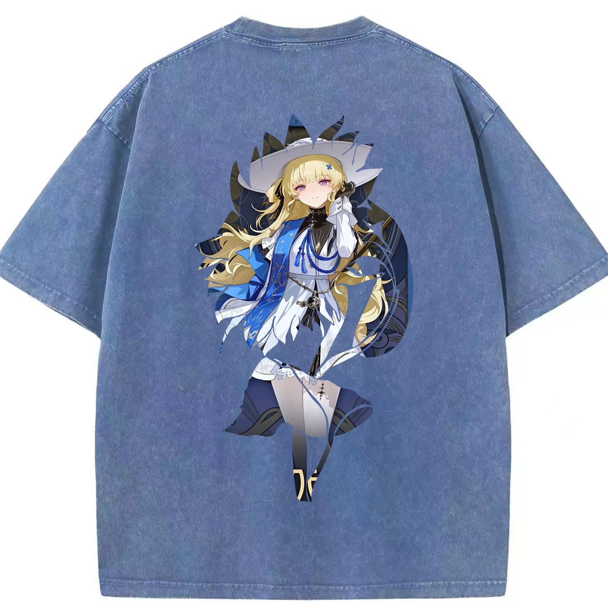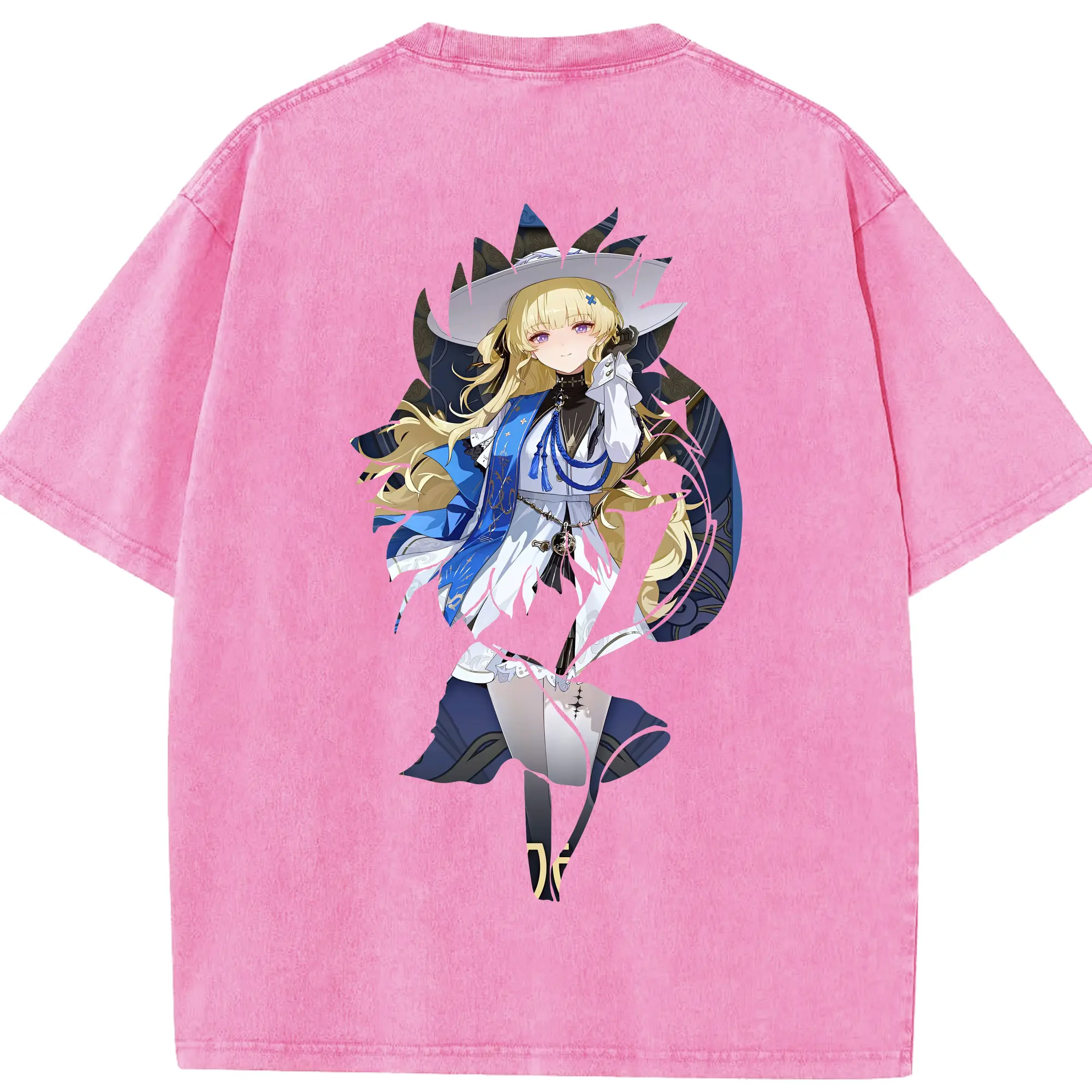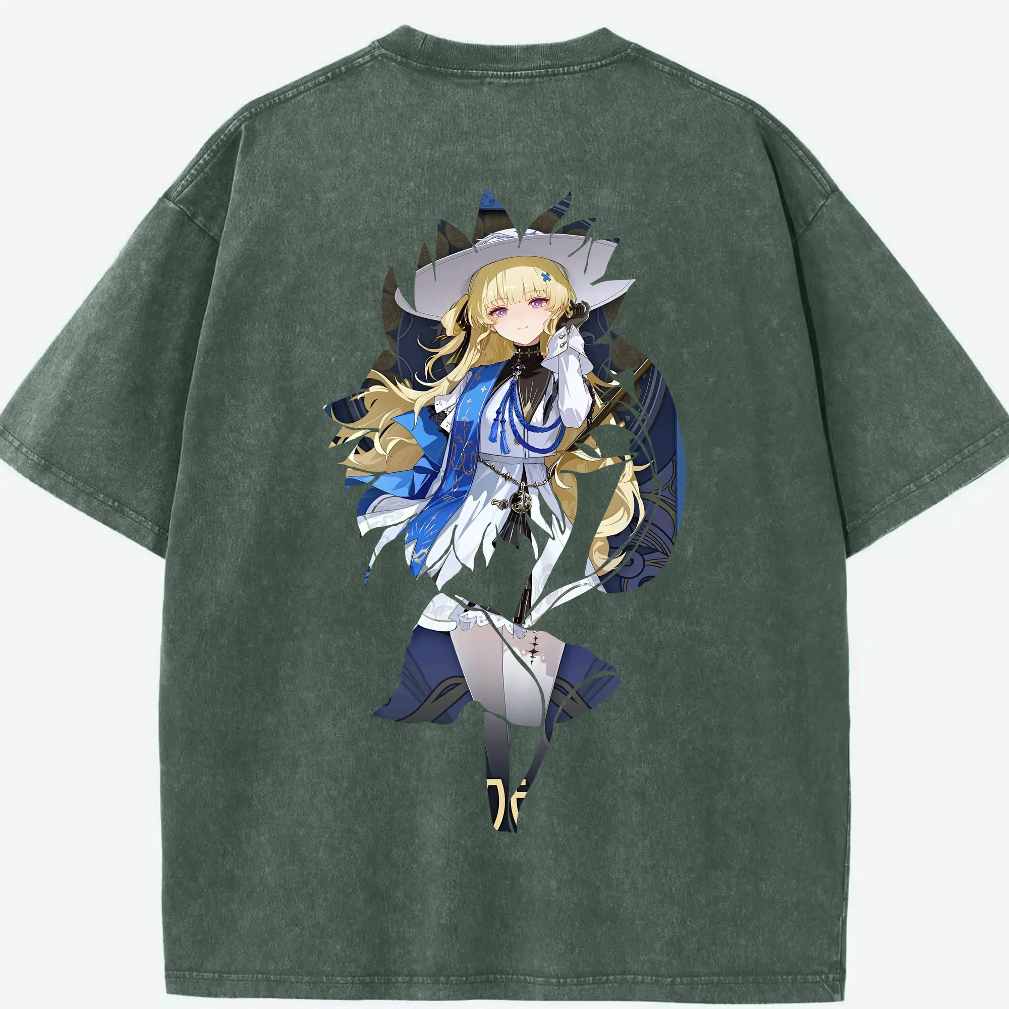 鳴潮 グッズ フィービー - 綿100% ヴィンテージ風 半袖Tシャツ ・ フロントプリント ・ 柔らか肌触り ・ 通気性 快適 ・ スポーツ カジュアル 外出用