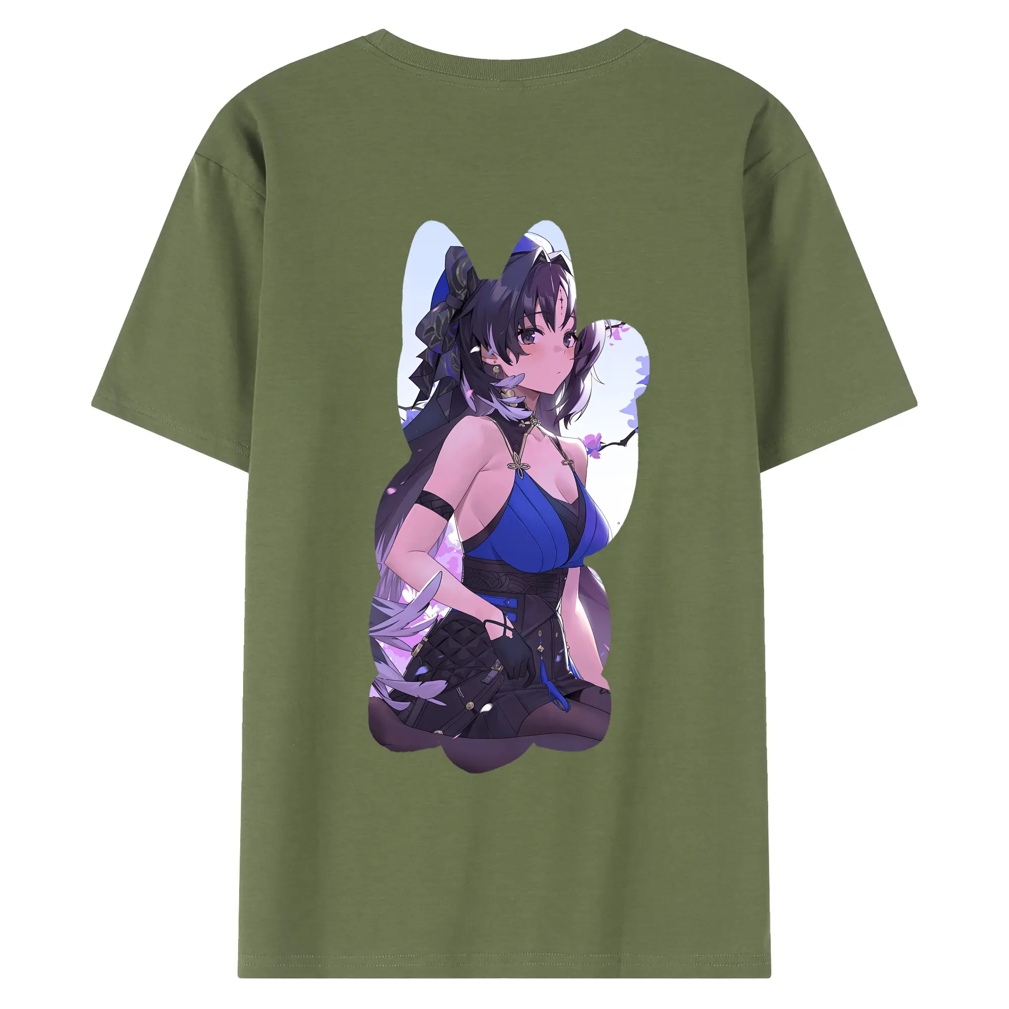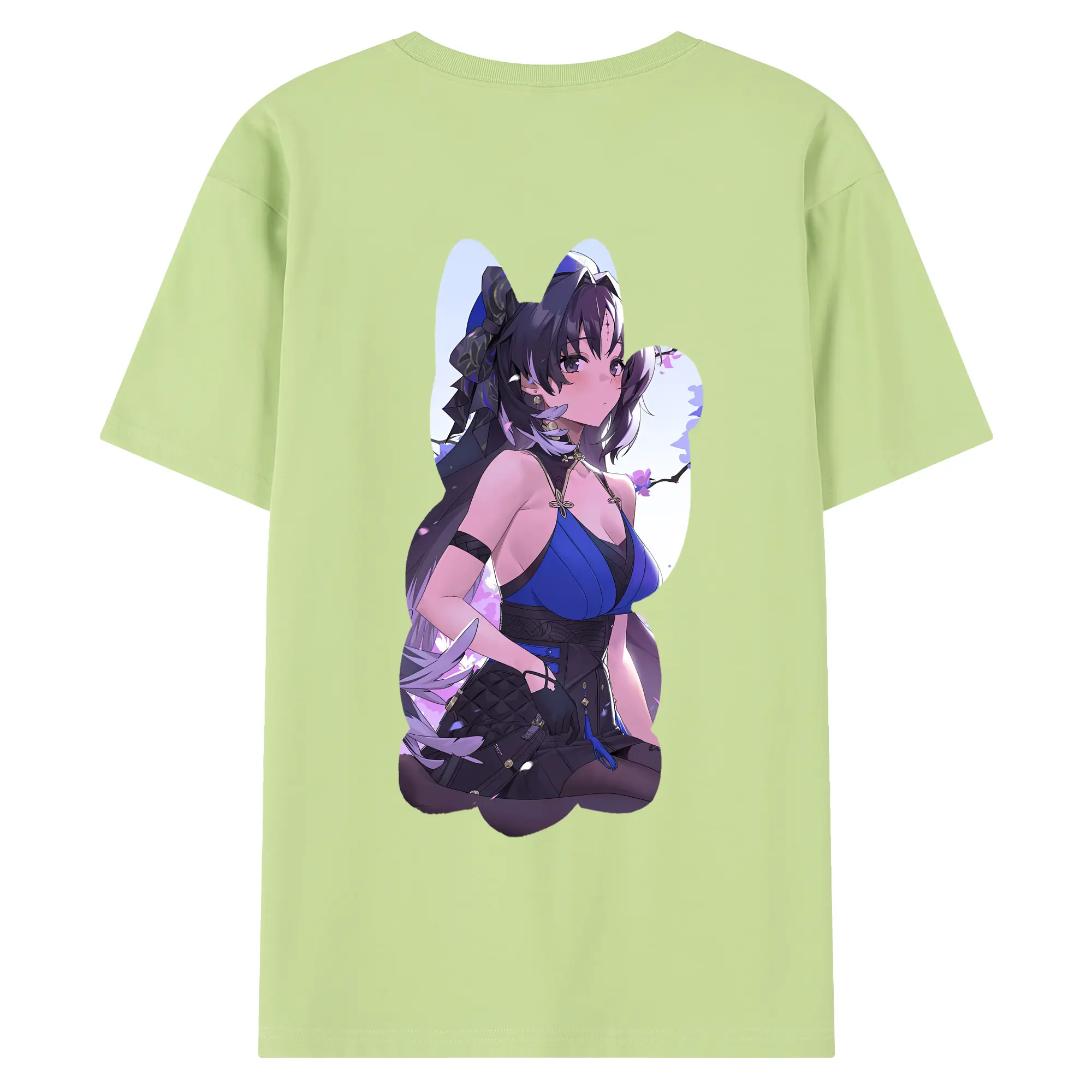 鳴潮 グッズ ヤンヤン - 綿100% ヴィンテージ風 半袖Tシャツ ・ 背面プリント ・ 柔らか肌触り ・ 通気性 快適 ・ スポーツ カジュアル 外出用
