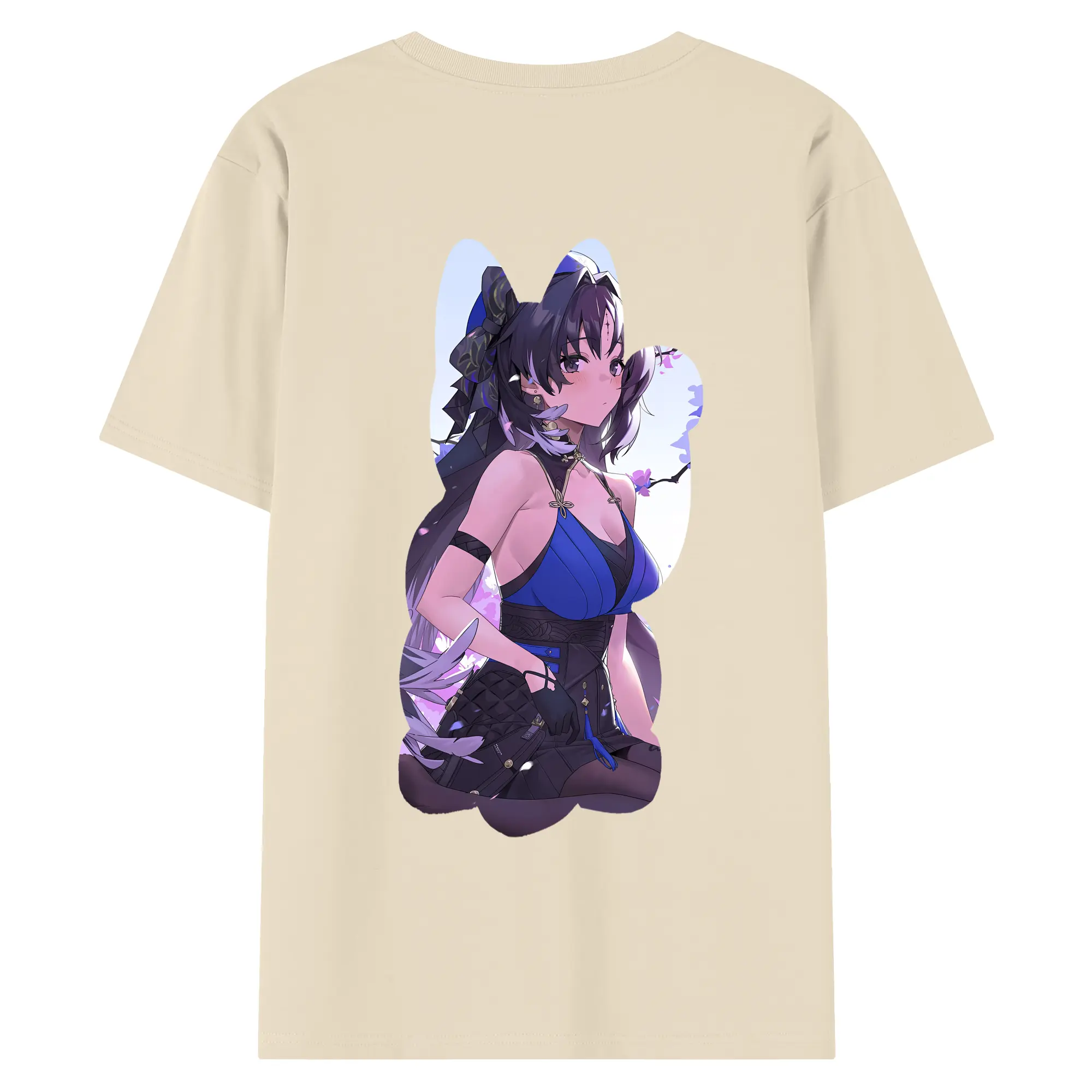 鳴潮 グッズ カンタレラ - 綿100% 半袖Tシャツ ・ バックプリント ・ 快適 通気性 ・ 日常使い 散歩 スポーツ用