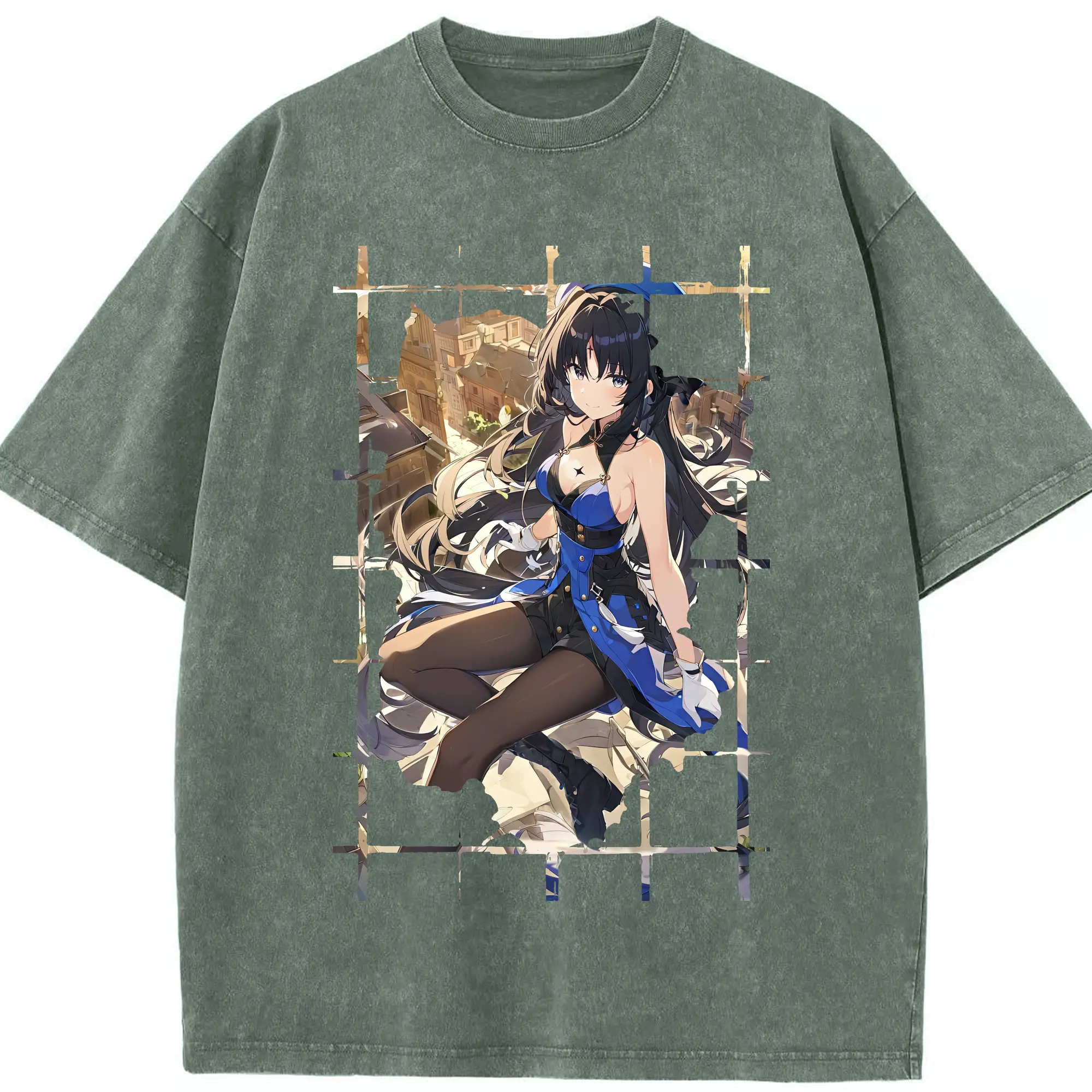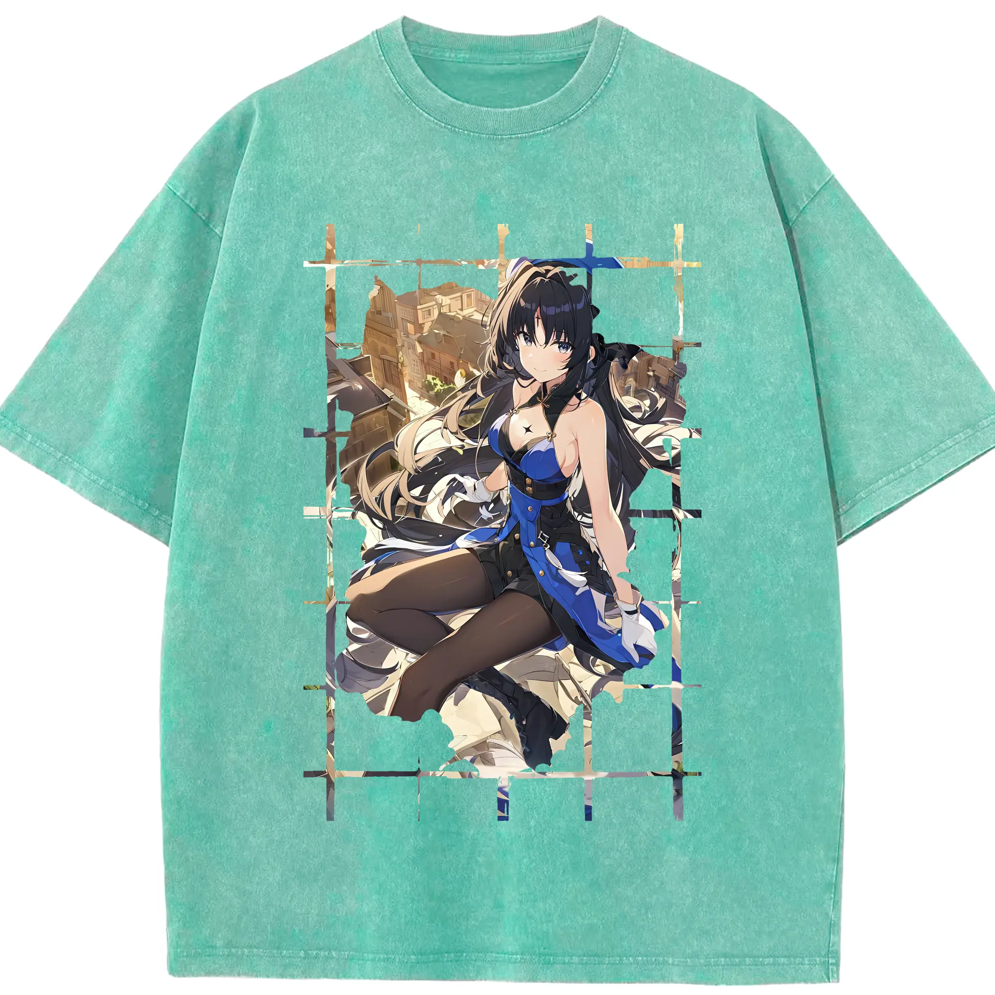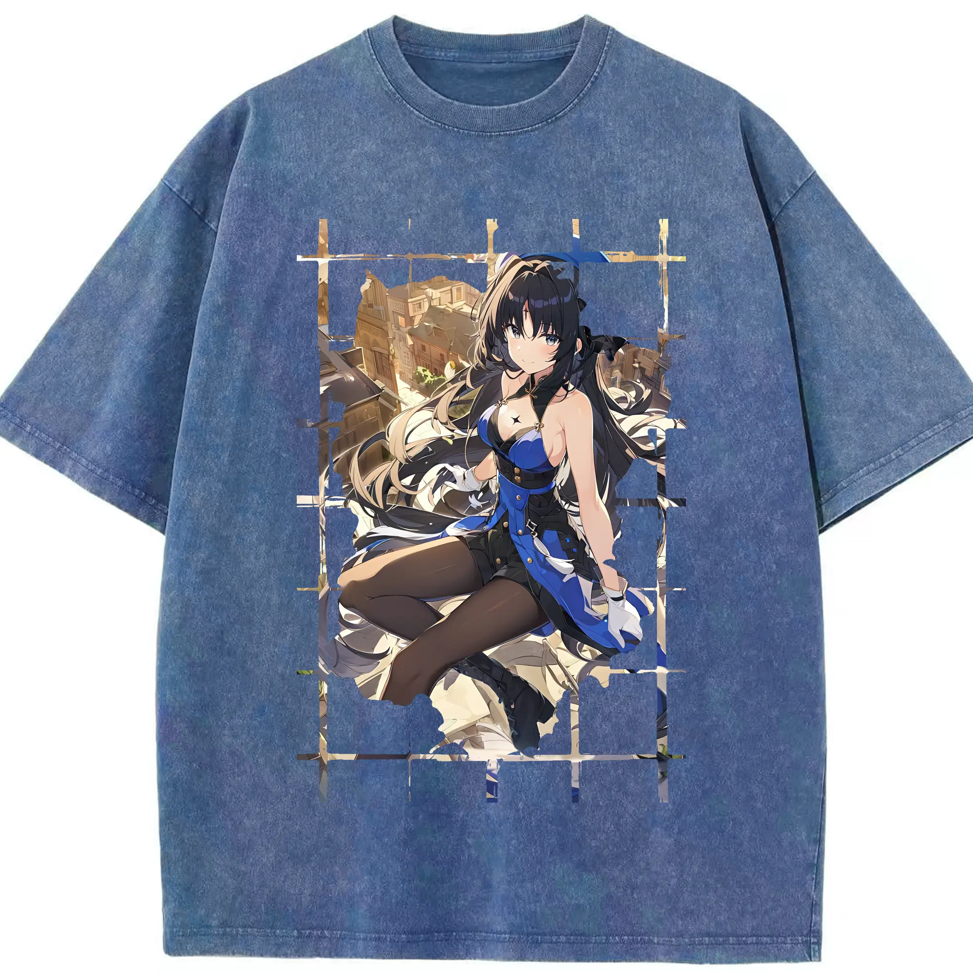 鳴潮 グッズ ヤンヤン - 綿100% ヴィンテージ風 半袖Tシャツ ・ 背面プリント ・ 柔らか肌触り ・ 通気性 快適 ・ スポーツ カジュアル 外出用