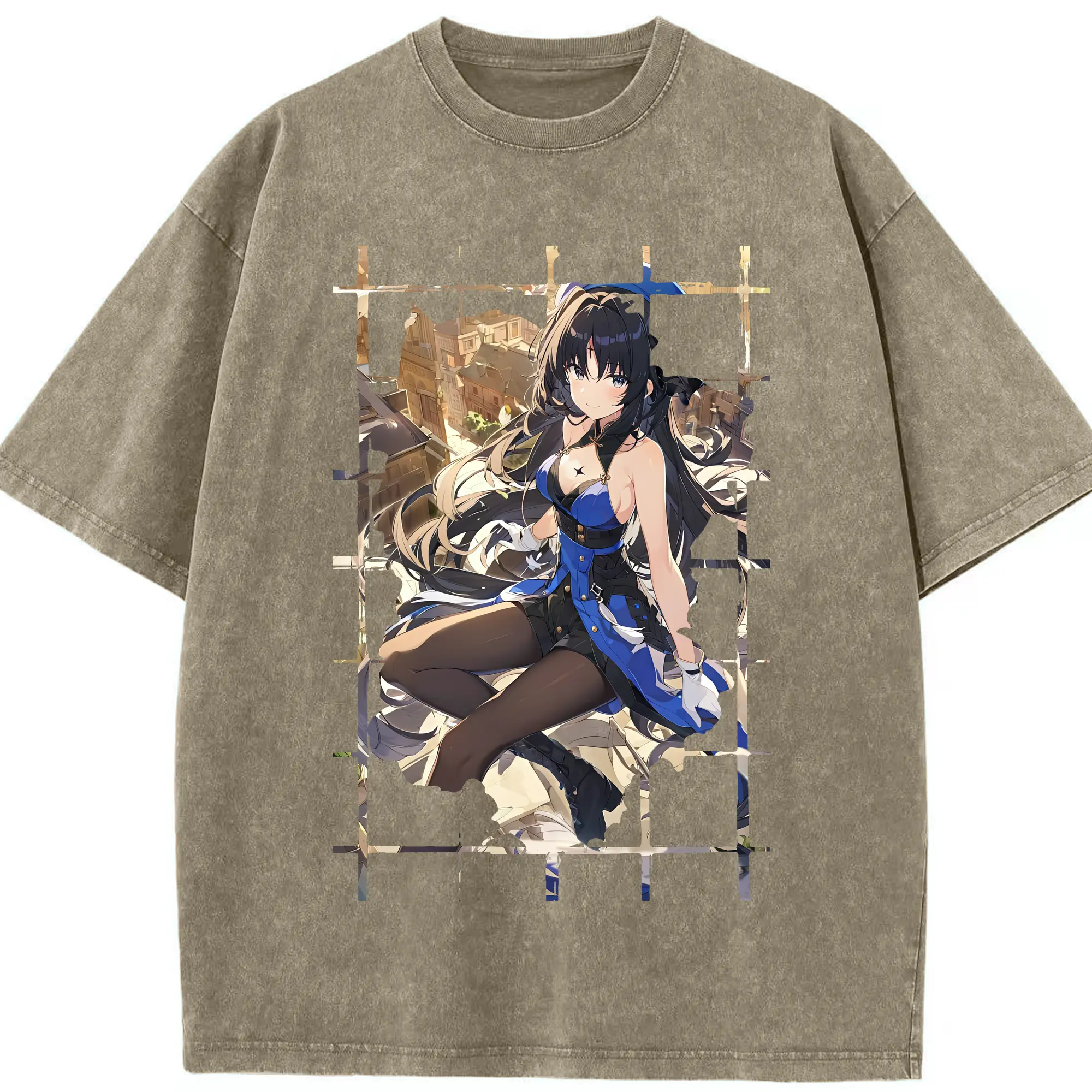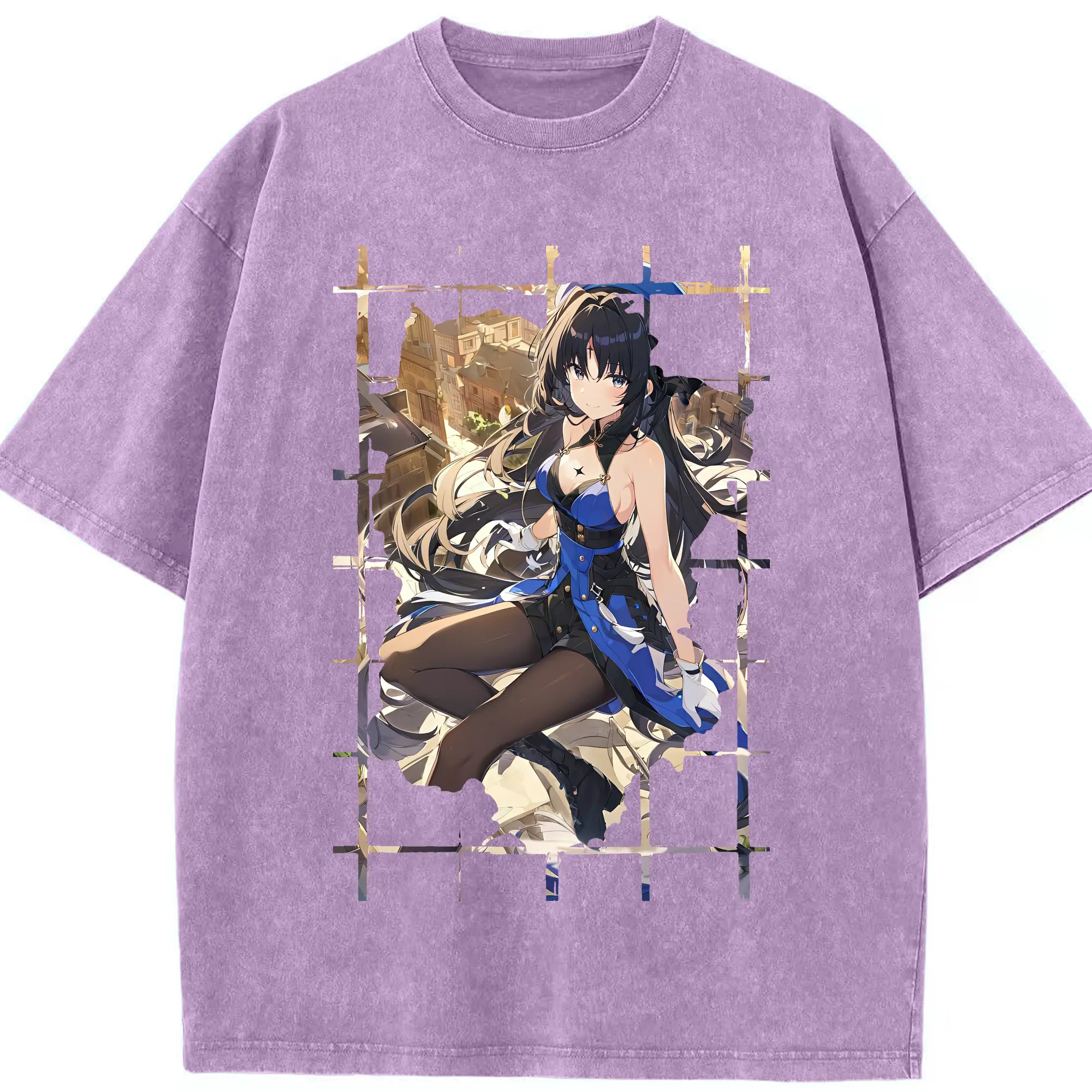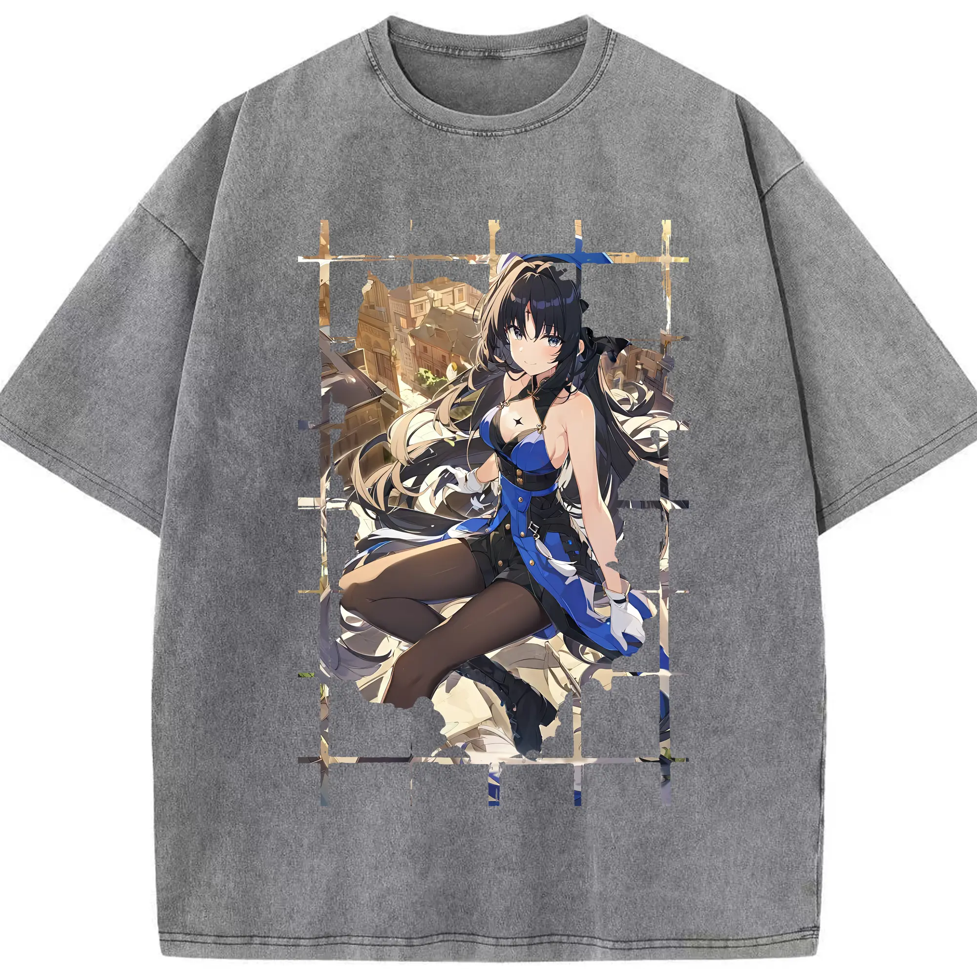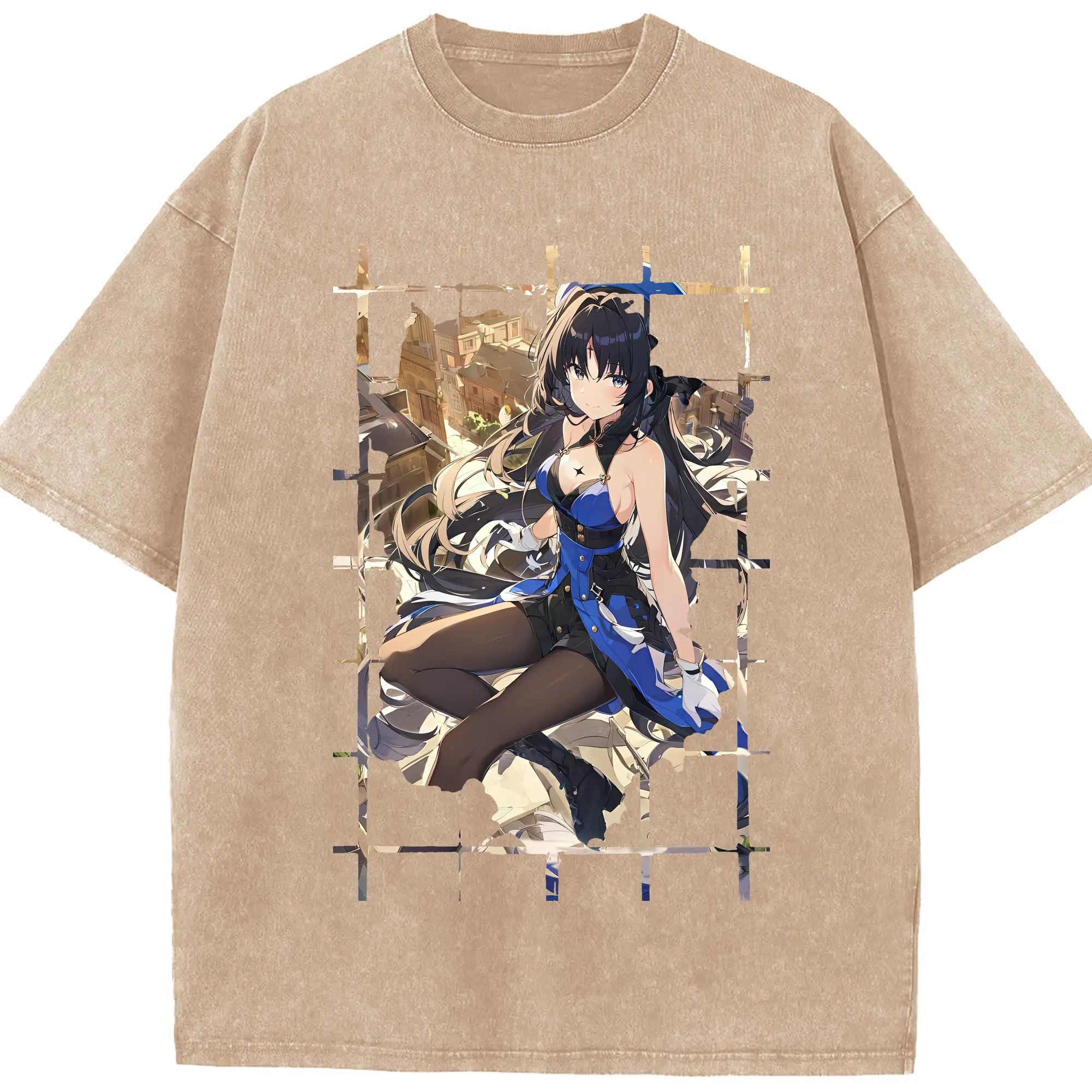 鳴潮 グッズ ヤンヤン - 綿100% ヴィンテージ風 半袖Tシャツ ・ 背面プリント ・ 柔らか肌触り ・ 通気性 快適 ・ スポーツ カジュアル 外出用