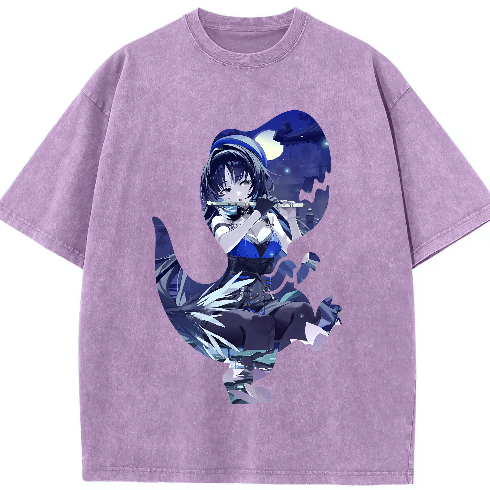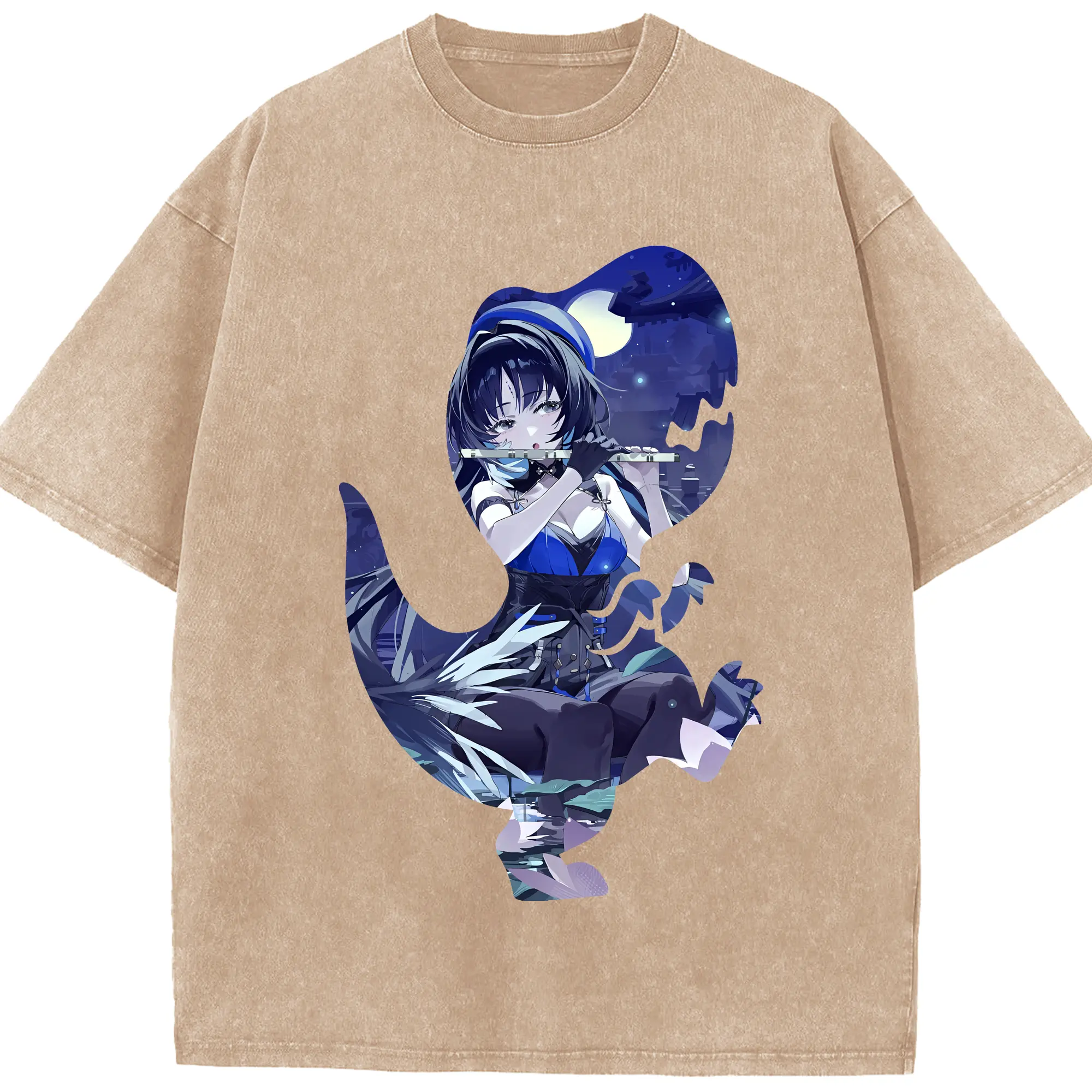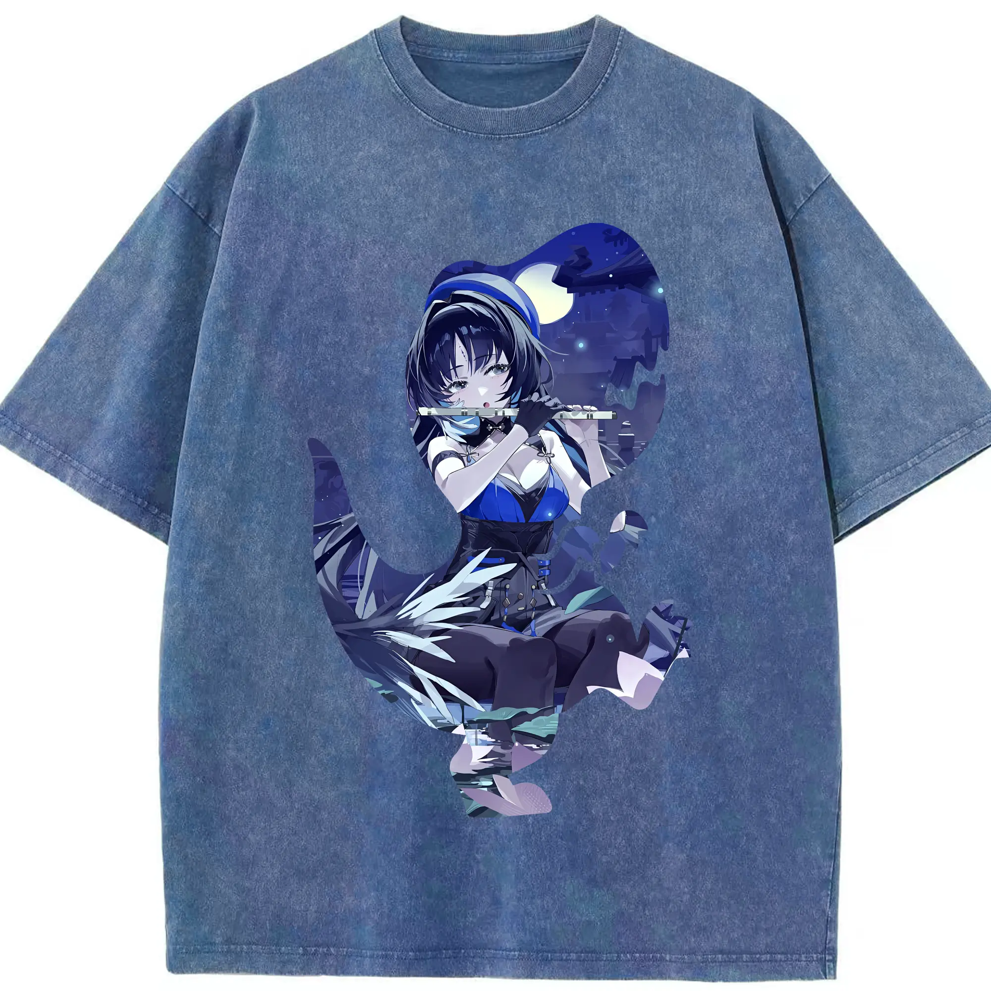 鳴潮 グッズ ヤンヤン - 綿100% ヴィンテージ風 半袖Tシャツ ・ 背面プリント ・ 柔らか肌触り ・ 通気性 快適 ・ スポーツ カジュアル 外出用
