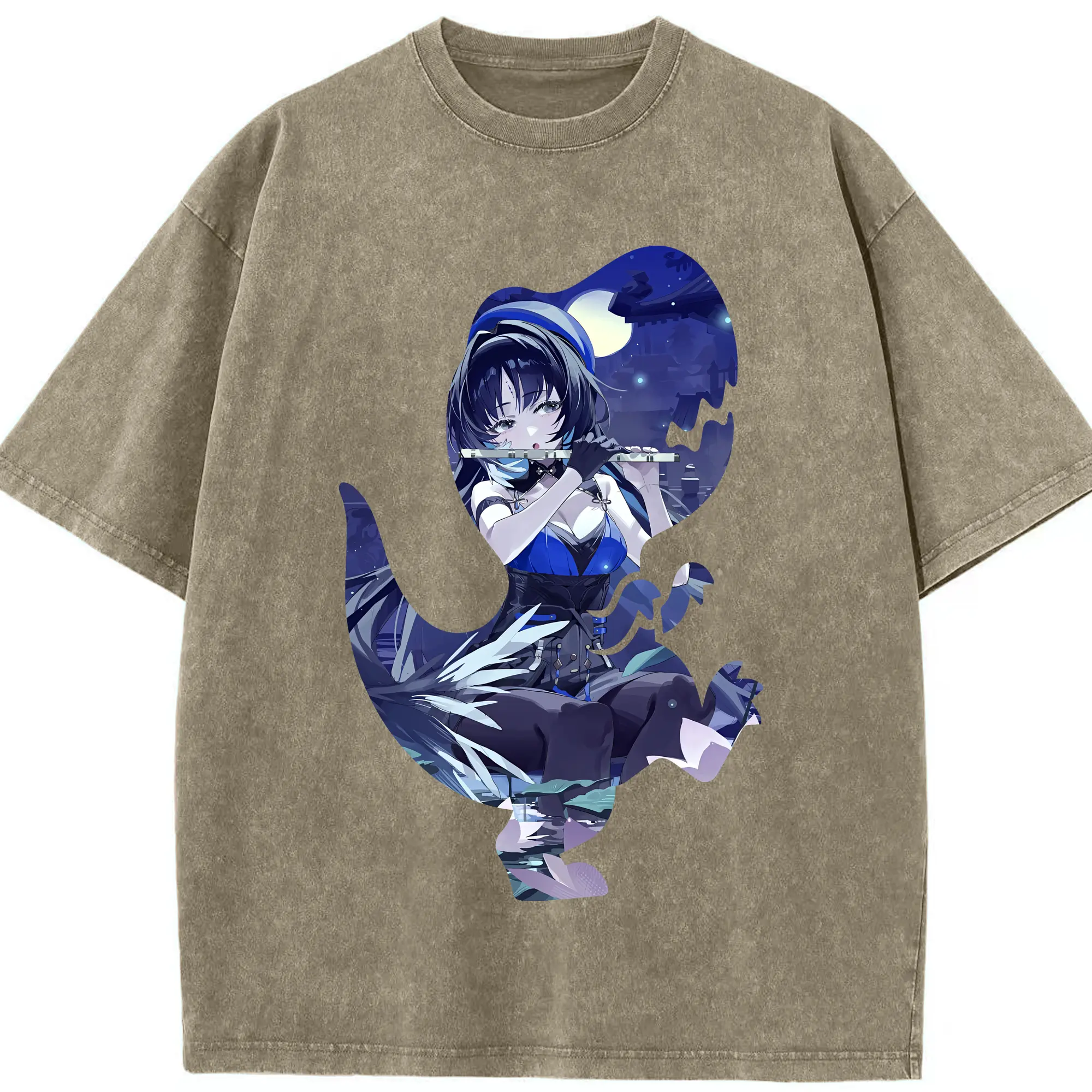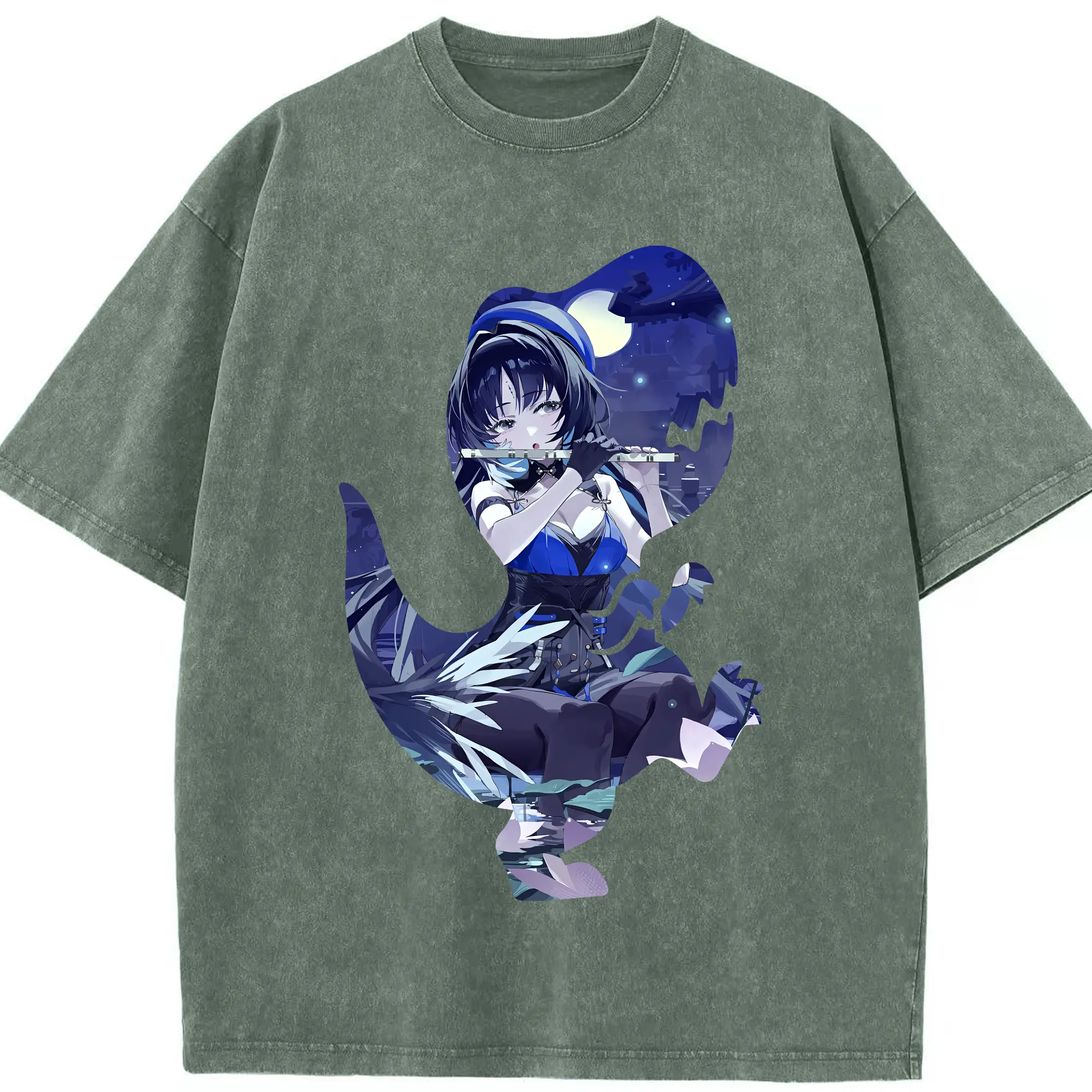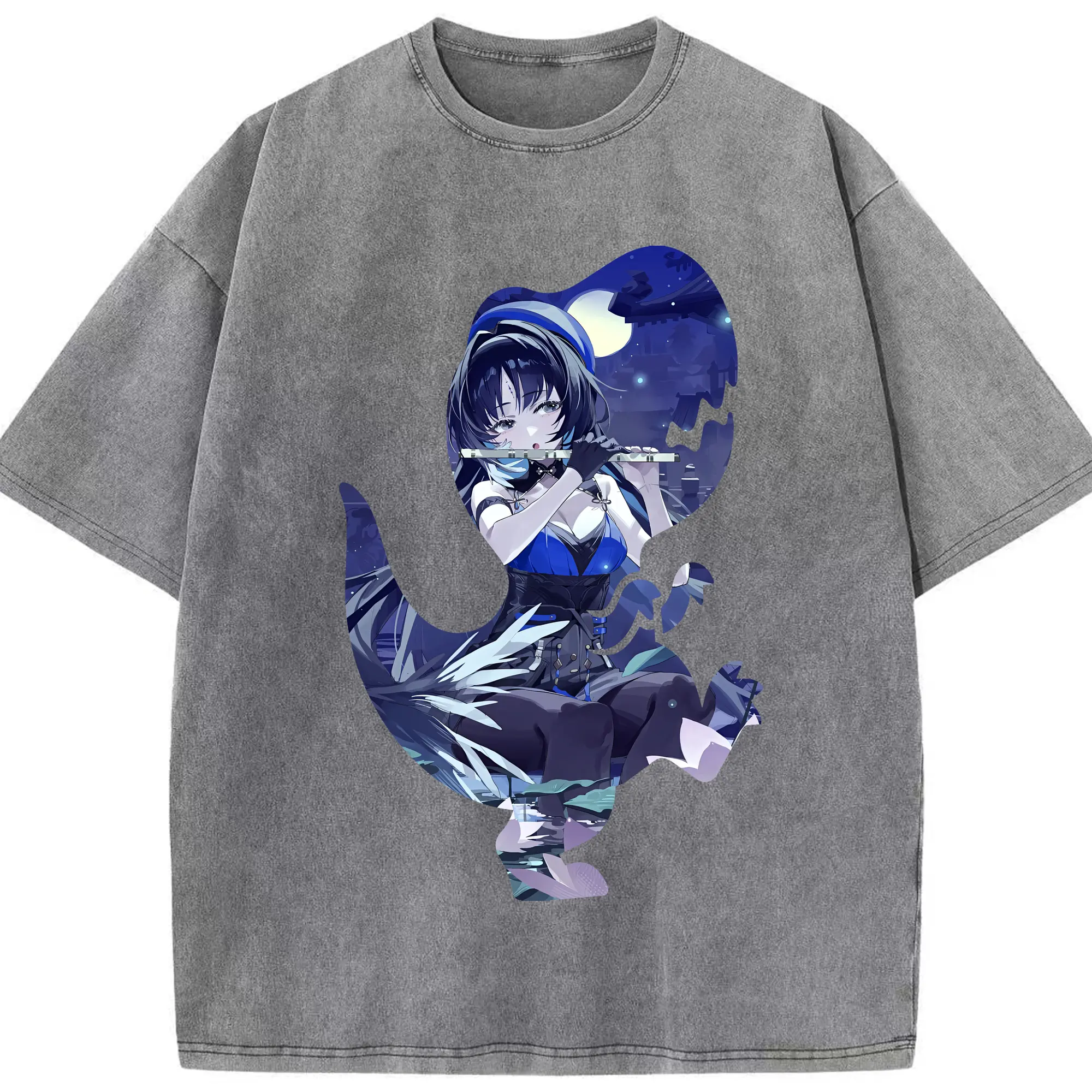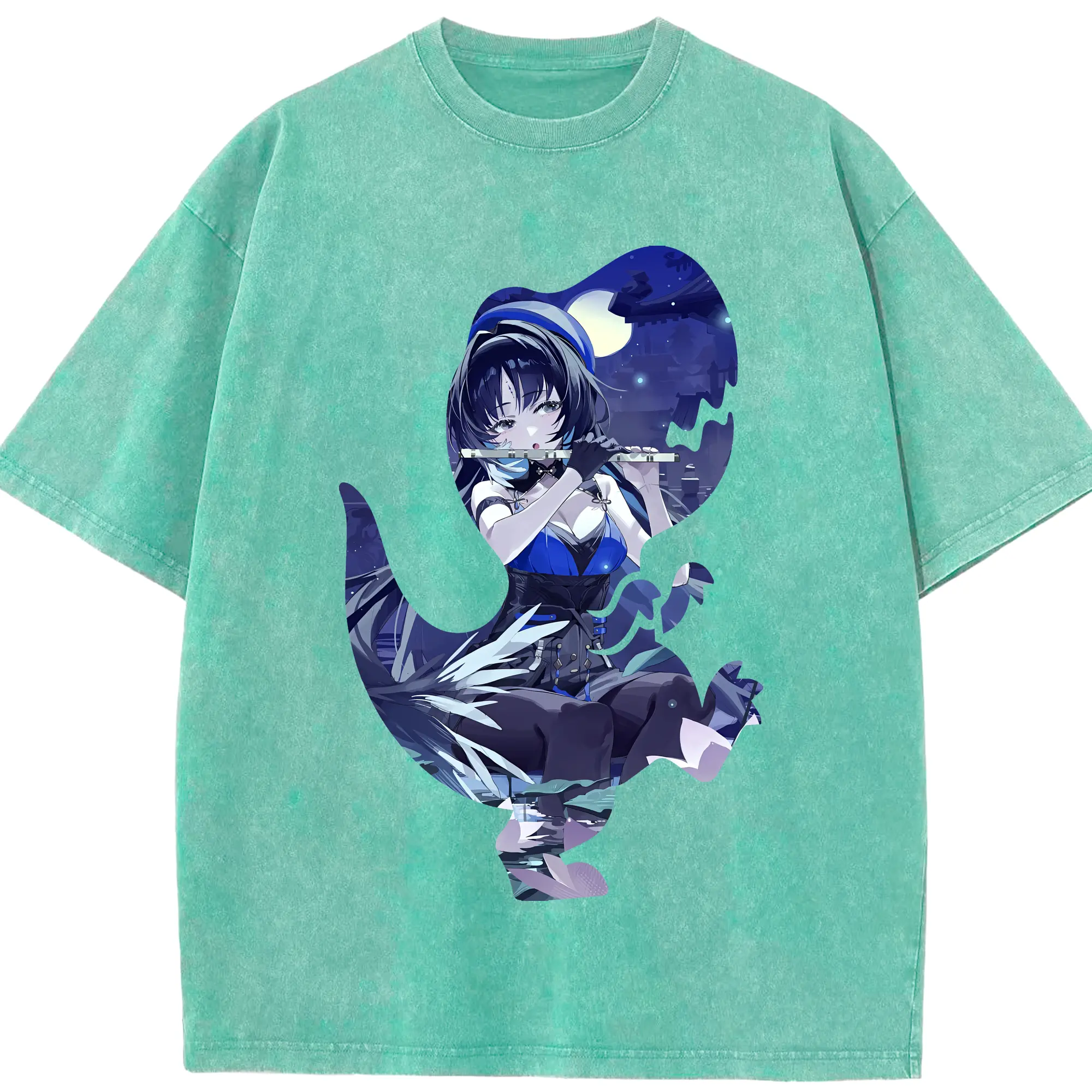 鳴潮 グッズ ヤンヤン - 綿100% ヴィンテージ風 半袖Tシャツ ・ 背面プリント ・ 柔らか肌触り ・ 通気性 快適 ・ スポーツ カジュアル 外出用
