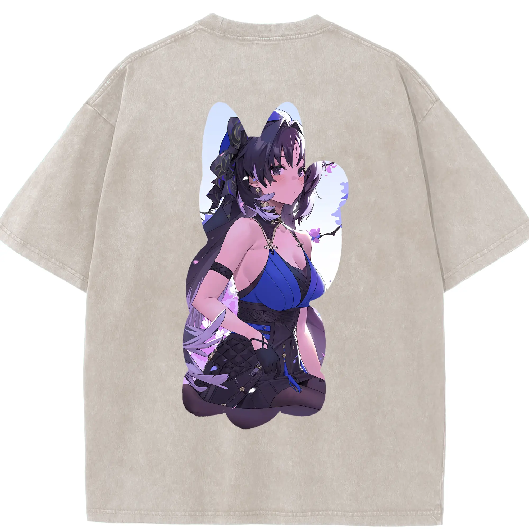 鳴潮 グッズ ヤンヤン - 綿100% ヴィンテージ風 半袖Tシャツ ・ フロントプリント ・ 柔らか肌触り ・ 通気性 快適 ・ スポーツ カジュアル 外出用