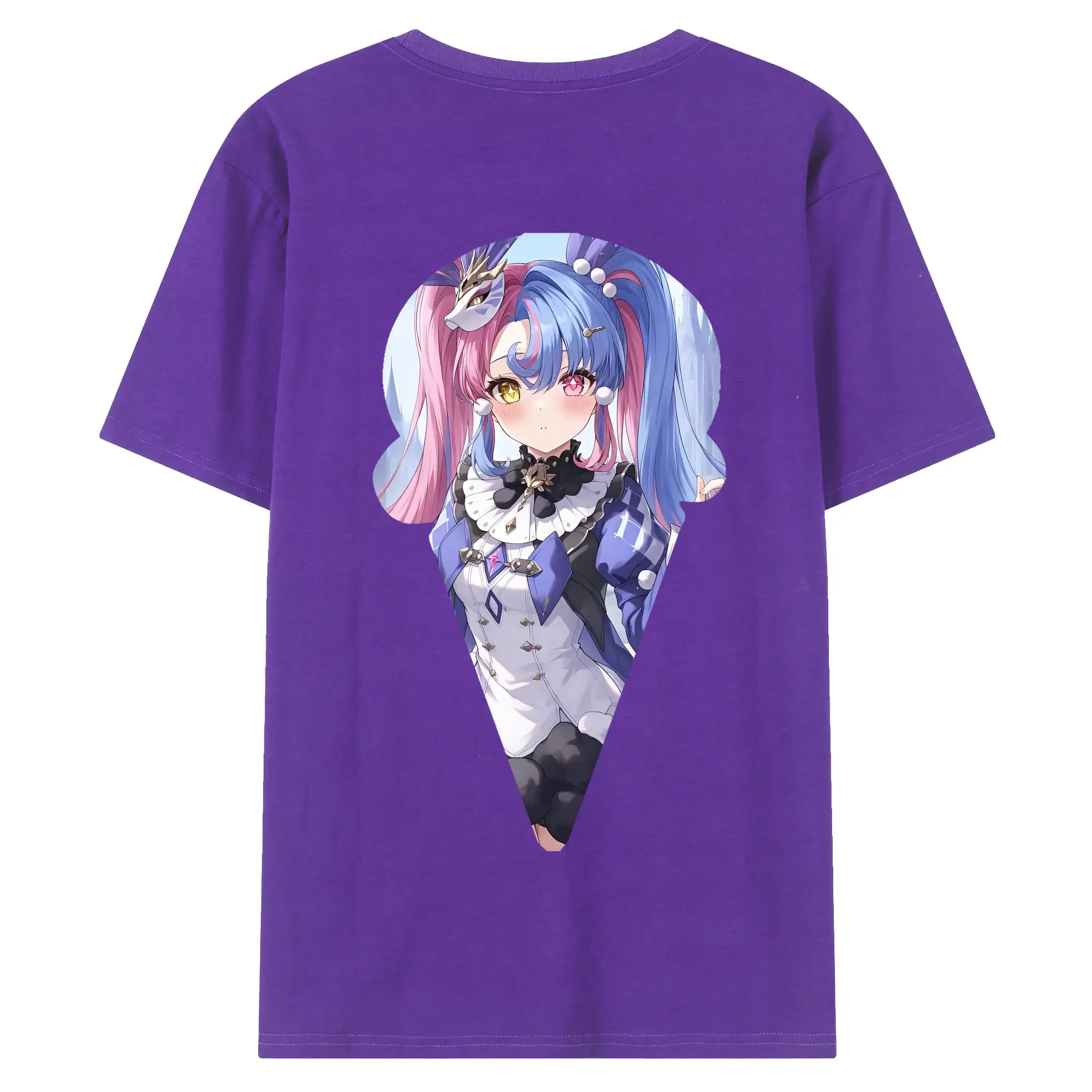 原 神 グッズ 雷電将軍 - 綿100% 半袖Tシャツ ・ バックプリント ・ 快適 通気性 ・ 日常使い 散歩 スポーツ用
