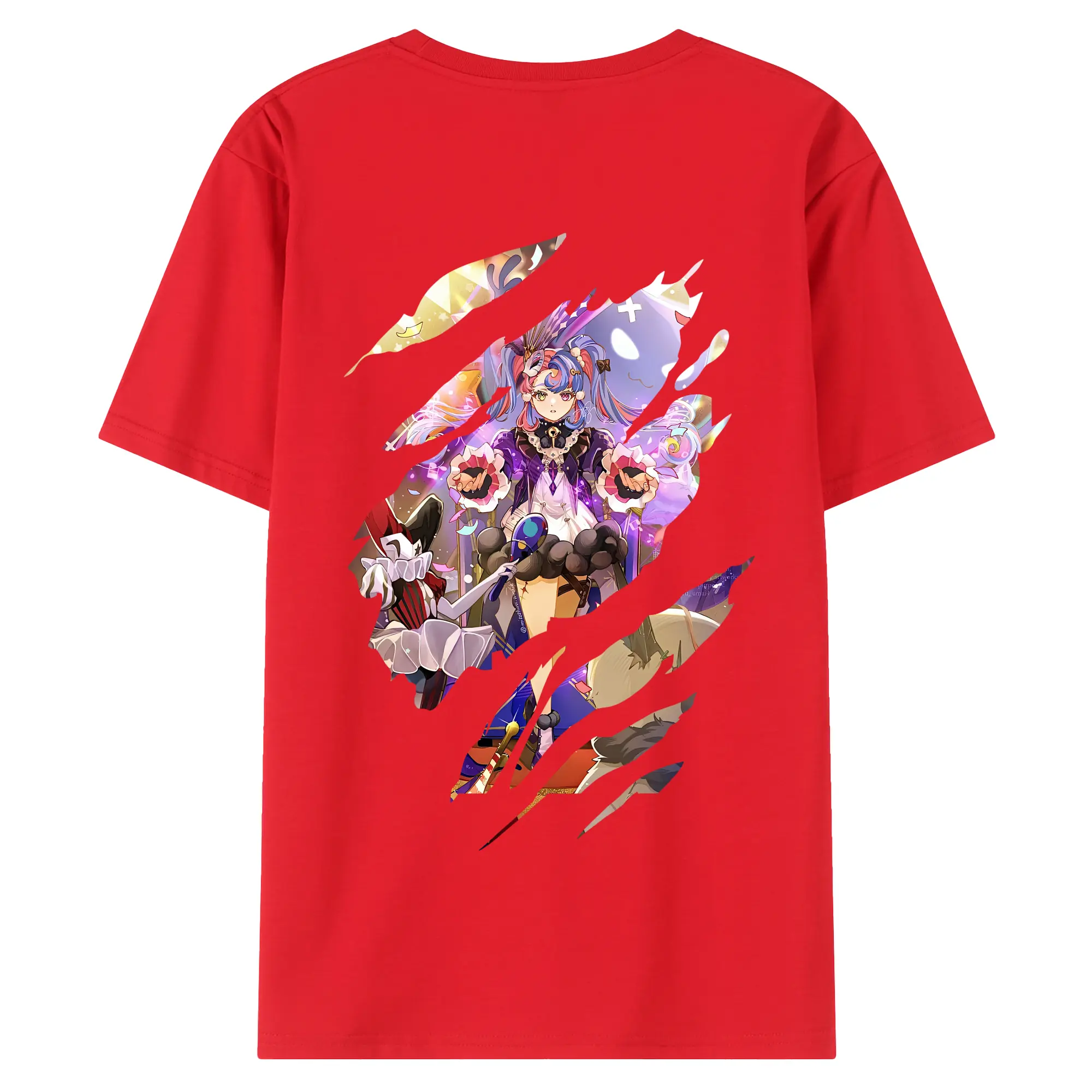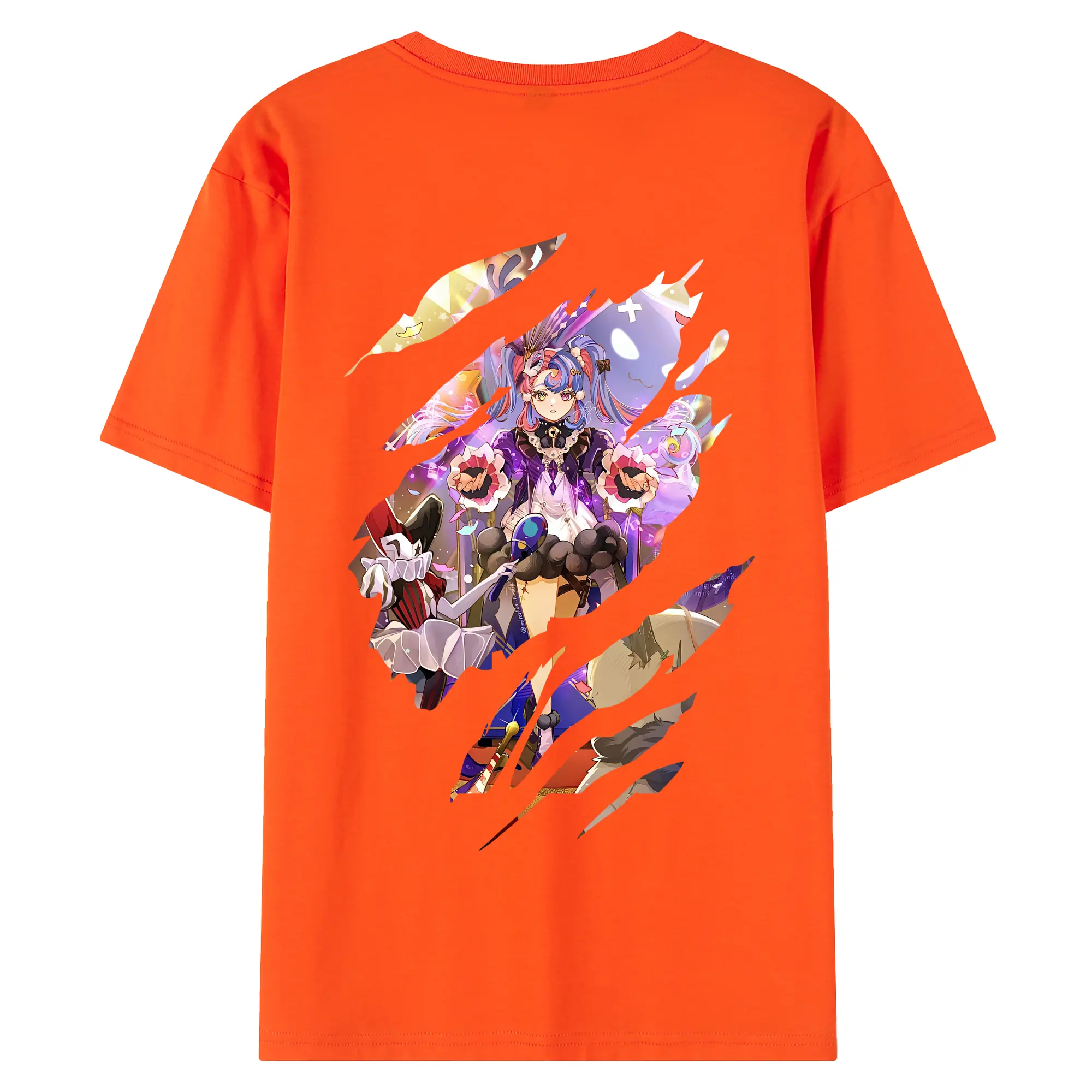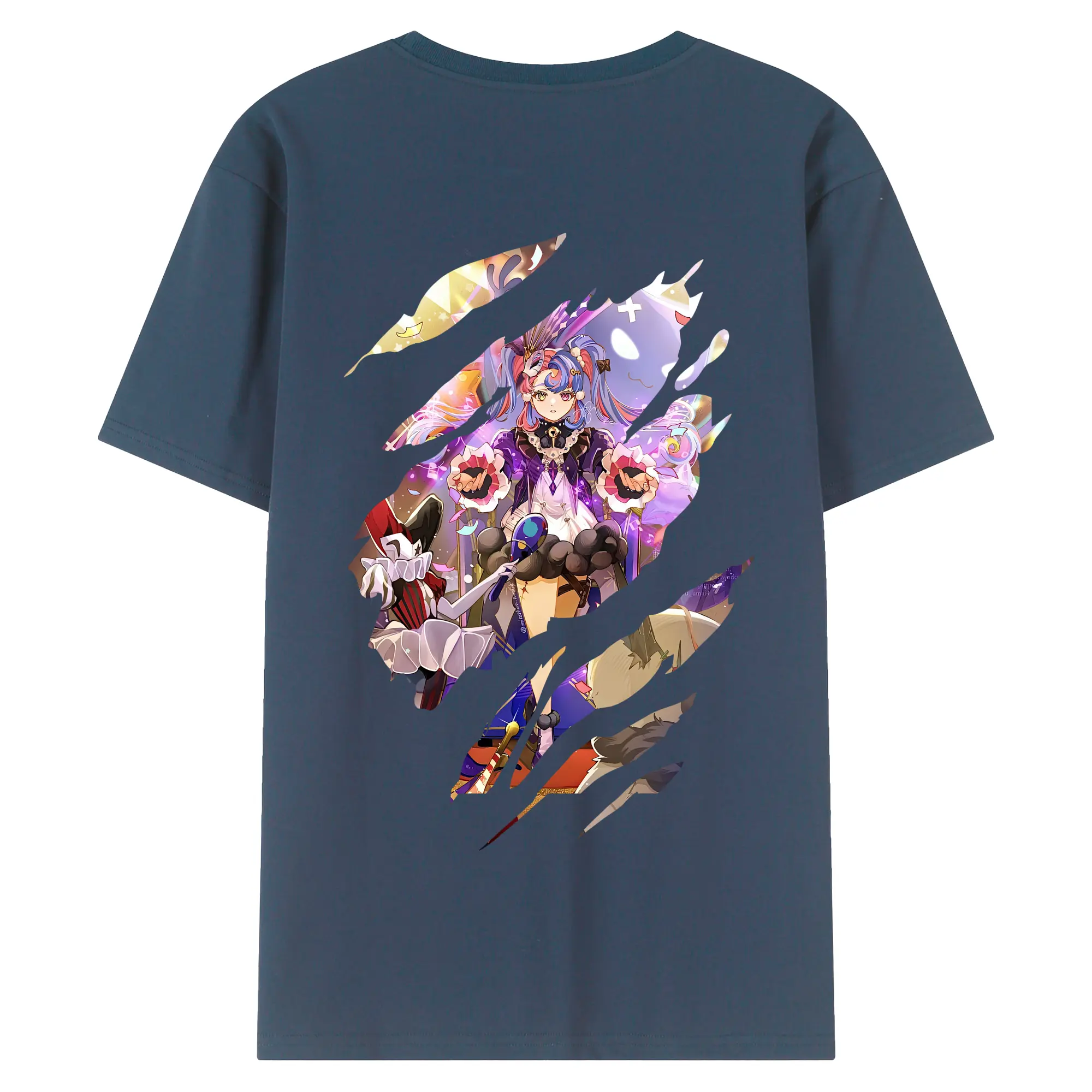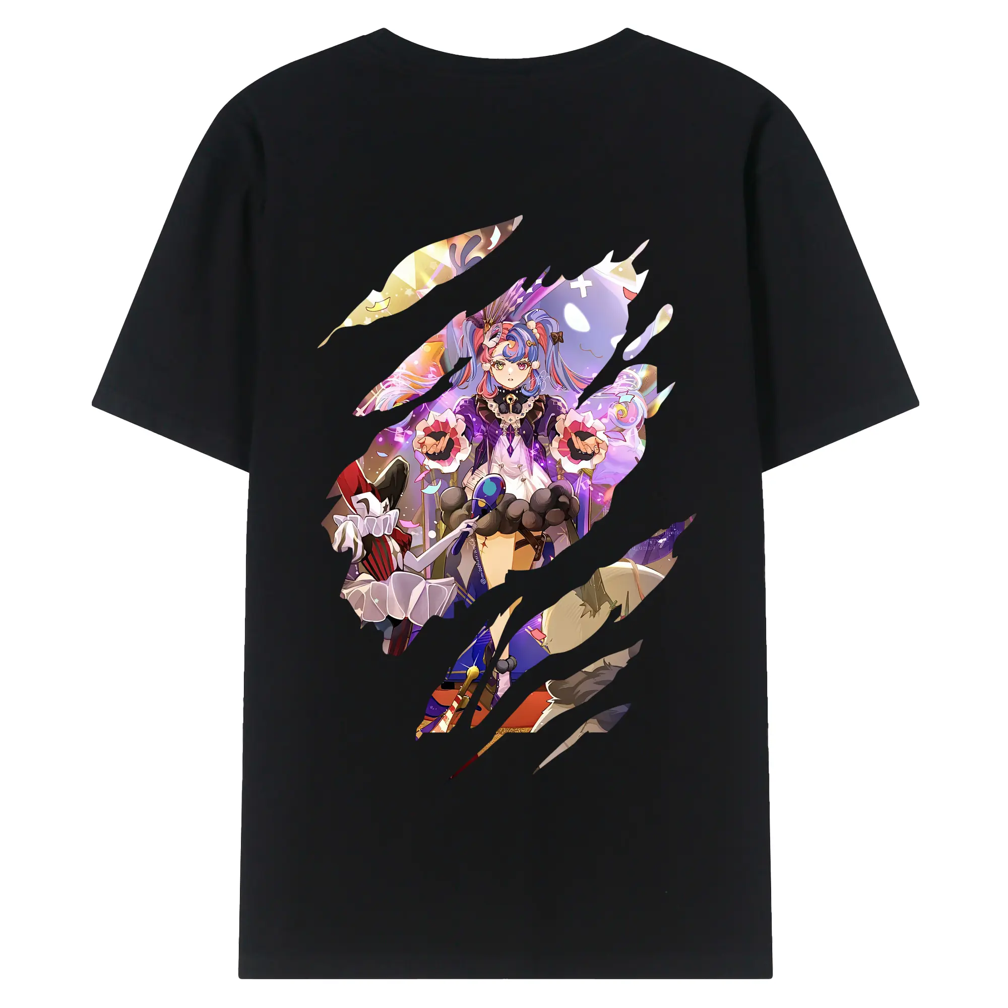 鳴潮 グッズ ロココ - 綿100% ヴィンテージ風 半袖Tシャツ ・ 背面プリント ・ 柔らか肌触り ・ 通気性 快適 ・ スポーツ カジュアル 外出用